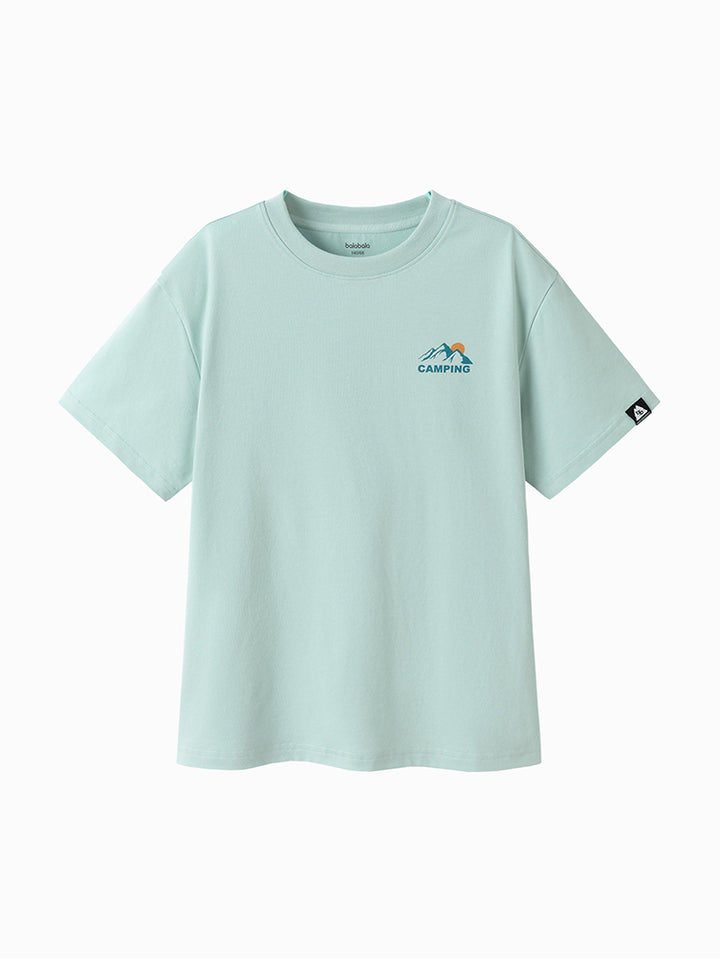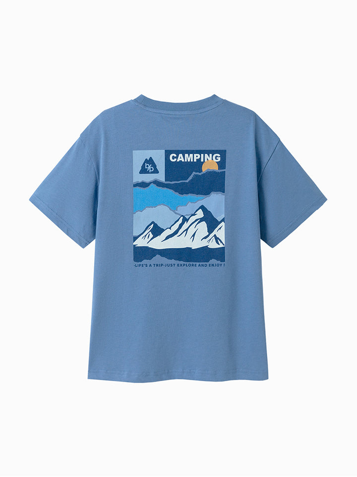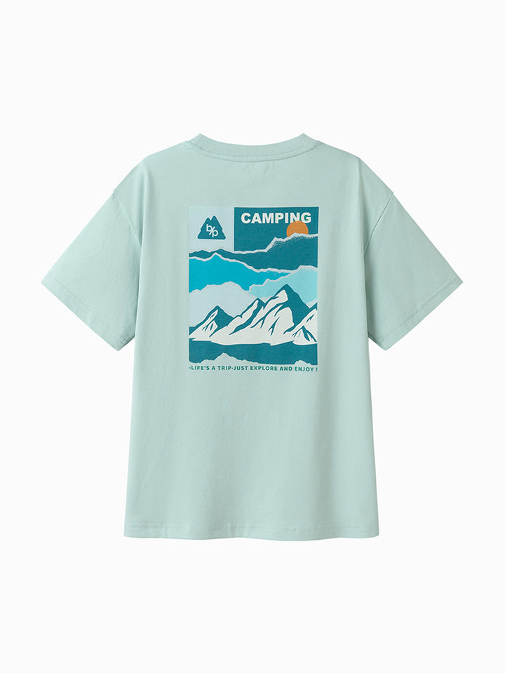 short sleeves casual t-shirt, decorated with a print on the front side, comes with a rounded shape neckline