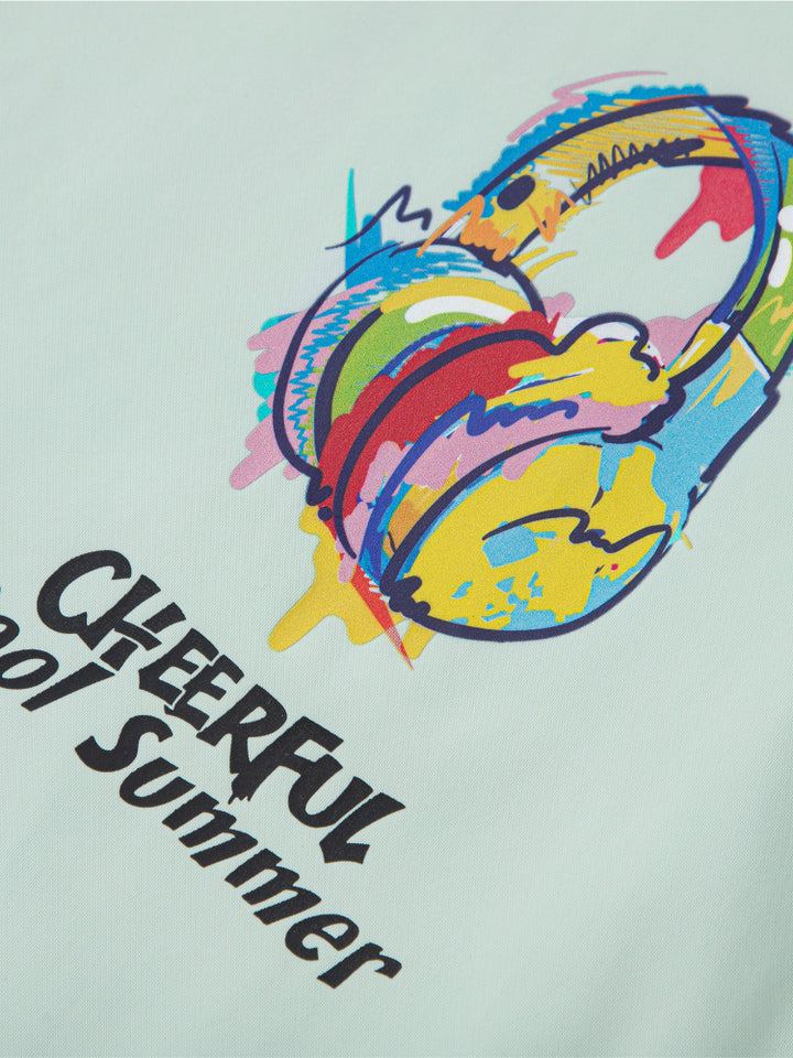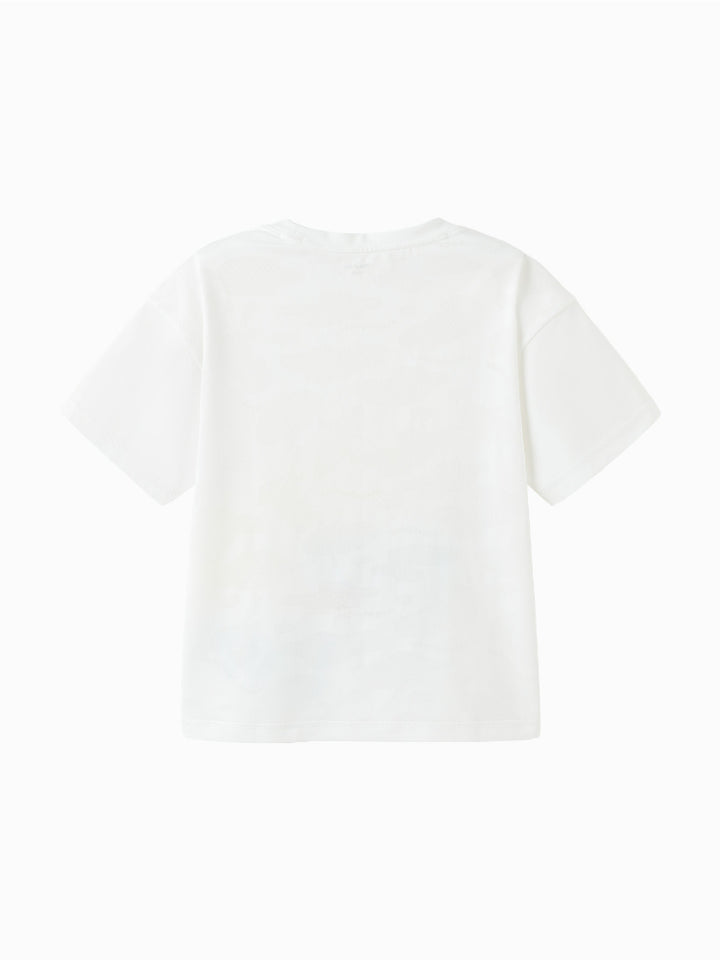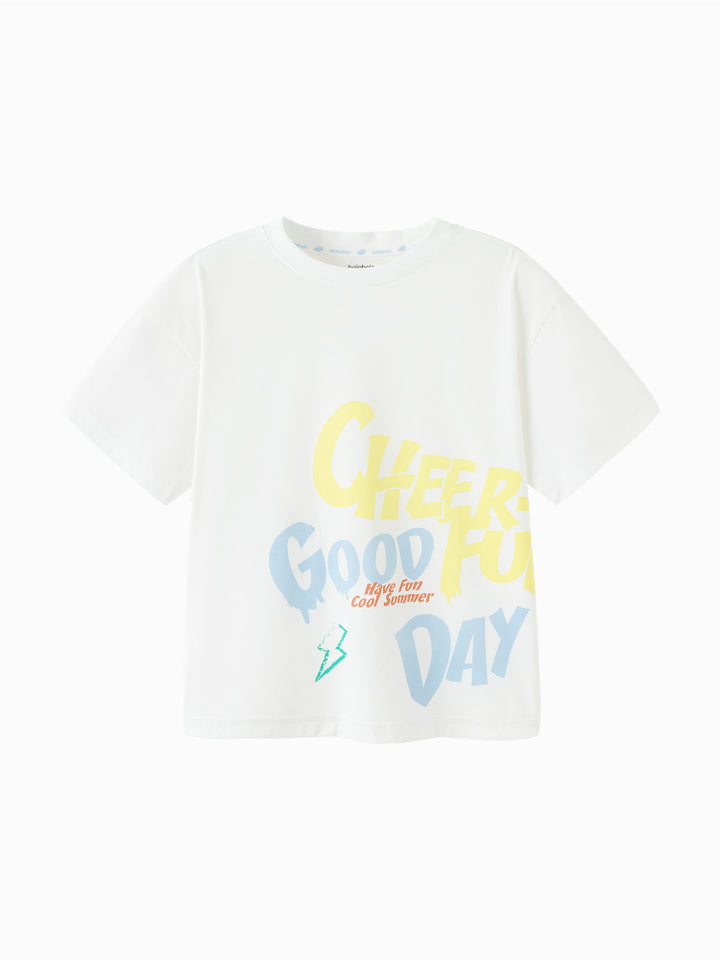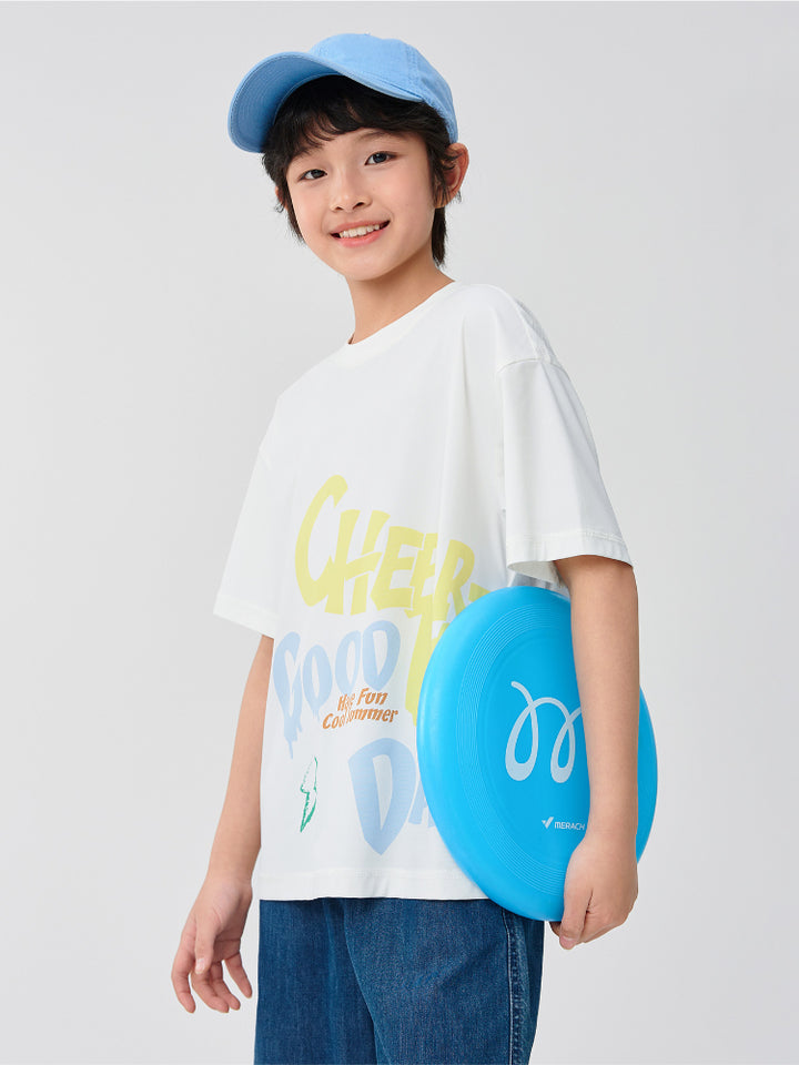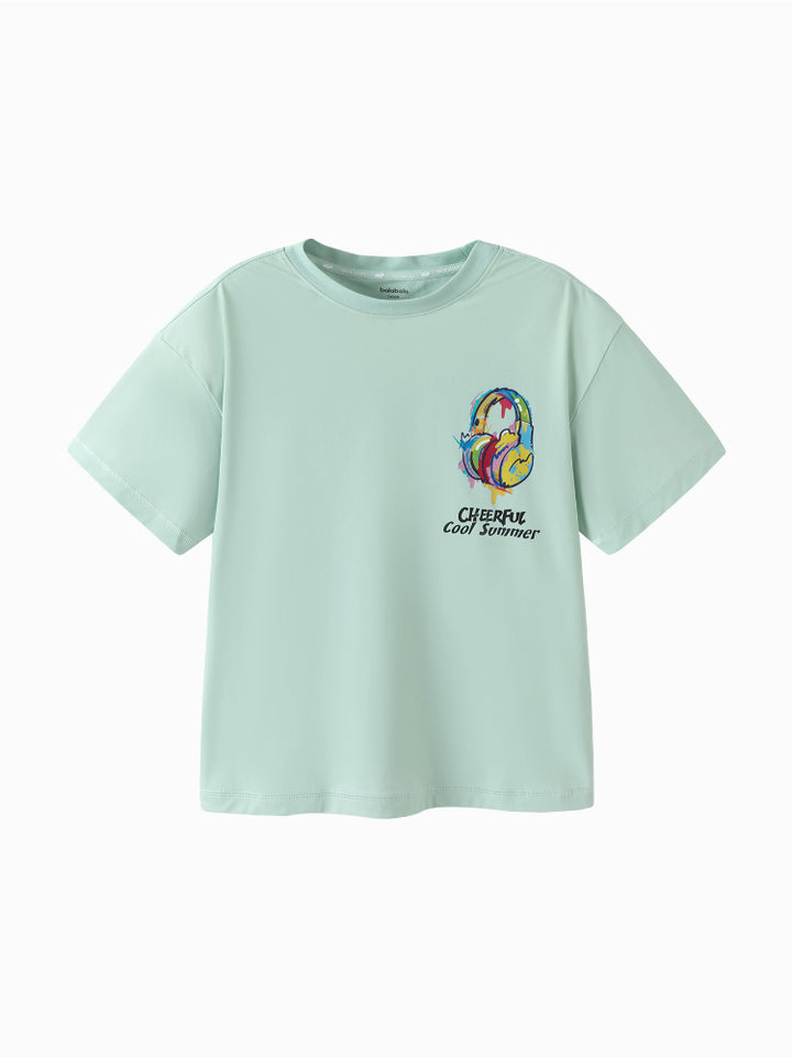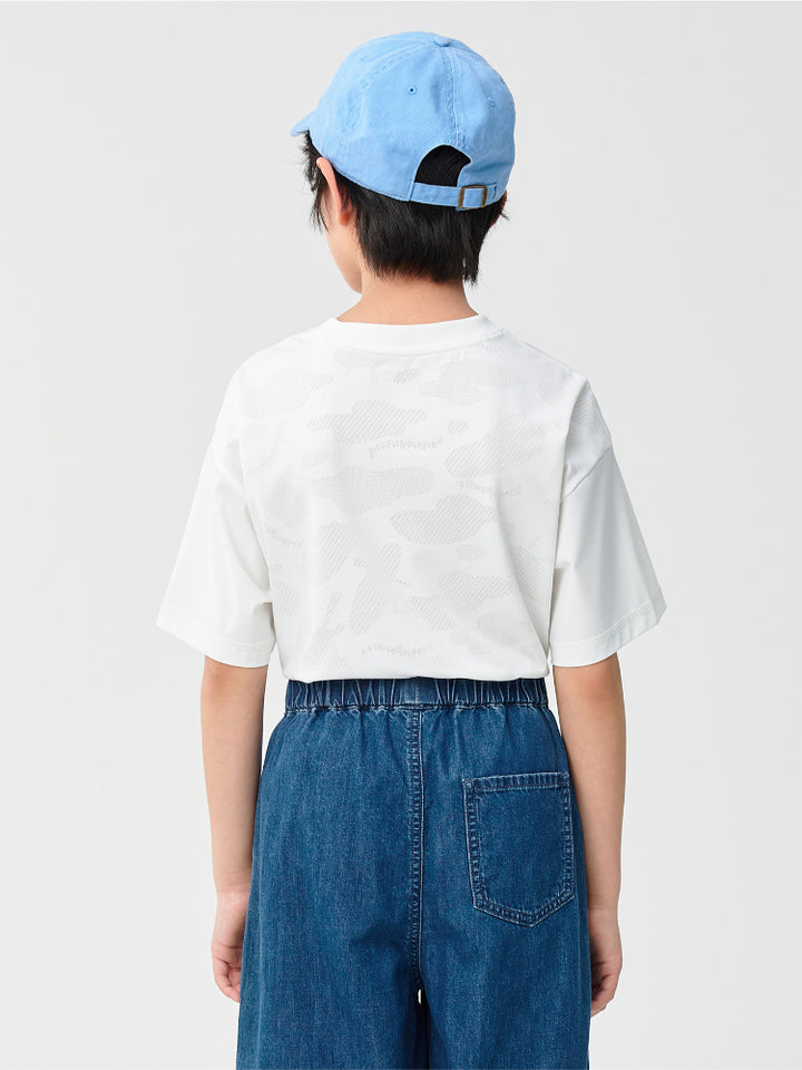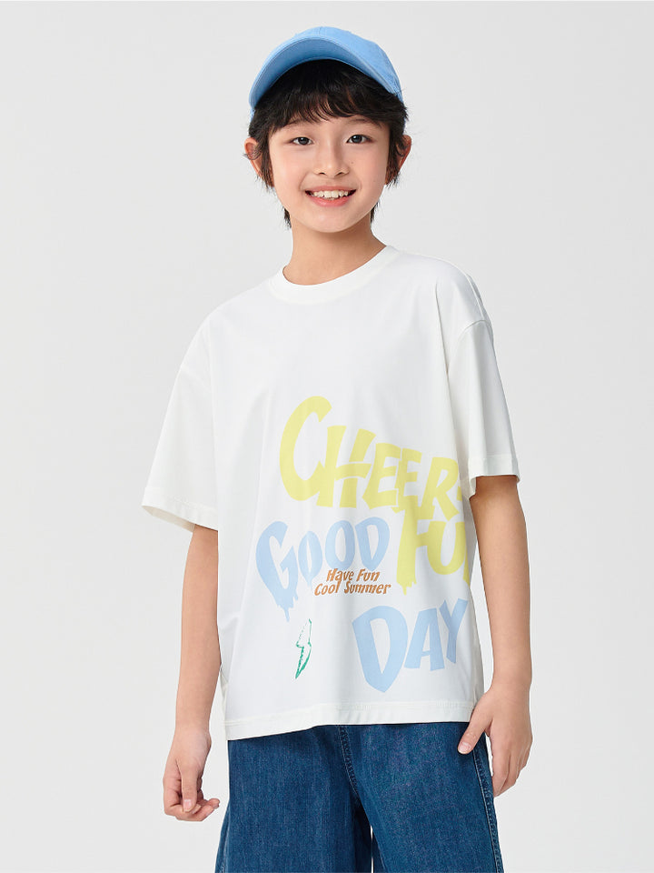 Boys' Short Sleeve T-Shirt - Textured Fabric With Front Print And Crew Neck