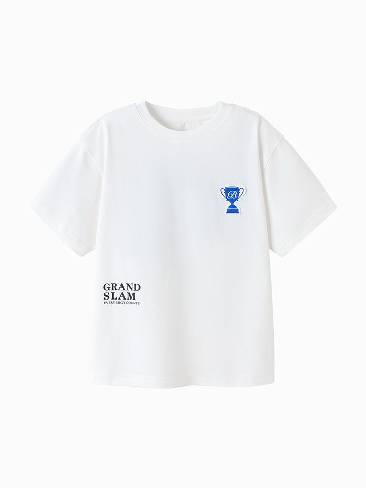 short sleeves casual t-shirt, decorated with a print on the front side, comes with a rounded shape neckline