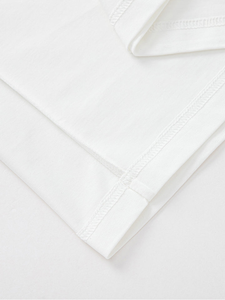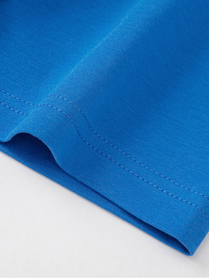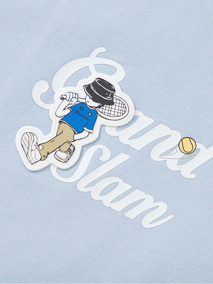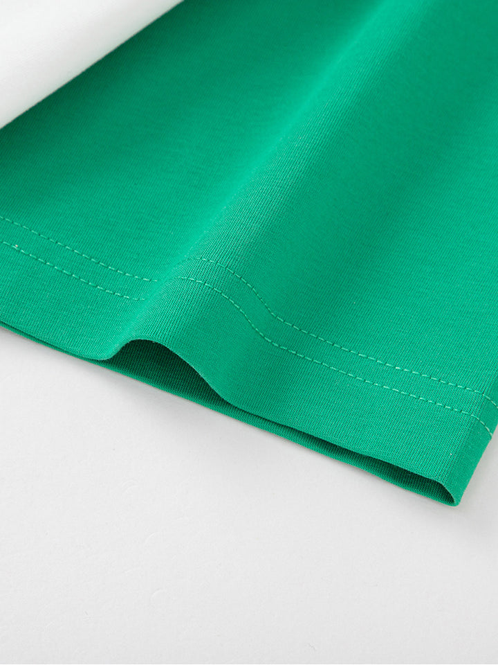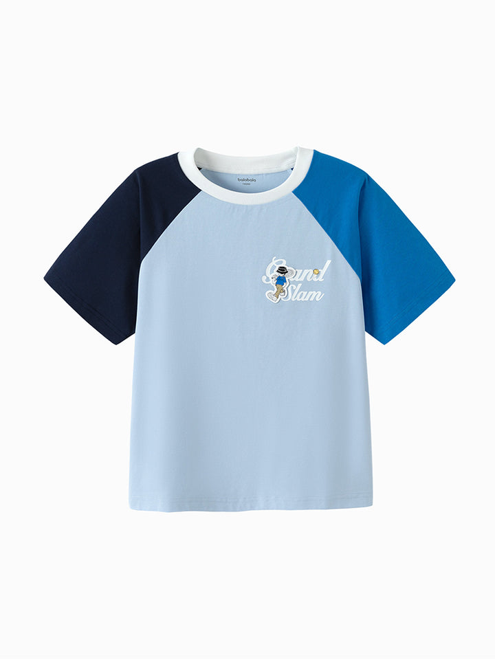 short sleeves casual t-shirt with contrast colored sleeves, decorated with a print on the front side, and comes with a rounded shape neckline