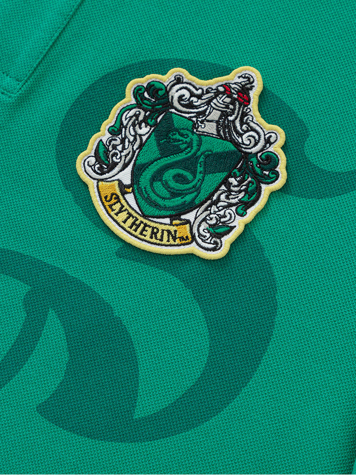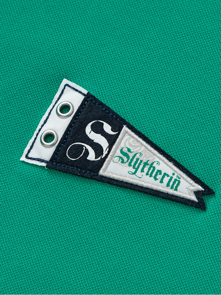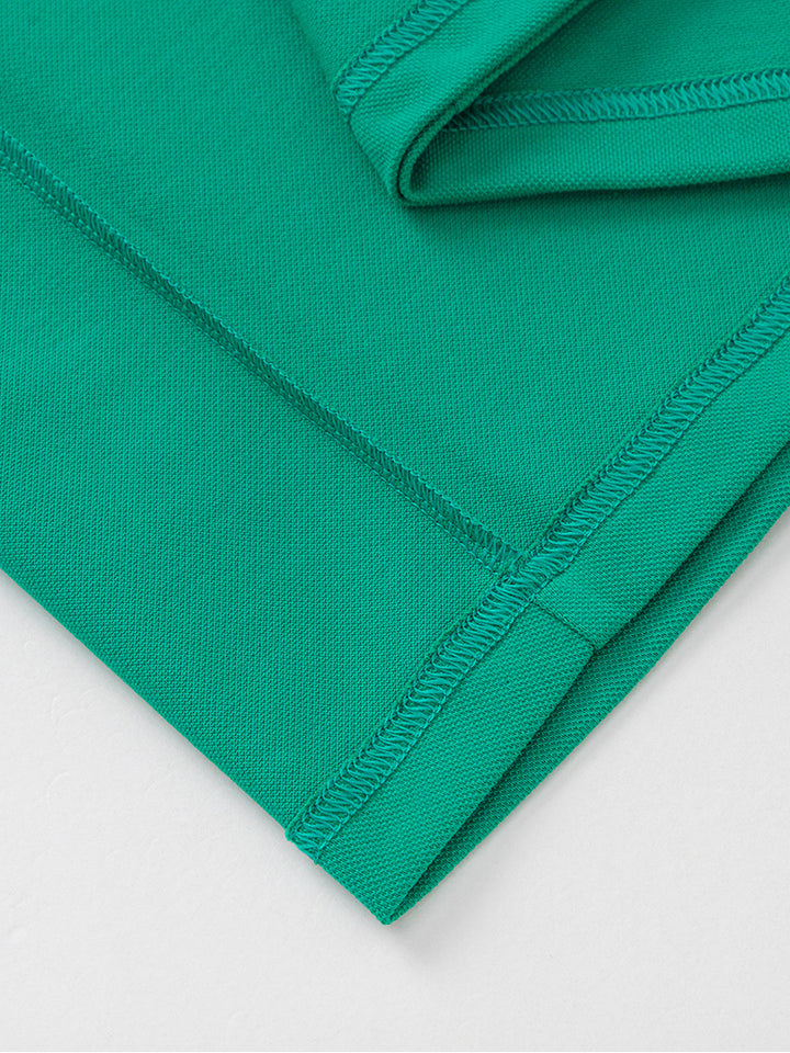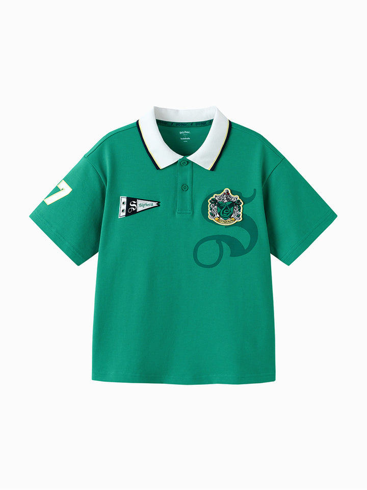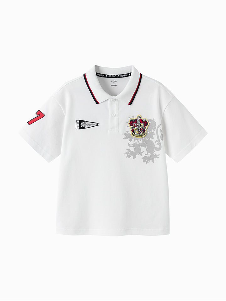 short sleeves casual polo t-shirt, decorated with embroidery patches on the front side and on one sleeve, comes with front buttons and a classic regular collar