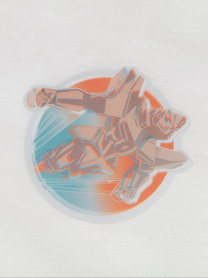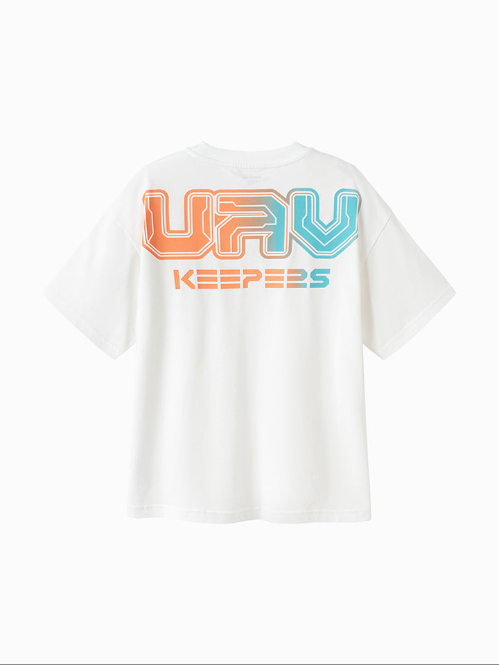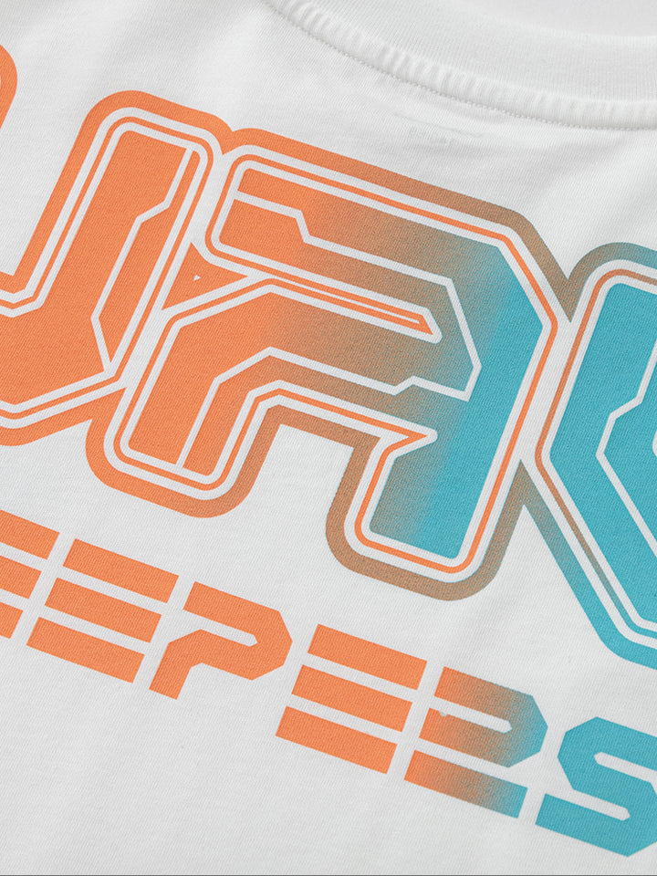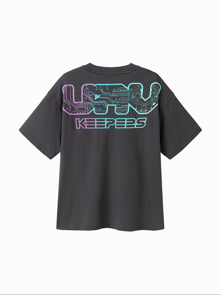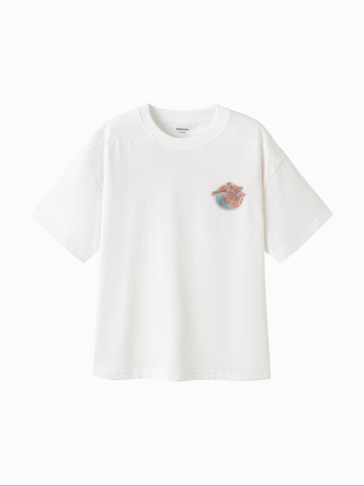 A stylish kids t-shirt with short sleeves and eye-catching prints on the front and back. Featuring a comfortable round neck, its perfect for casual wear and adds a fun touch to any outfit