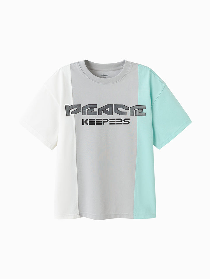 A fun and comfortable kids t-shirt featuring short sleeves with colored details and a stylish front print. The round neck design ensures a perfect fit, making it a great addition to any wardrobe for everyday wear