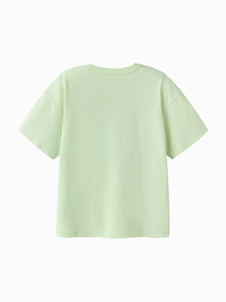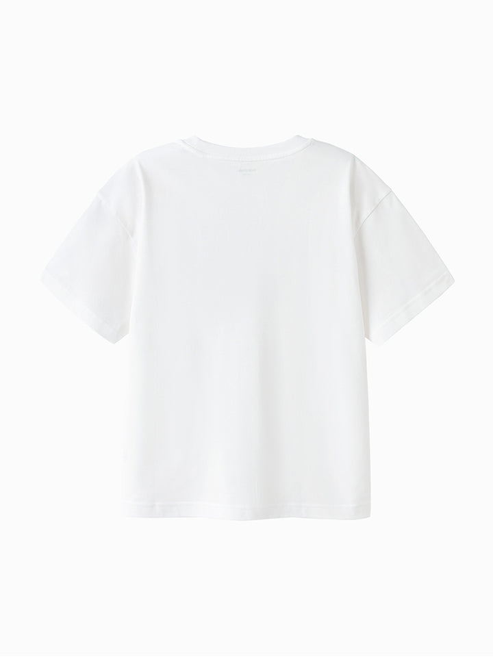 short sleeves casual t-shirt, decorated with a print on the front side, comes with a rounded shape neckline
