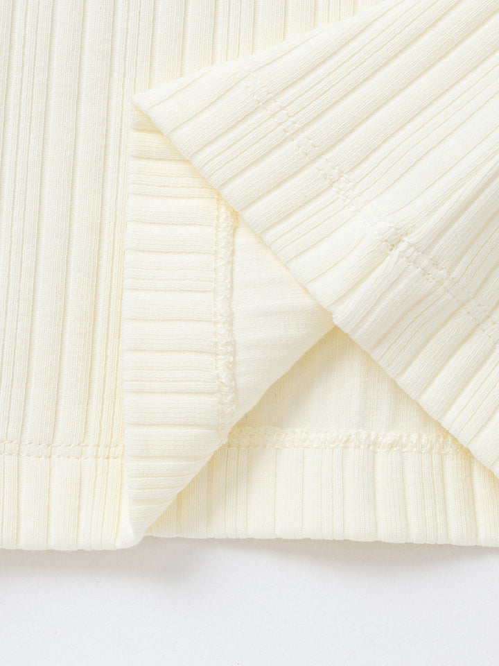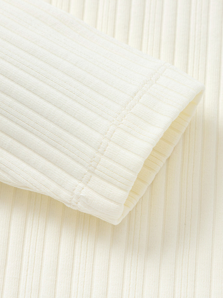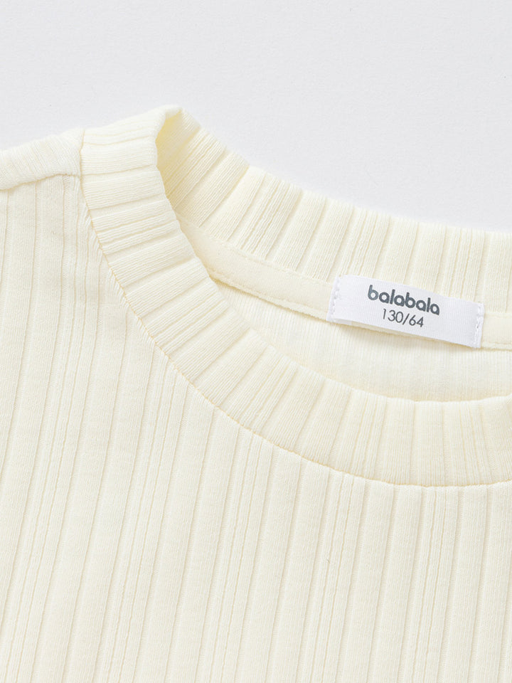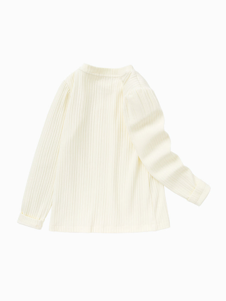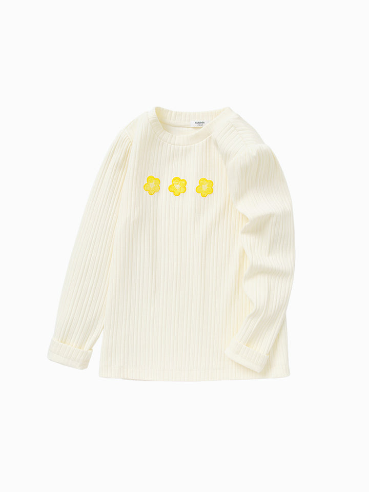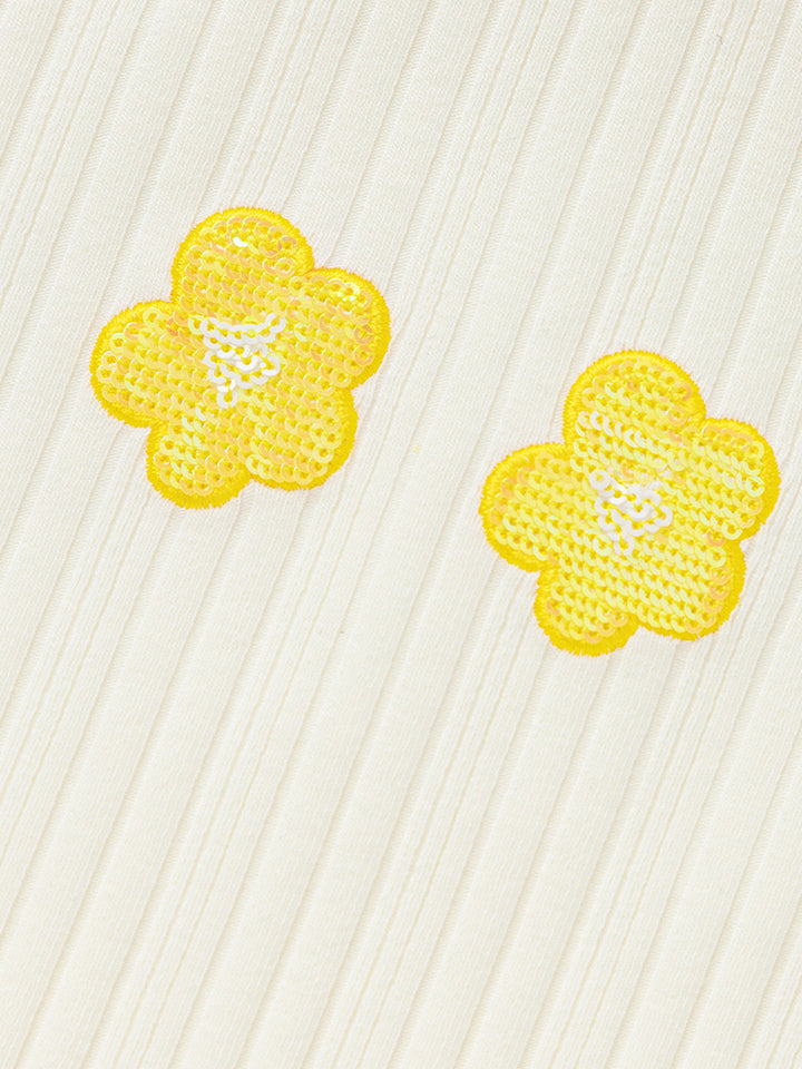 long sleeves knitted girl top in a textured pattern fabric, decorated with embroidery and sequinned details on the front side, comes with a rounded shape neckline