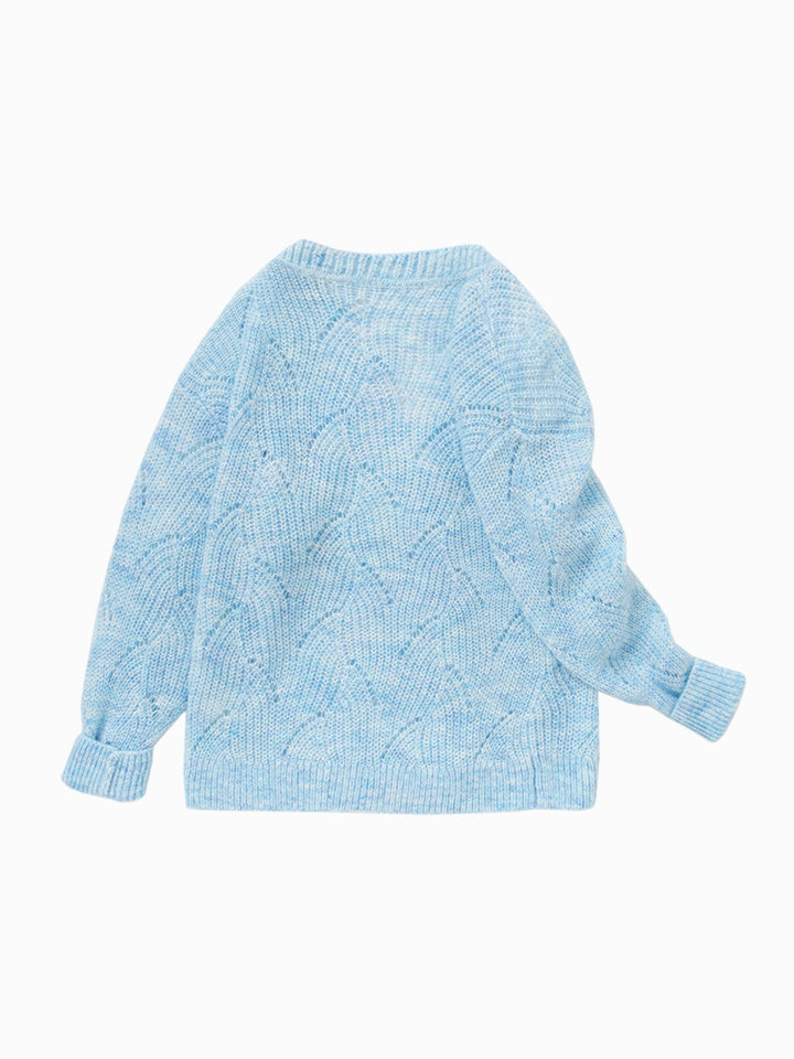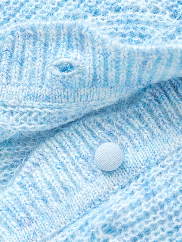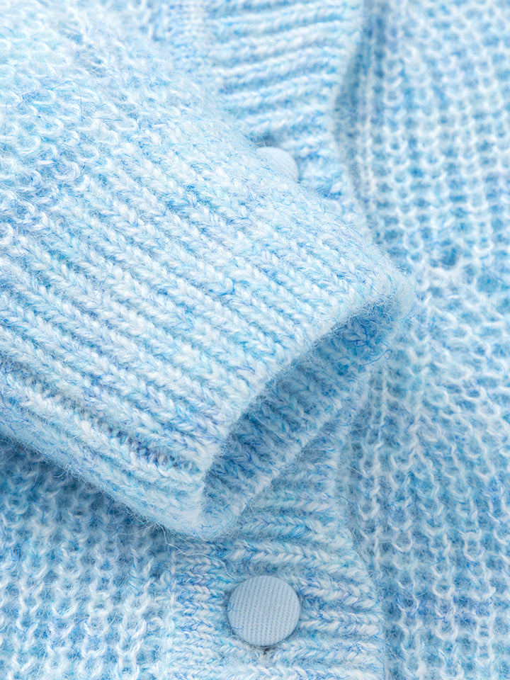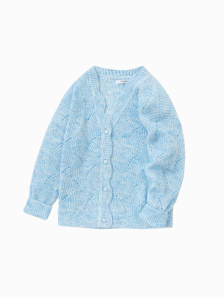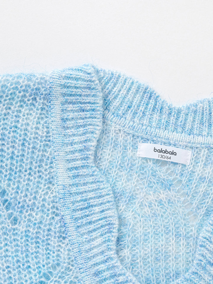 long sleeves knitted girl cardigan jacket in a solid mono colored pattern, decorated with a textured pattern fabric and with perforated, comes with buttons for closure on the front side and with a V shape neckline