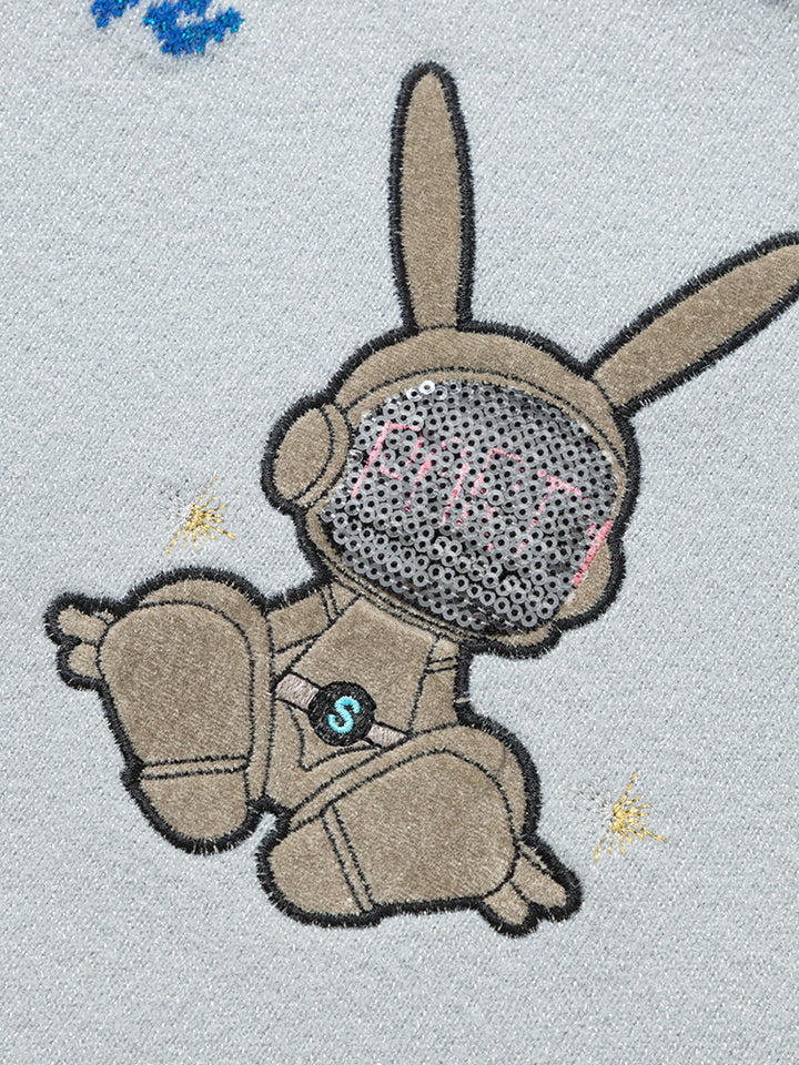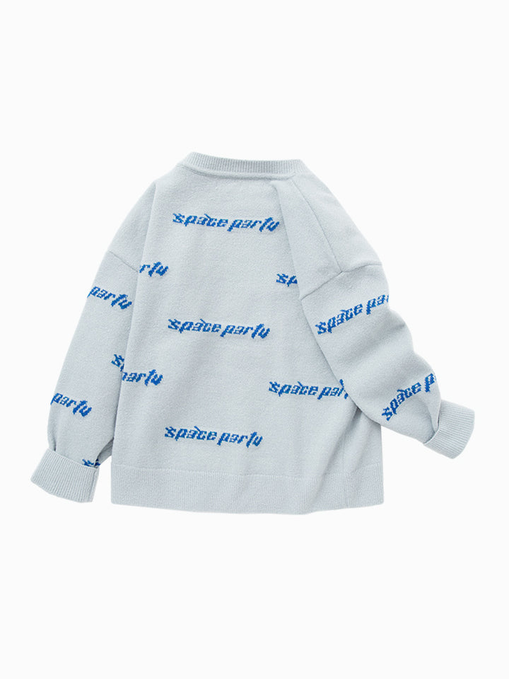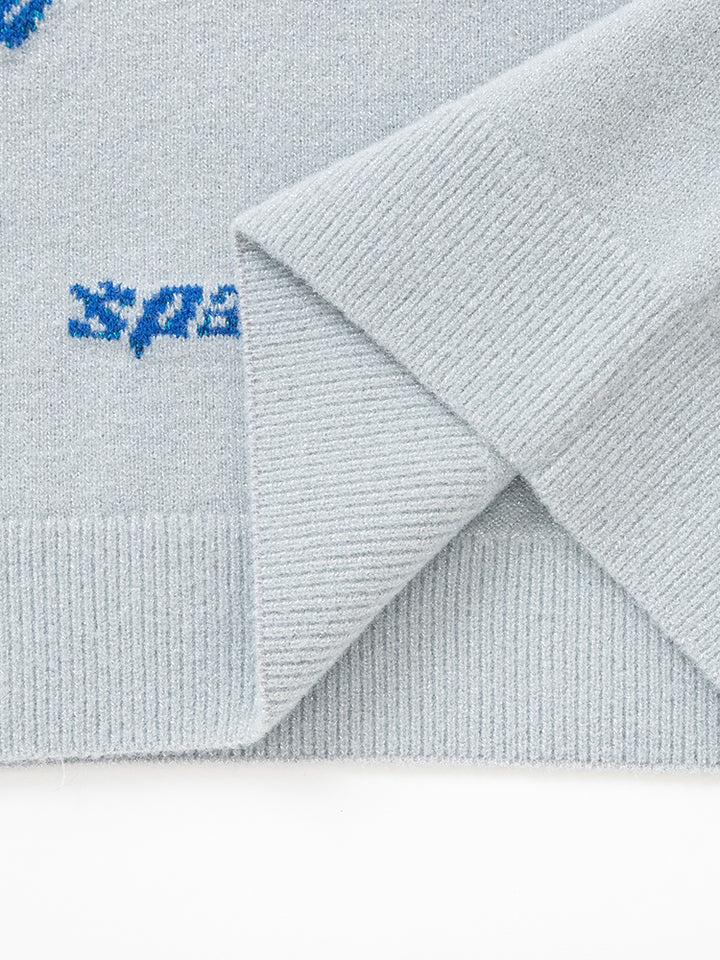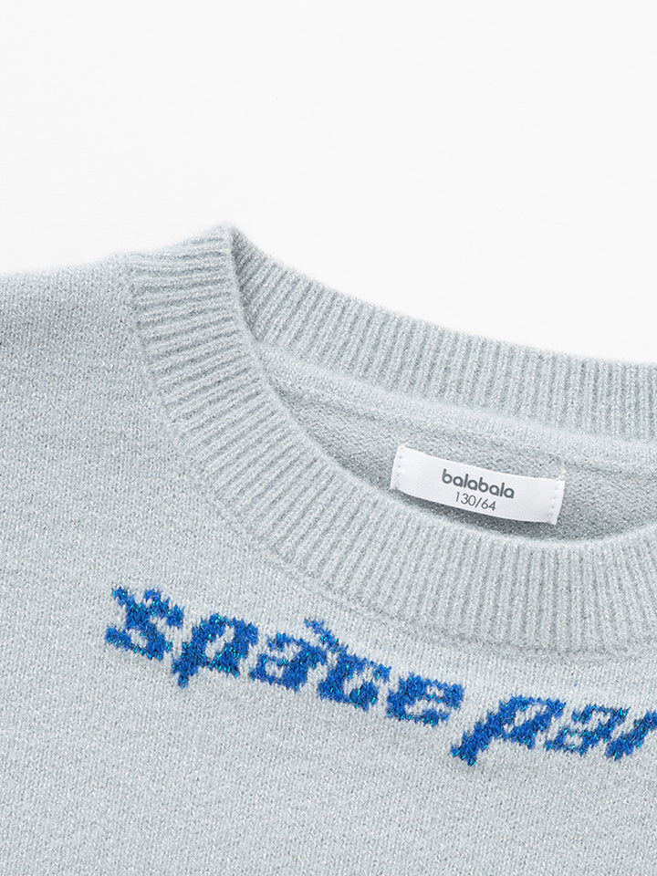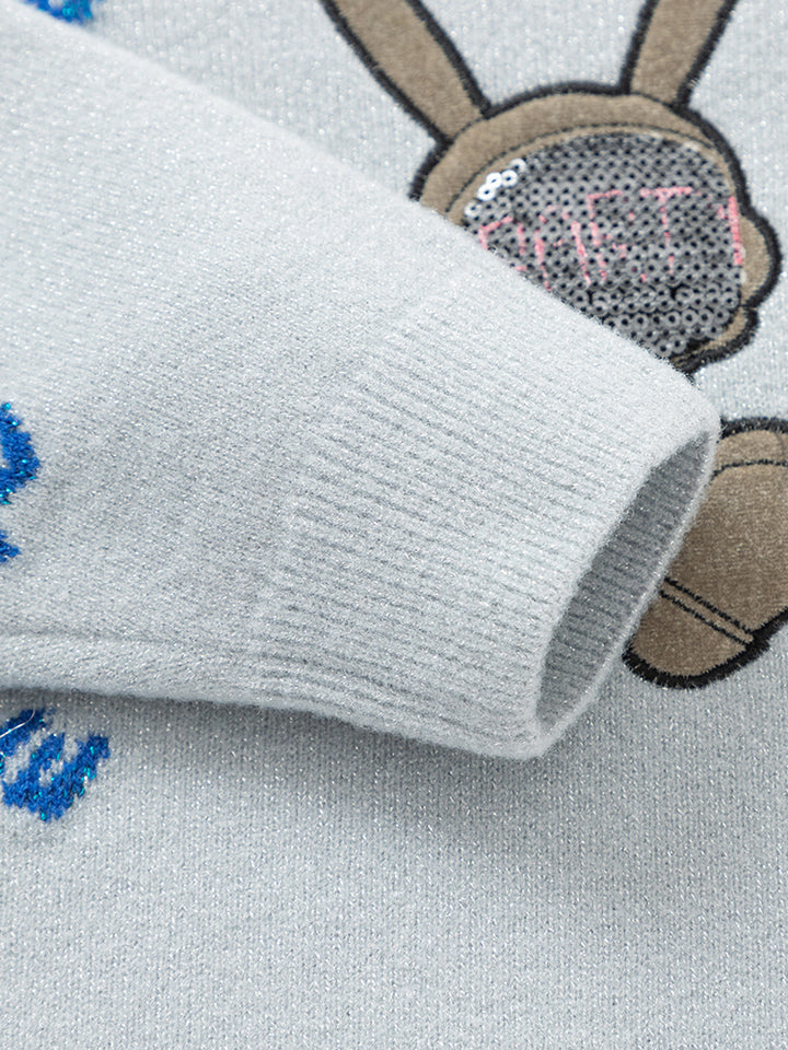 long sleeves girl sweater, in a knitted fabric material, decorated with a printed pattern on full design, comes with a rounded shape neckline
