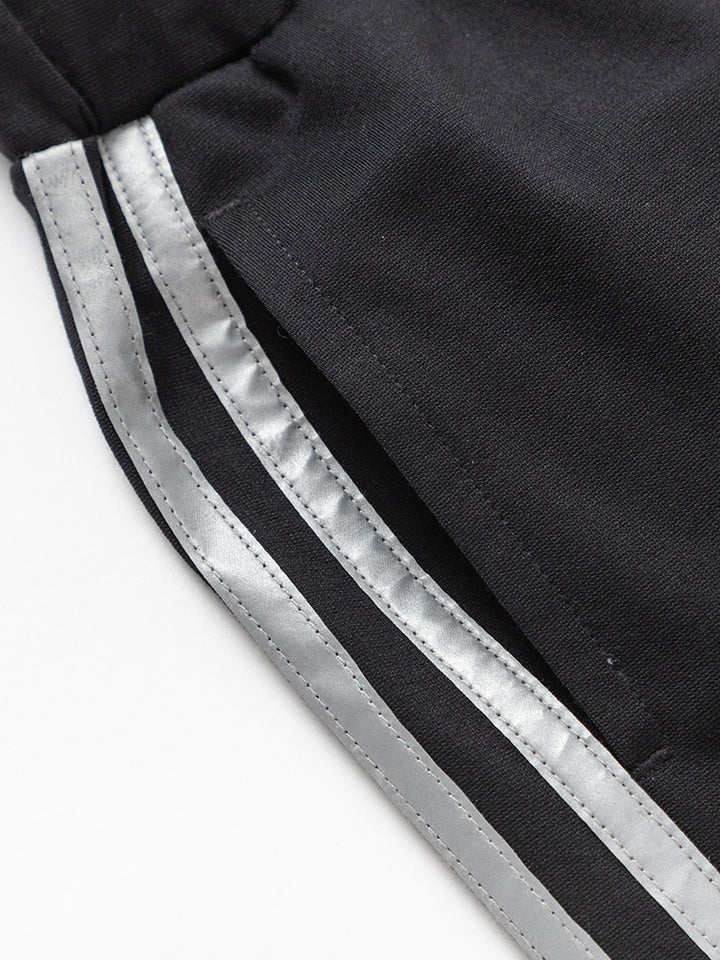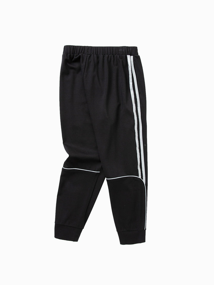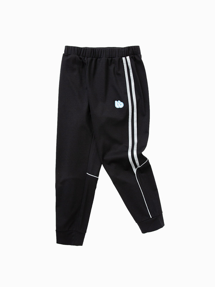 boy casua sweatpants, decorated with lining details on the sides of both legs and a small patch on the front side, comes with front pockets and with an elasticated waistband