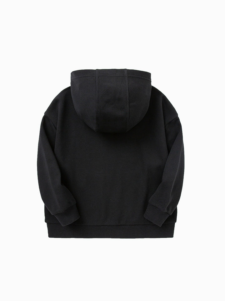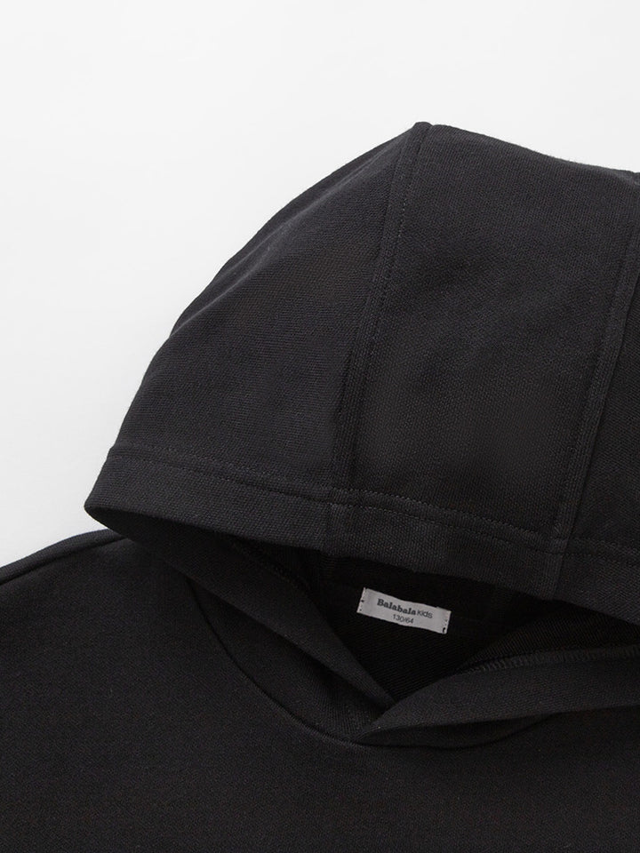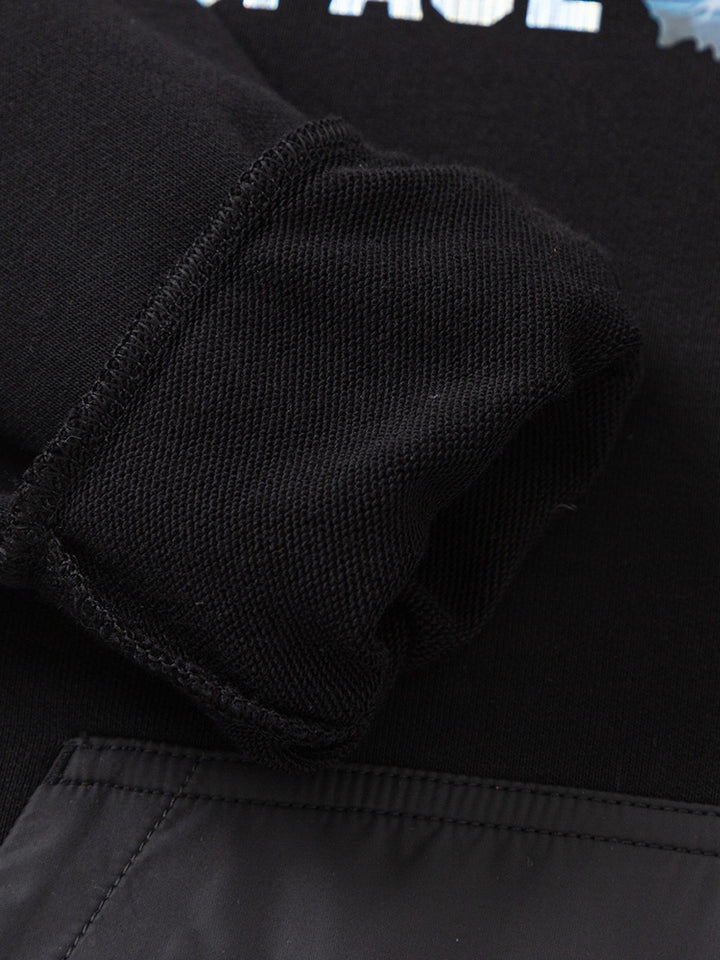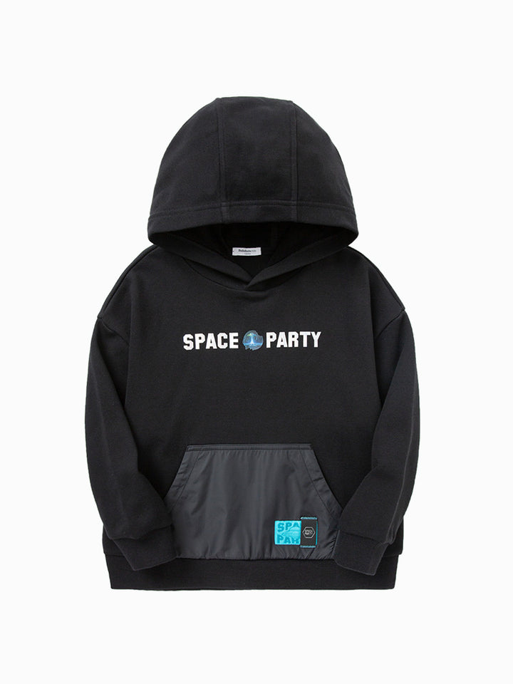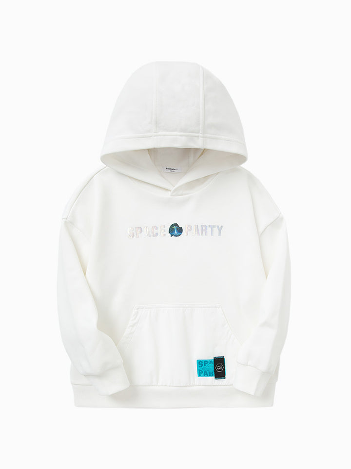 long sleeves casual boy hoodie sweatshirt, decorated with a print on the front side, comes with a contrast fabric pocket on the front side and an attached hoodie collar