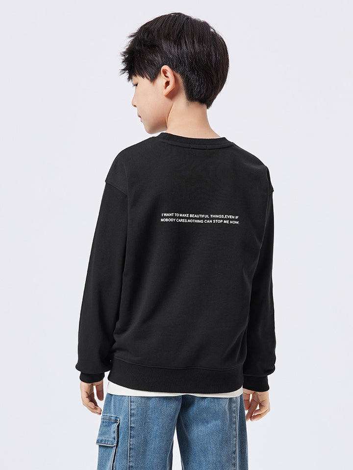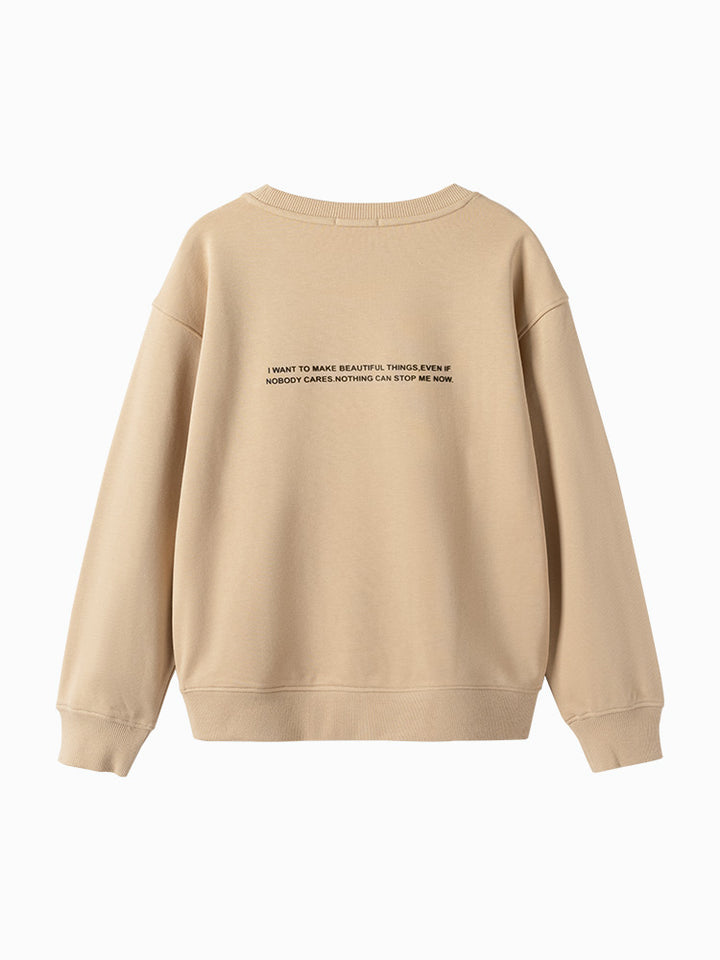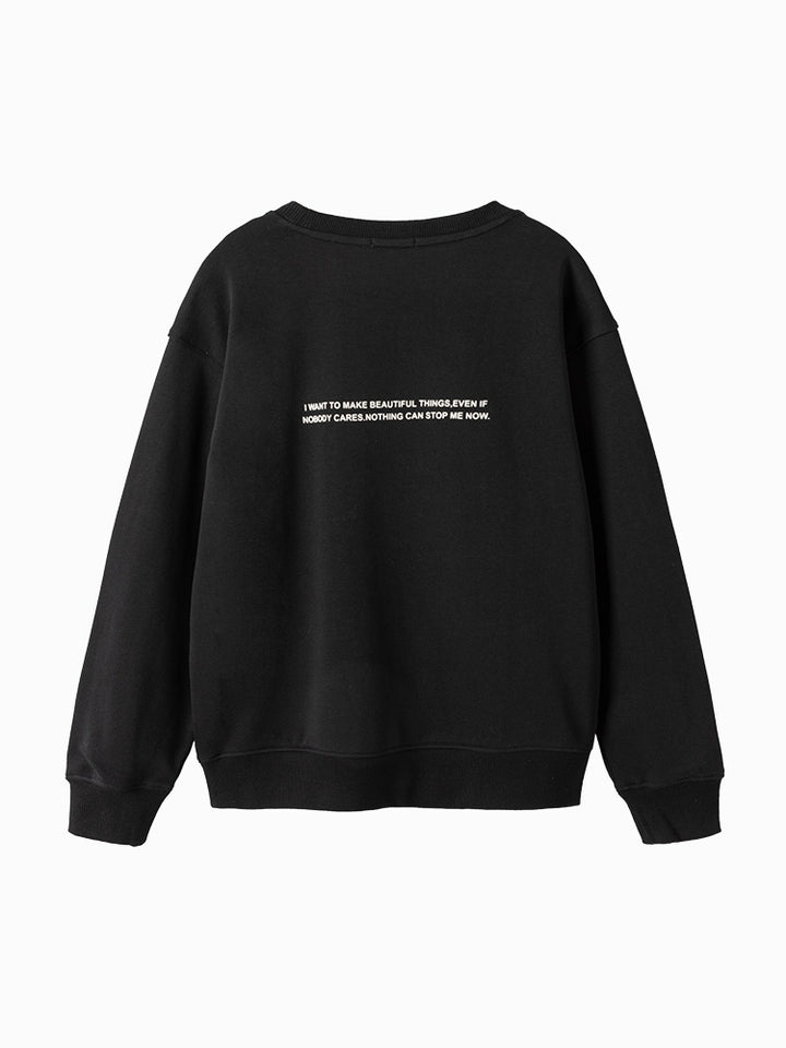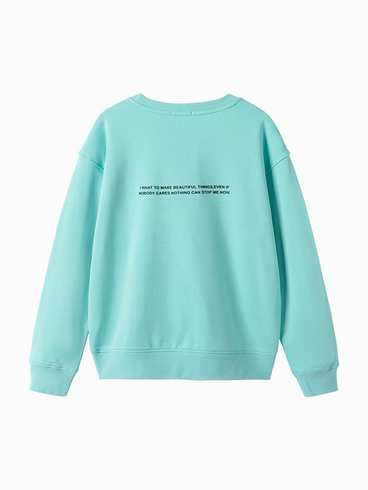 long sleeves casual sweatshirt, decorated with prints on the front and the back sides, comes with a rounded shape collar