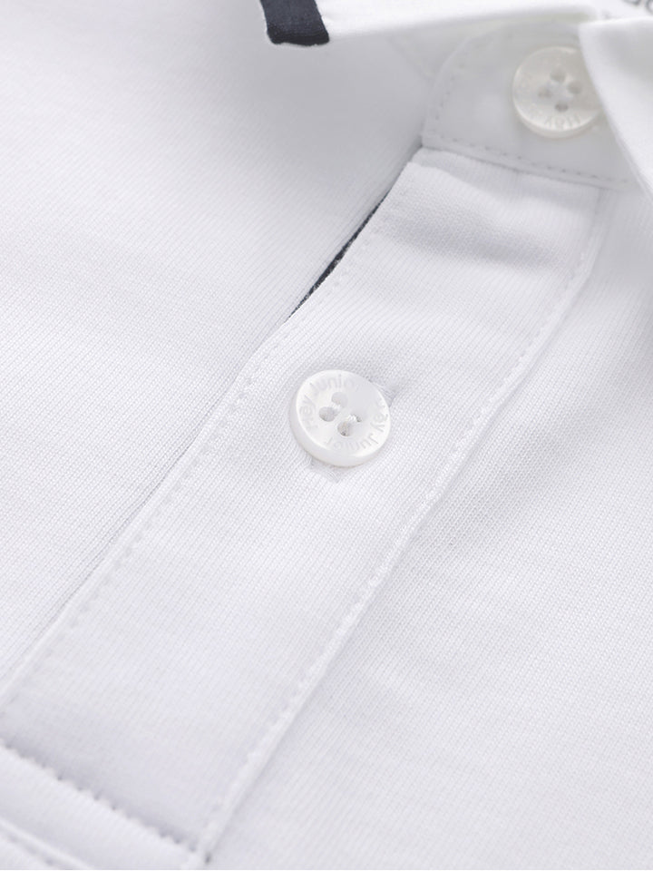 long sleeves casual boy top in a solid colored pattern, decorated with slight lining detail on collar, comes with buttons for closure on the front side and with a classic regular collar