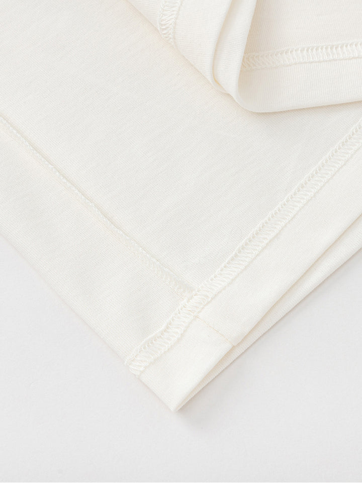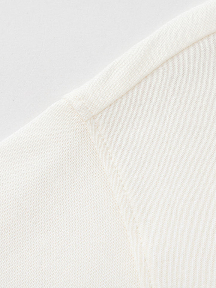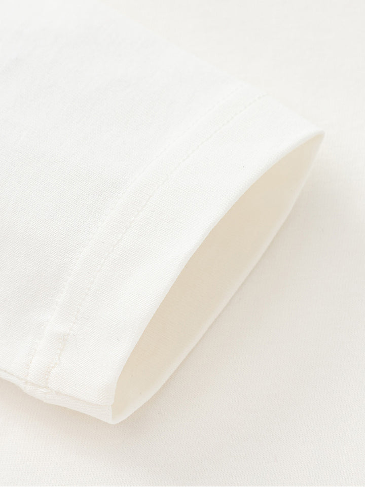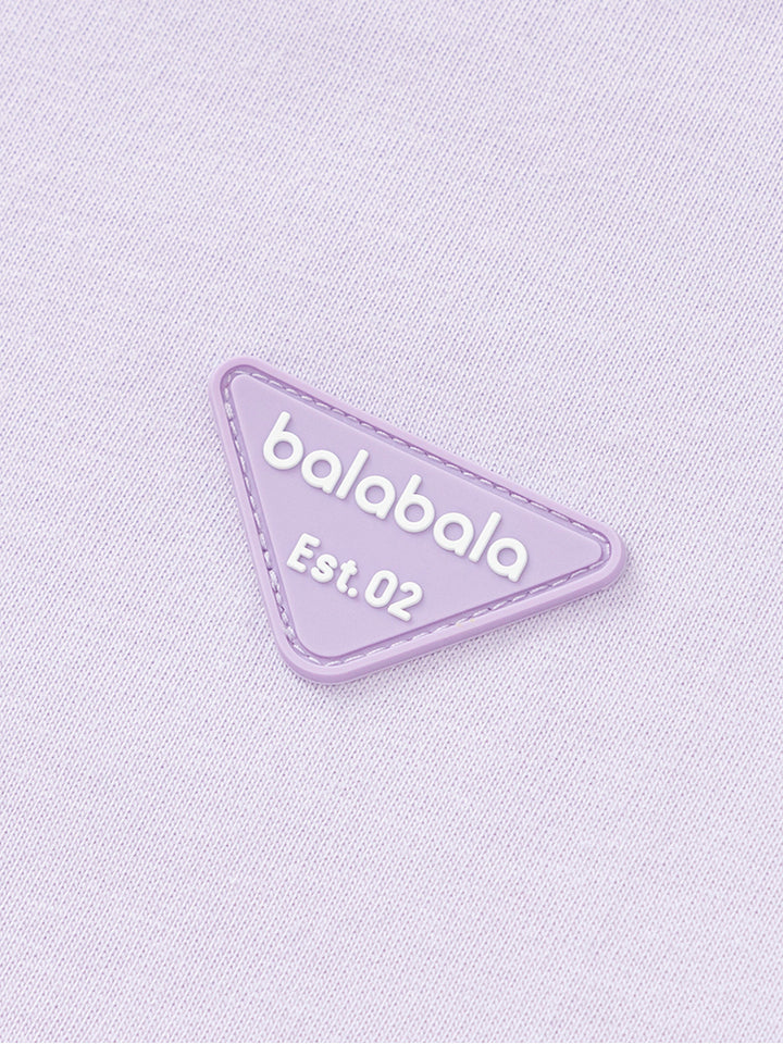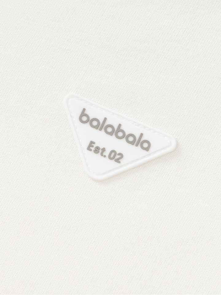 long sleeves casual unisex top in a solid mono colored pattern, decorated with a small patch on the front side, comes with a rounded shape neckline