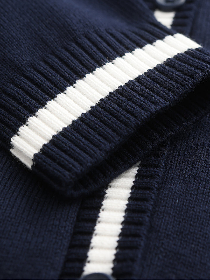 Unisex Contrast Colored Knitted Cardigan