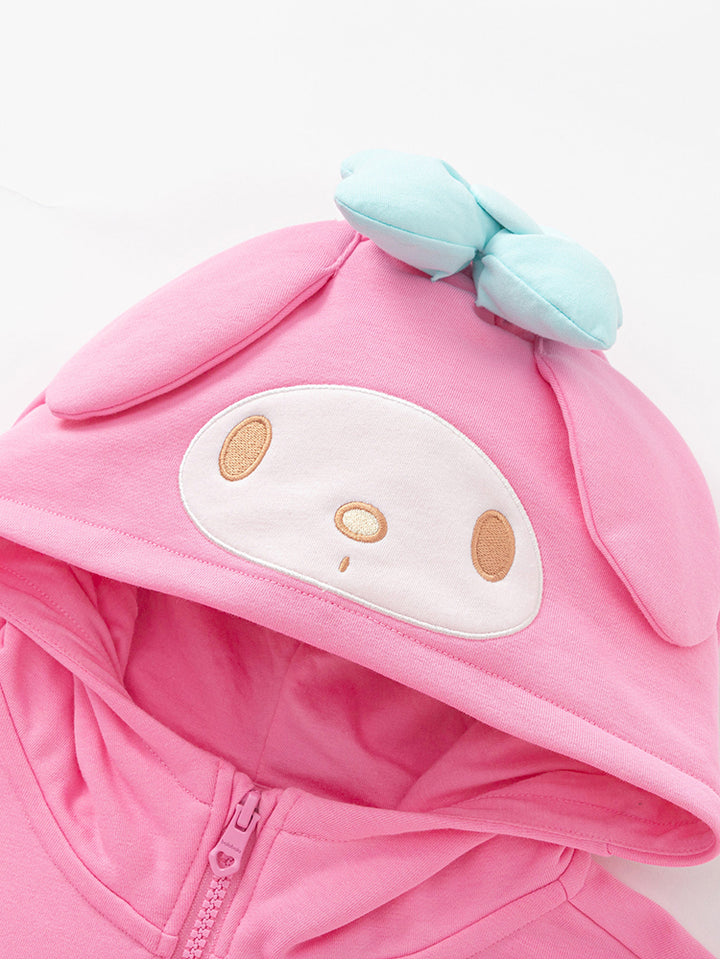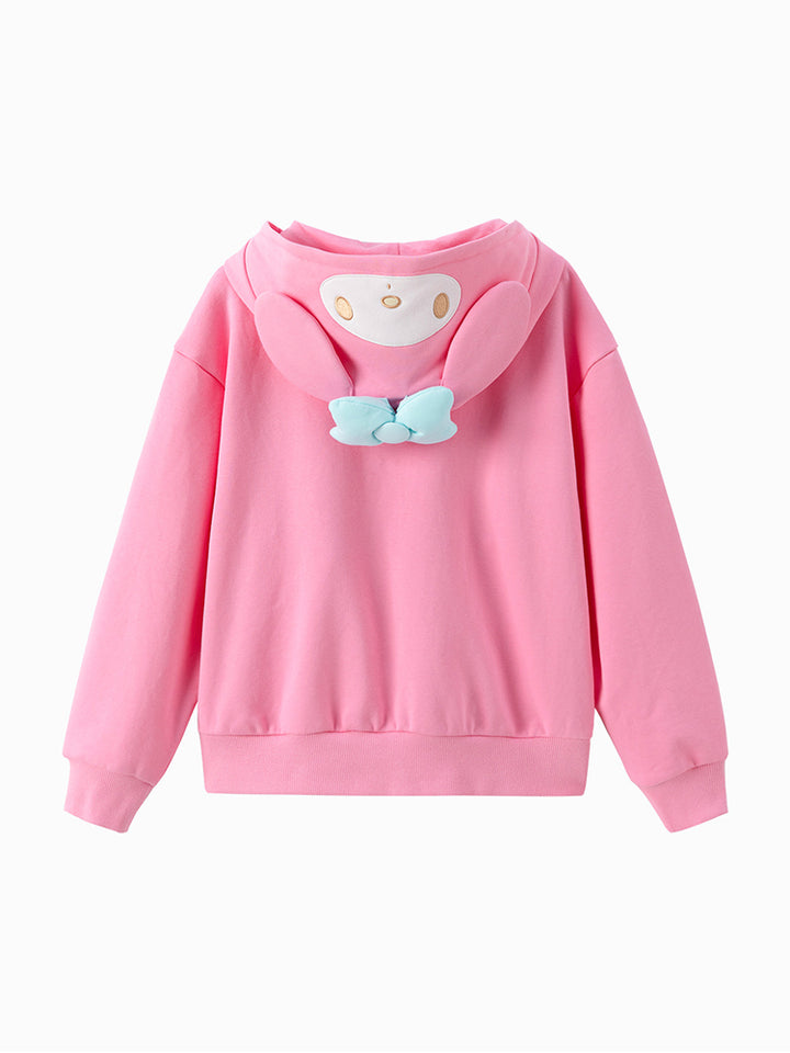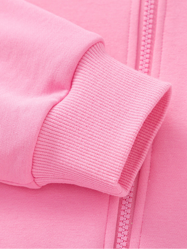 long sleeves hoodie track jacket, decorated with embroidery details on the front side and on hoodie, comes with front pockets and zipper for closure and an attached hoodie collar