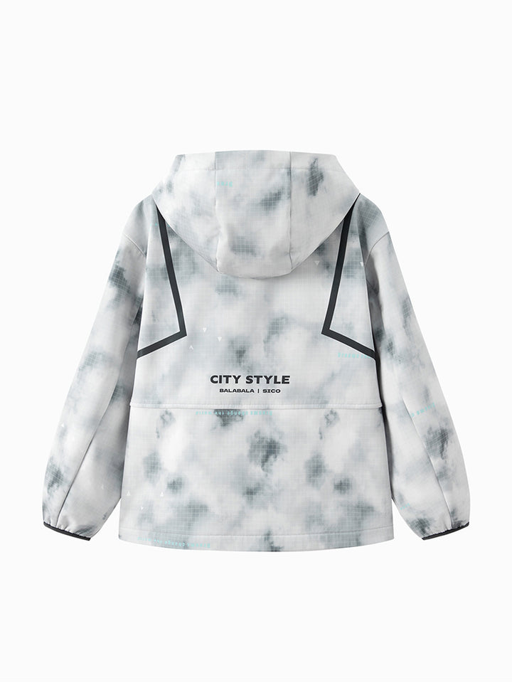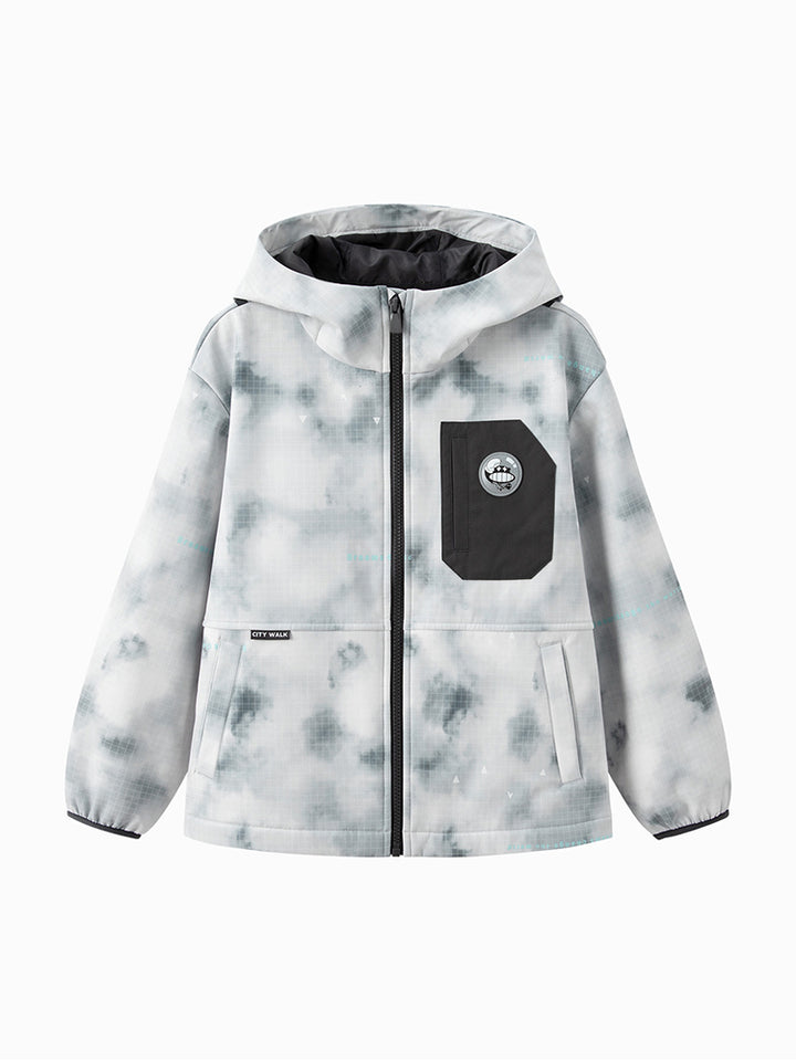 long sleeves casual jacket, decorated with a printed pattern, comes with pockets on the front side, front zipper for closure and with a hoodie collar