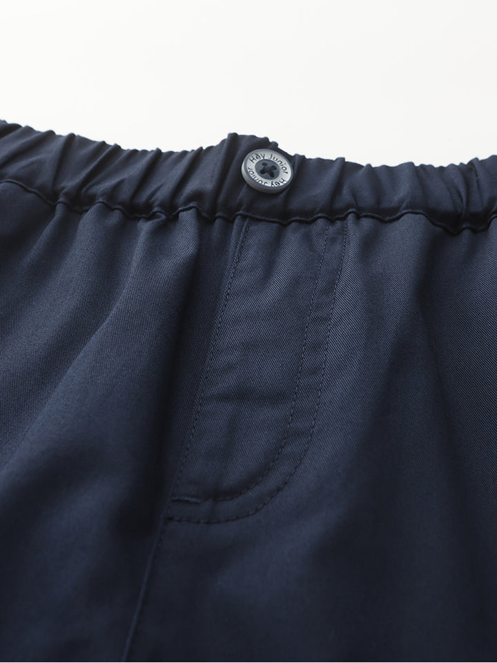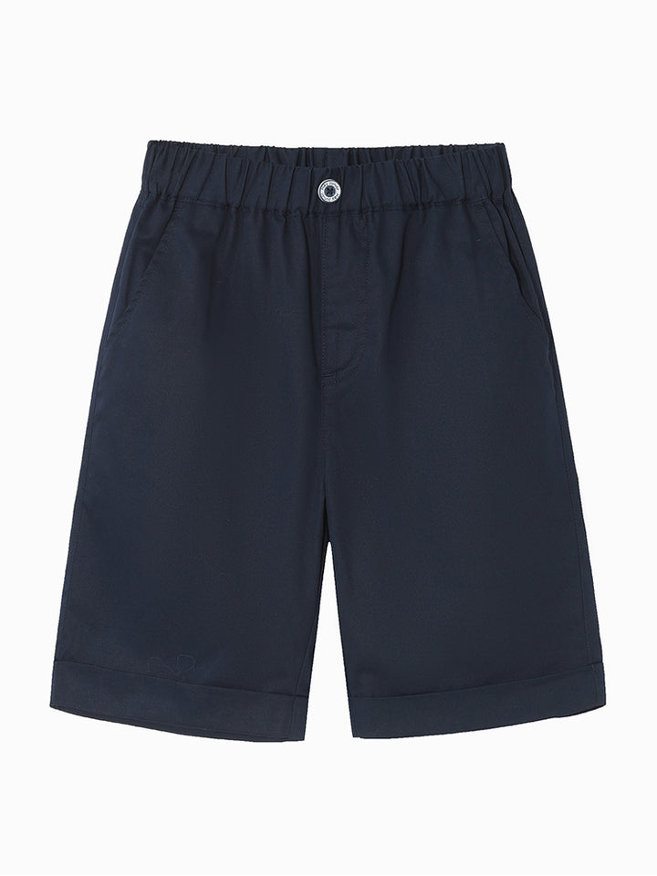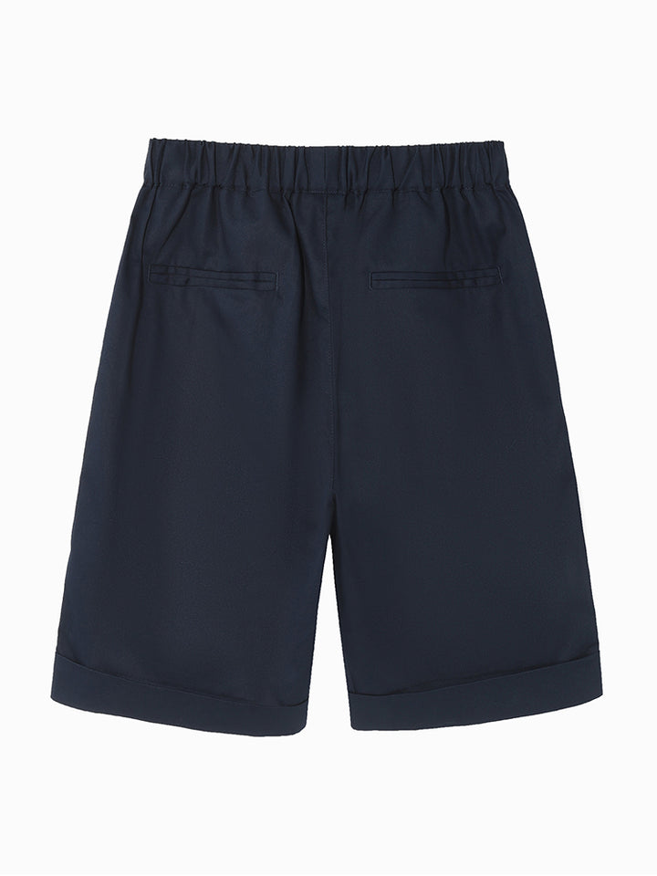 casual boy shorts in a solid mono colored pattern, comes with pockets on the front and the back sides and with button and with a comfy elasticated waistband