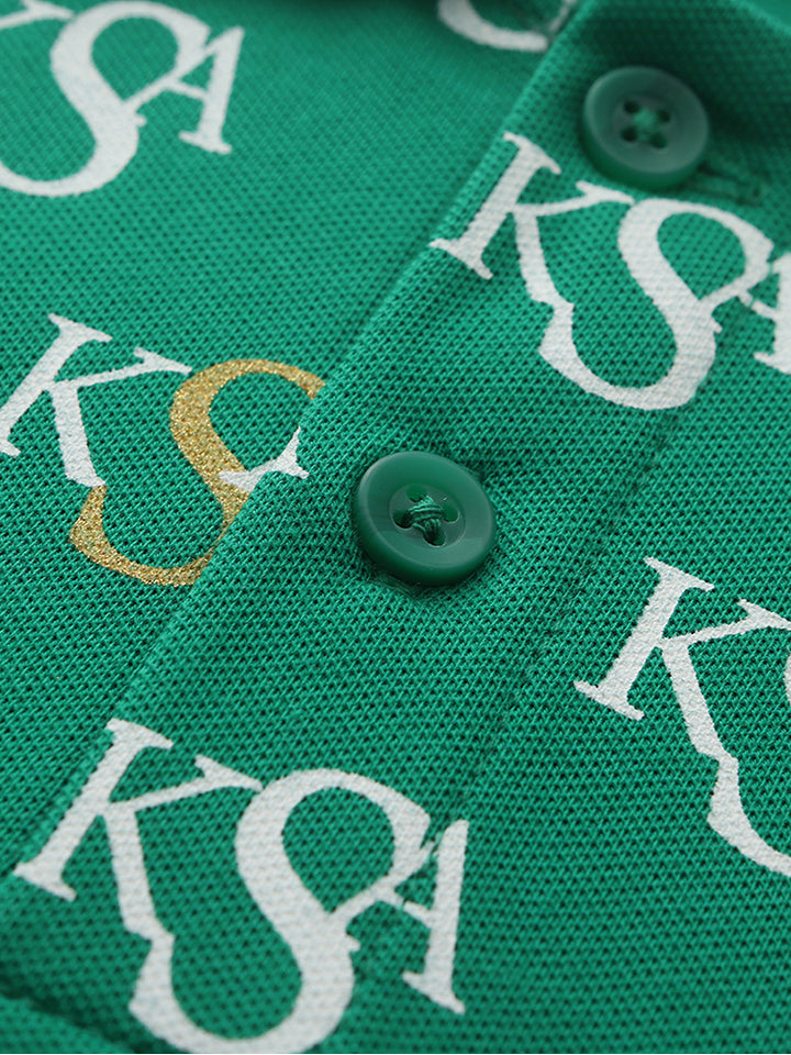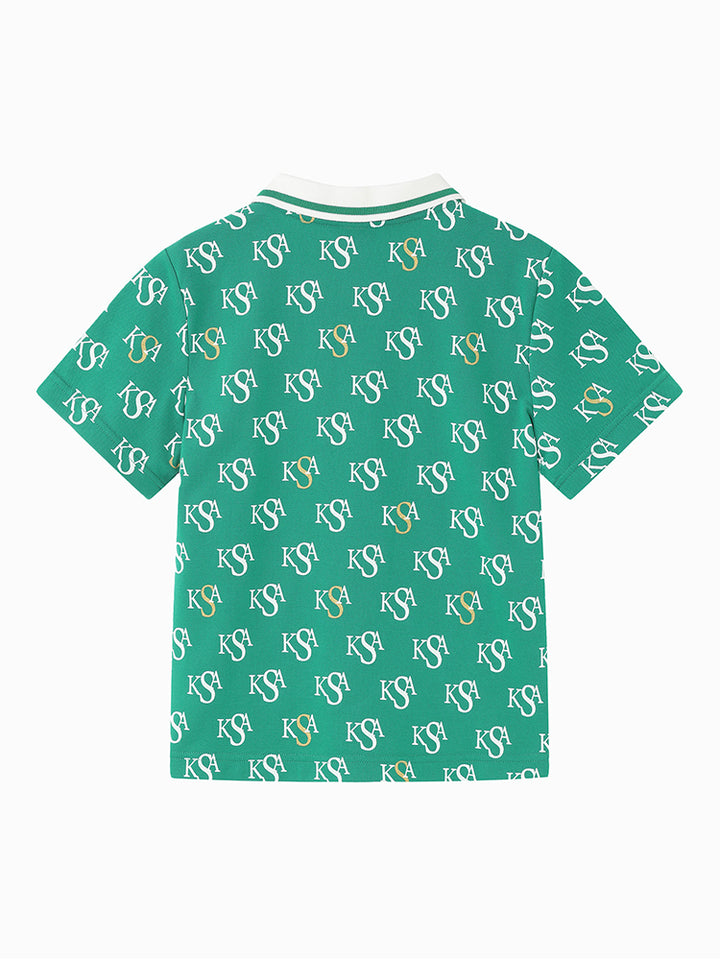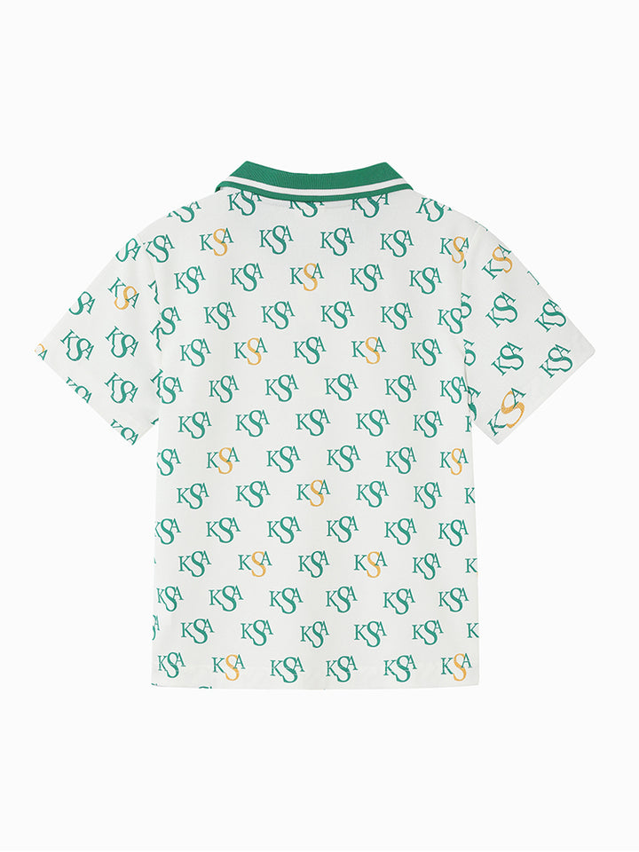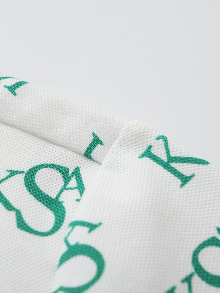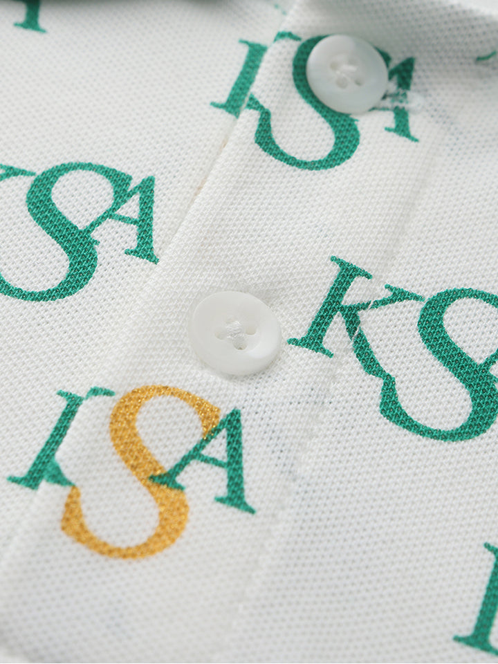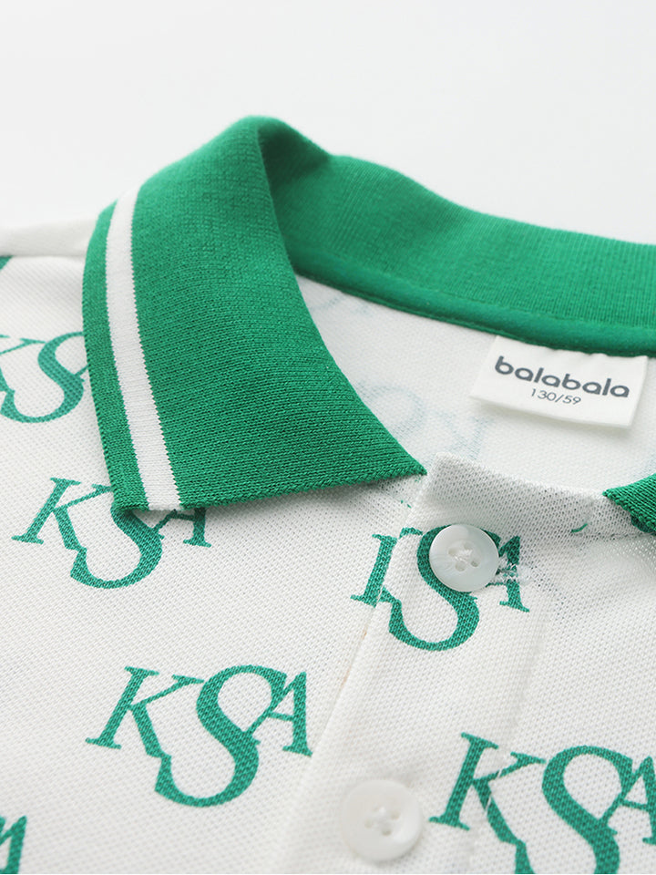 short sleeves polo t-shirt, decorated with a printed pattern, comes with buttons for closure on the front side and with a classic neck collar