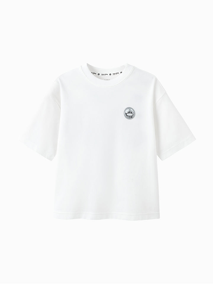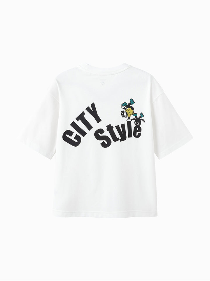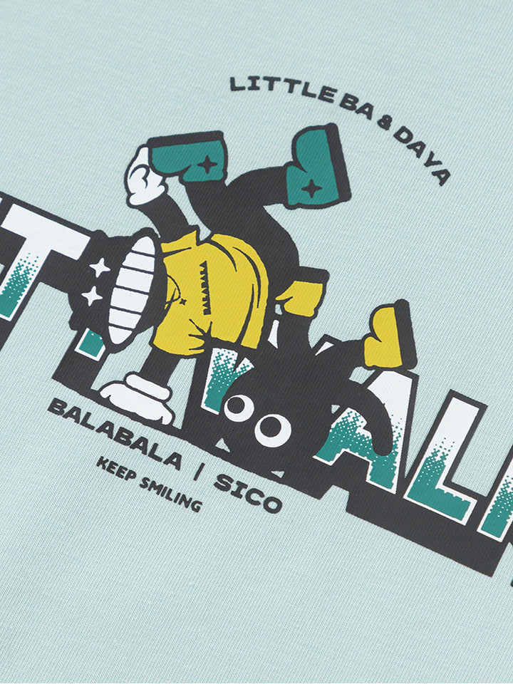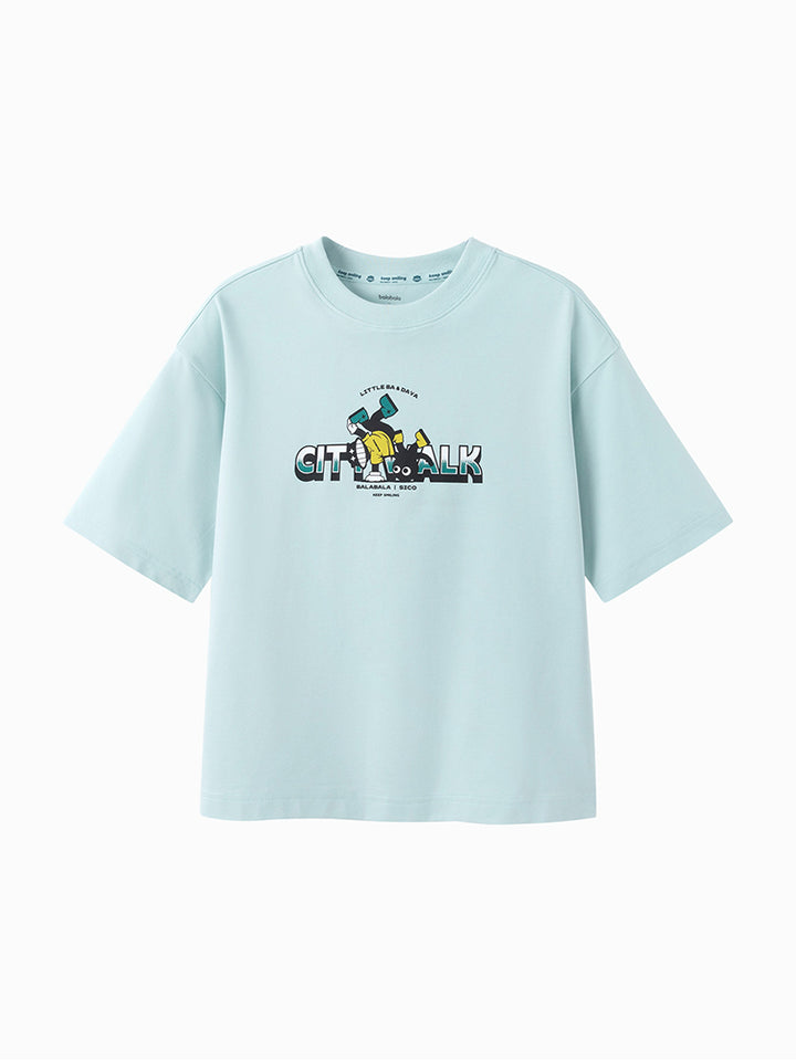 short sleeves boy t-shirt decorated with print and comes with a rounded shape neckline