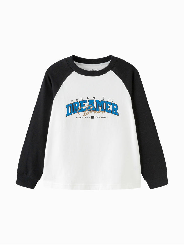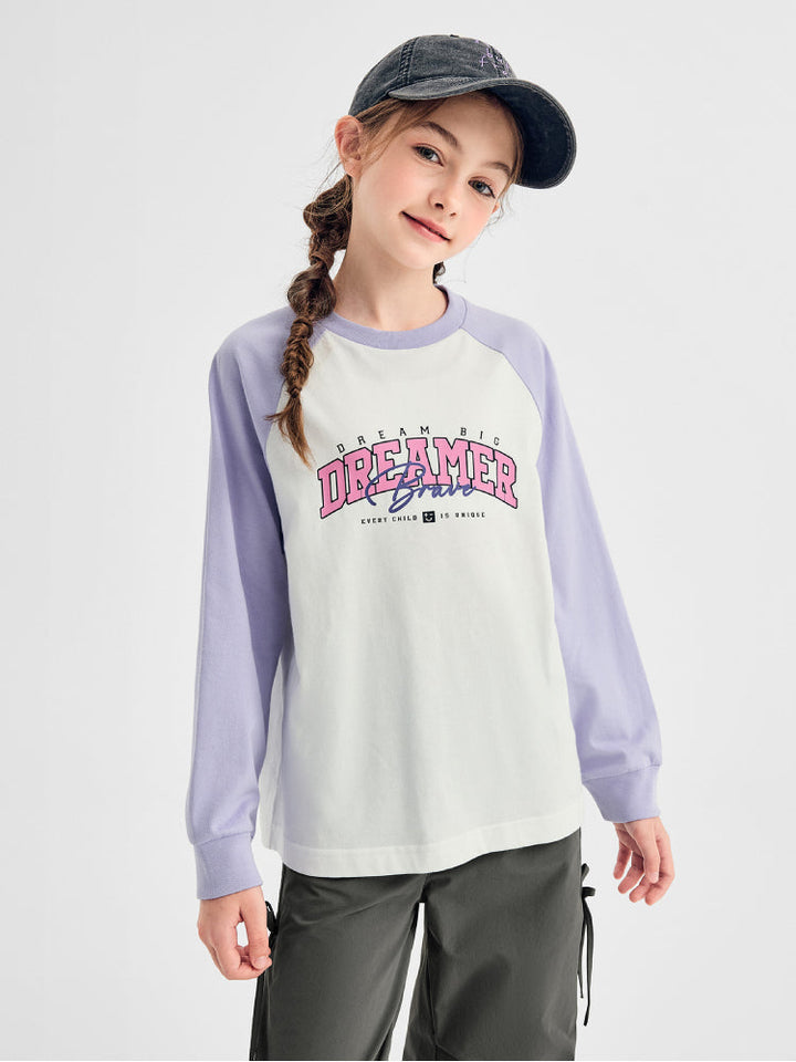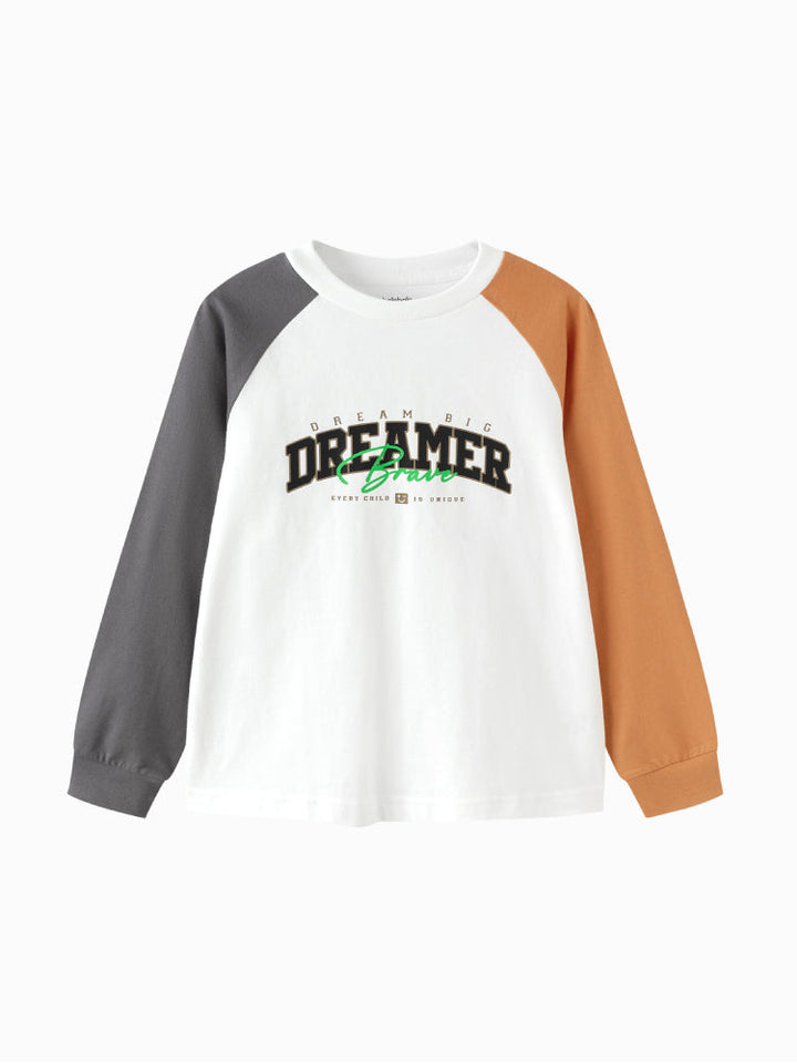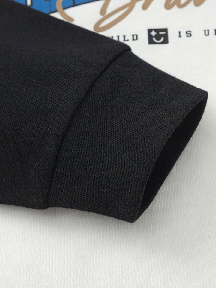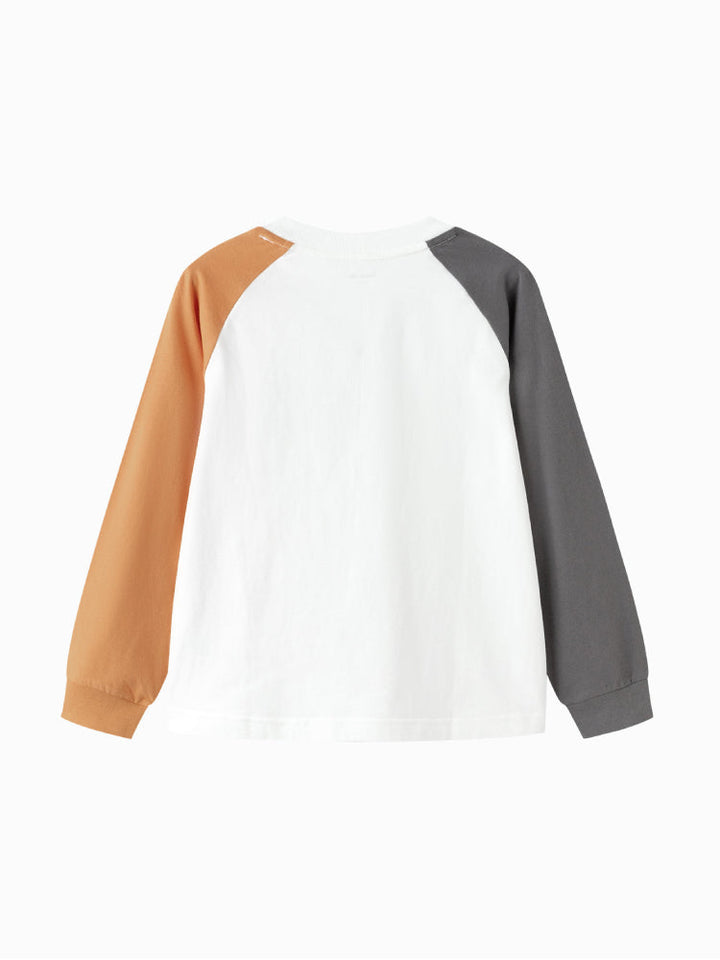 Lightweight long sleeve t-shirt featuring contrast sleeves and a chest print. The combination of textures and details gives it a sporty casual style.