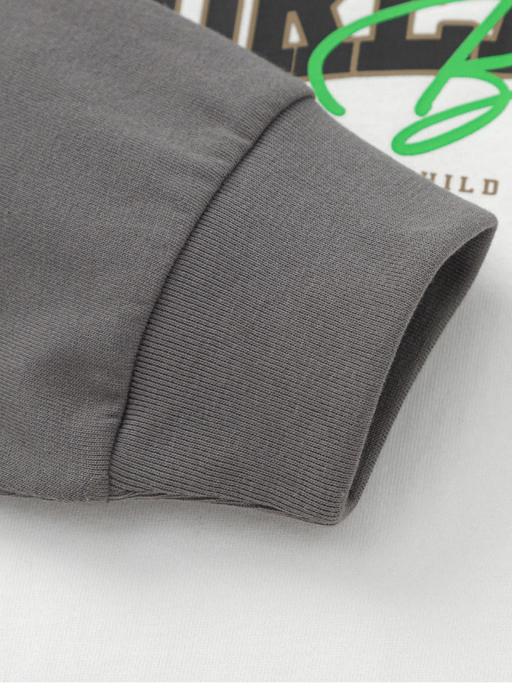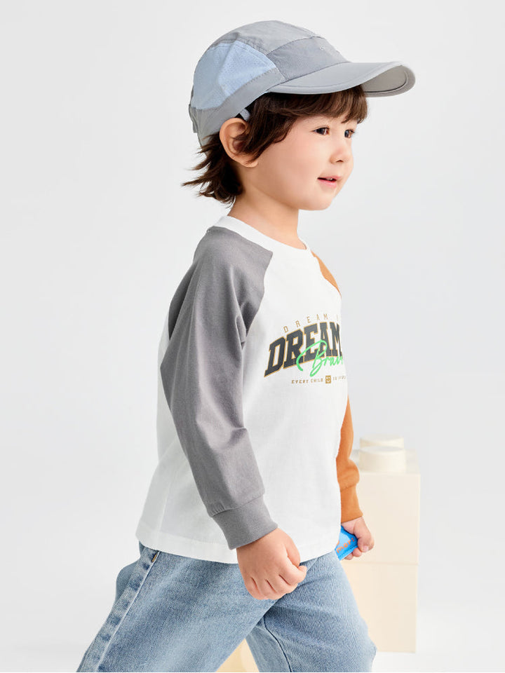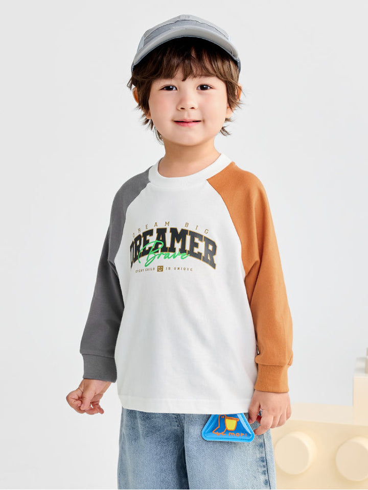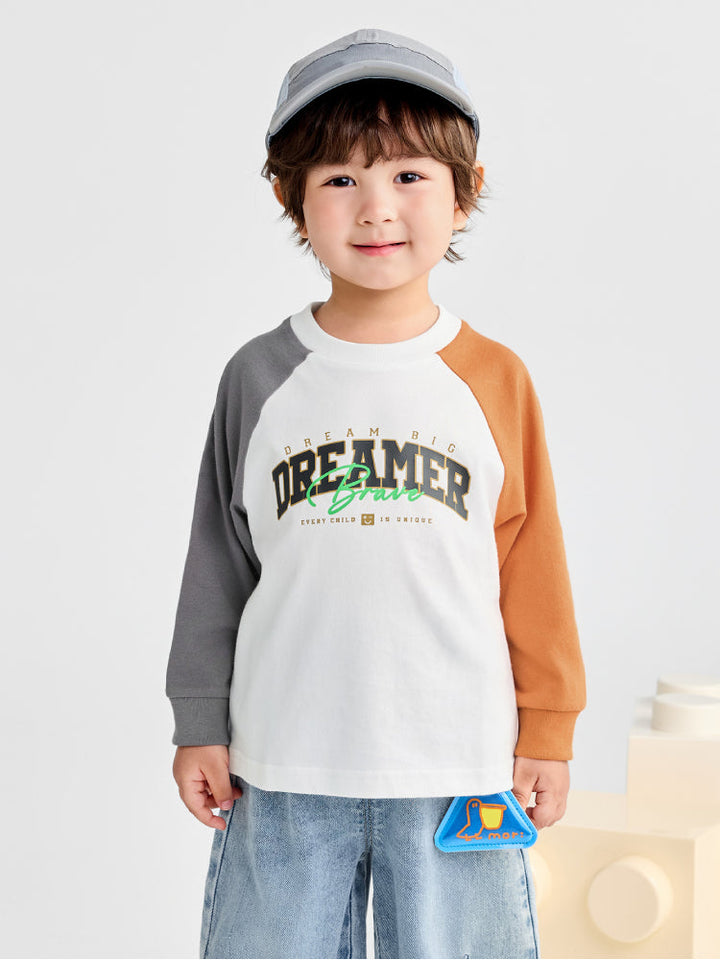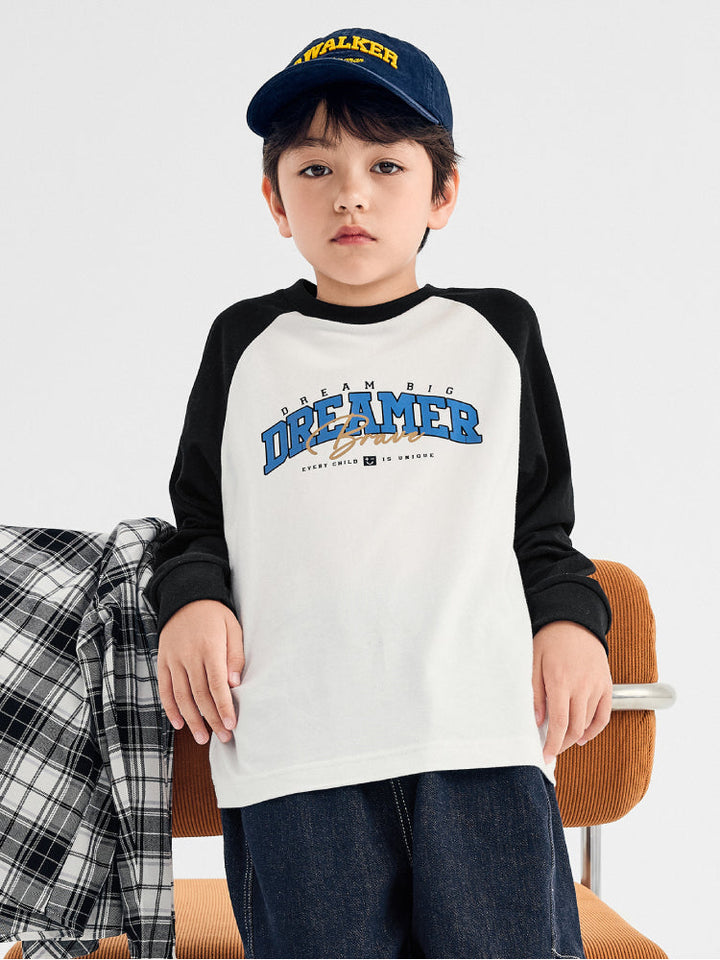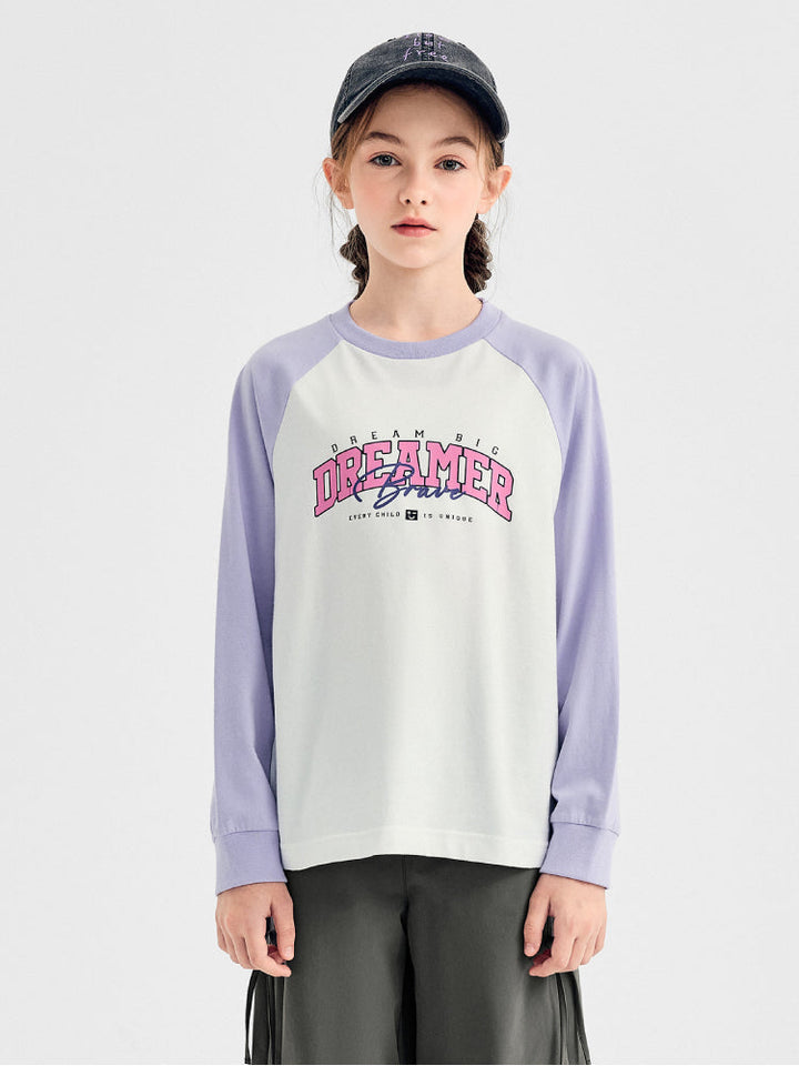 Lightweight long sleeve t-shirt featuring contrast sleeves and a chest print. The combination of textures and details gives it a sporty casual style.