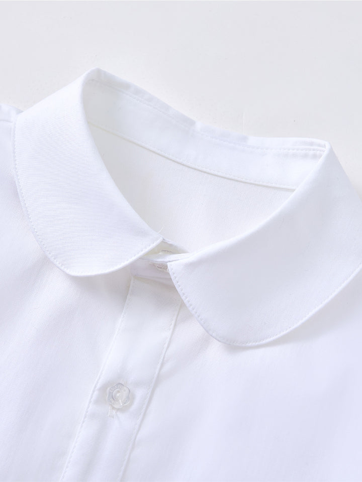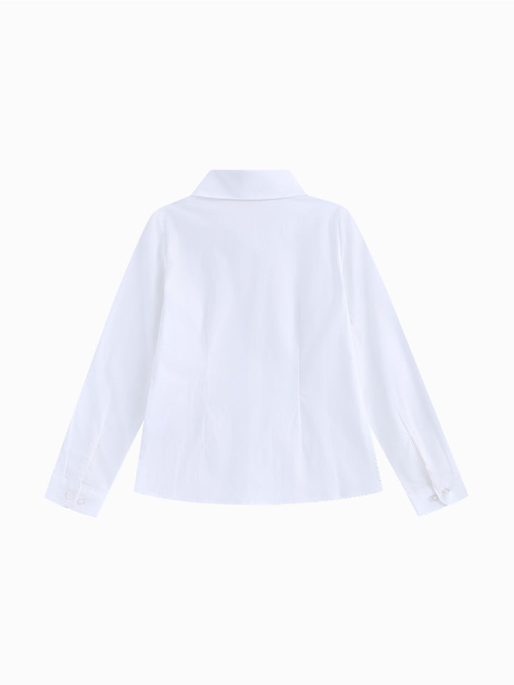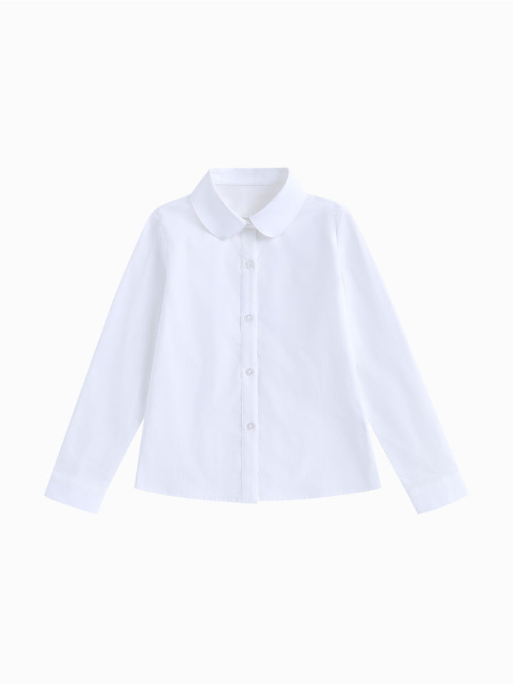Girls' Long Sleeve Solid Color Shirt - Front Button Closure With Classic Collar