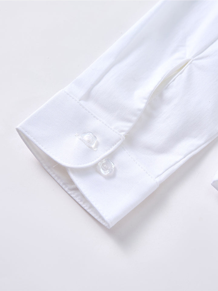 This long sleeve shirt features a solid color design, front buttons for easy closure, and a timeless classic collar. Perfect for both casual and formal occasions.