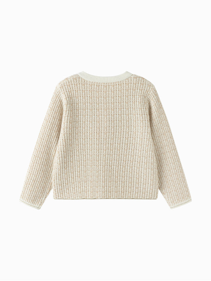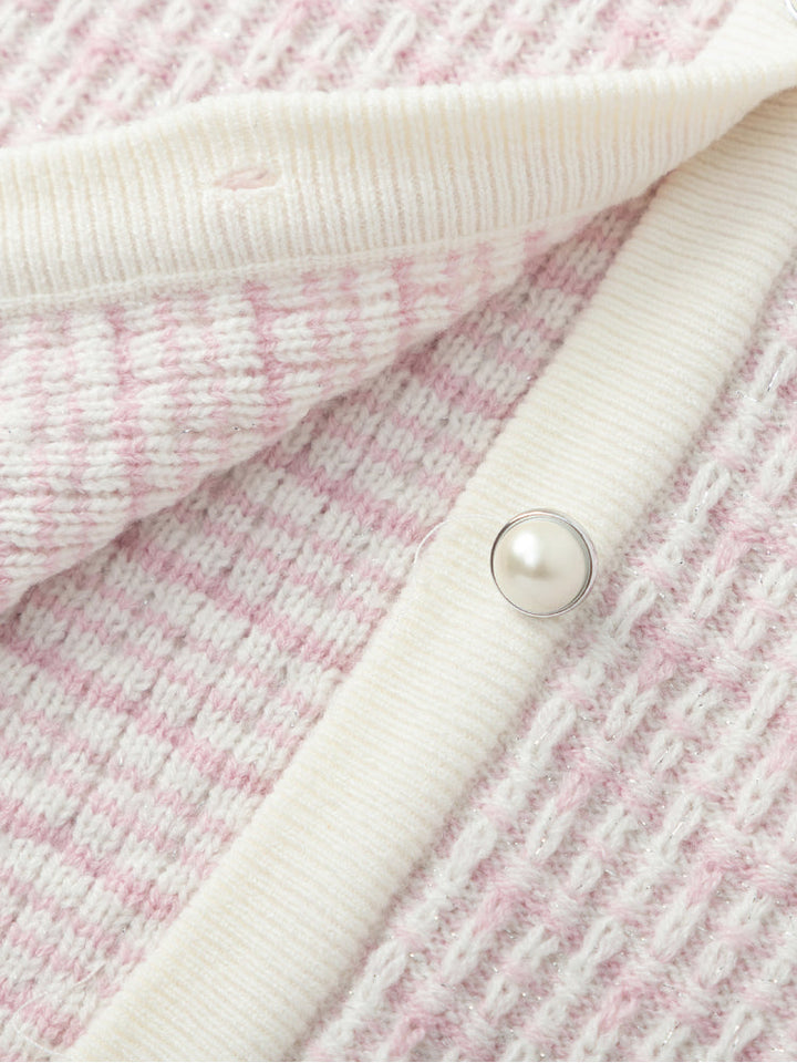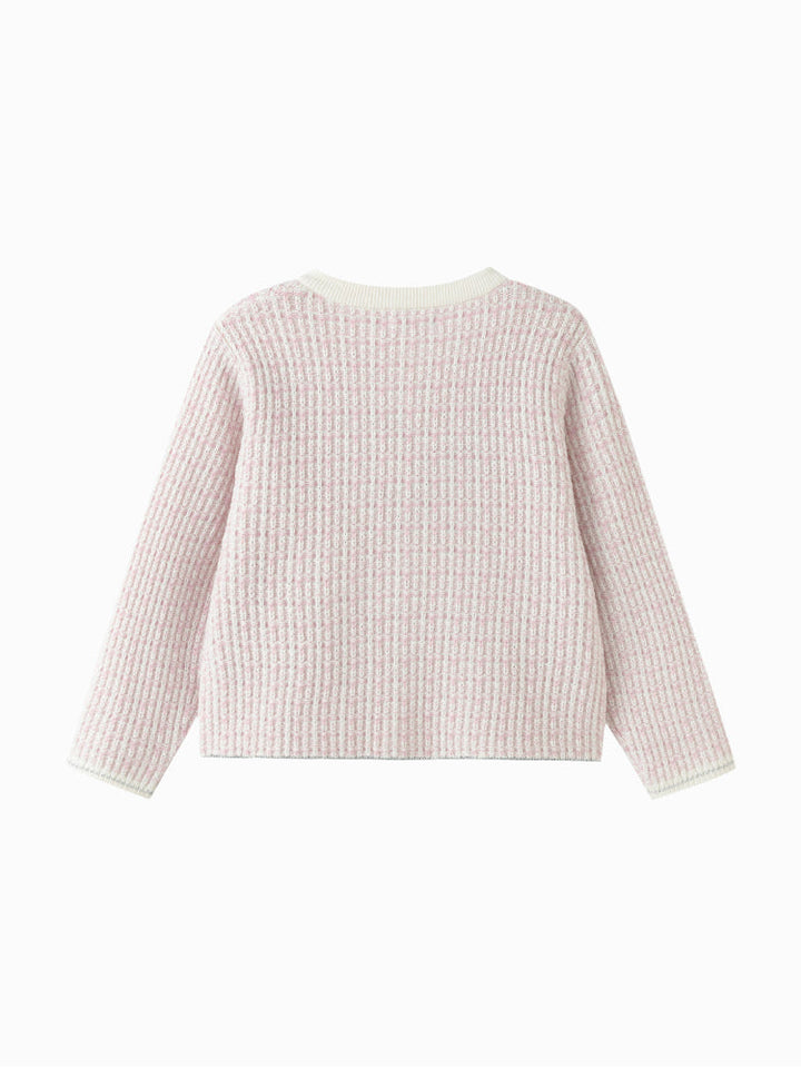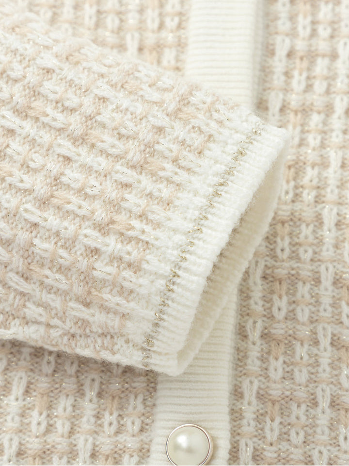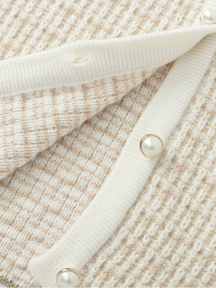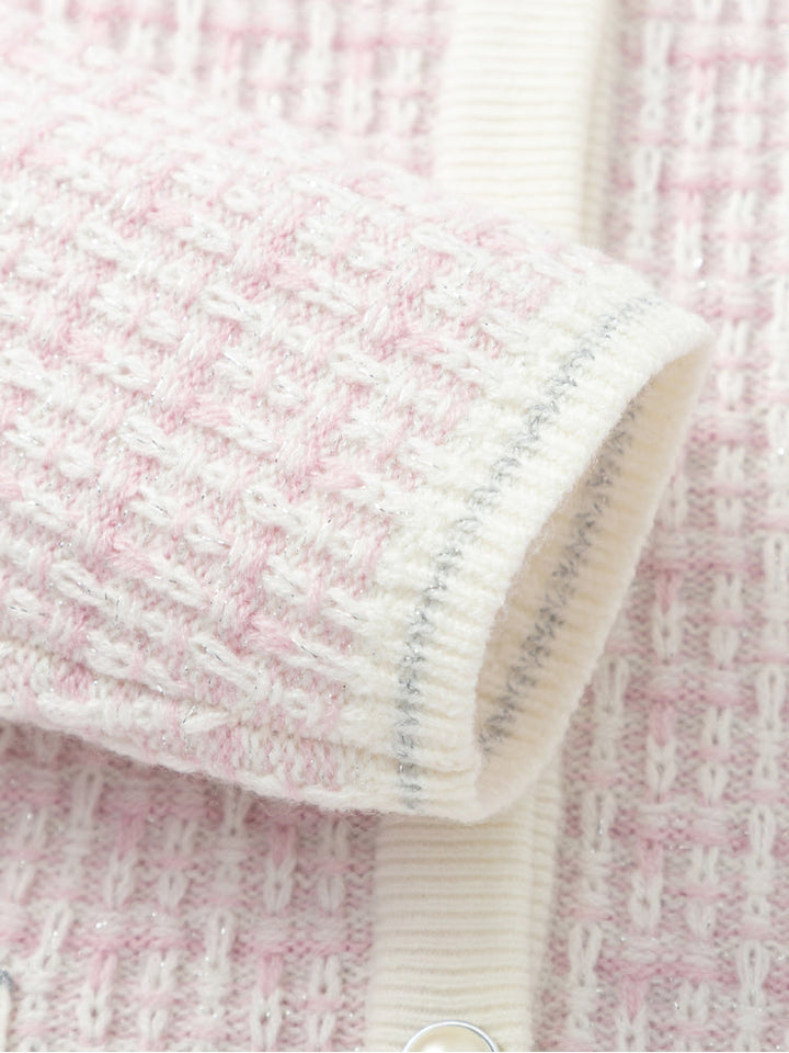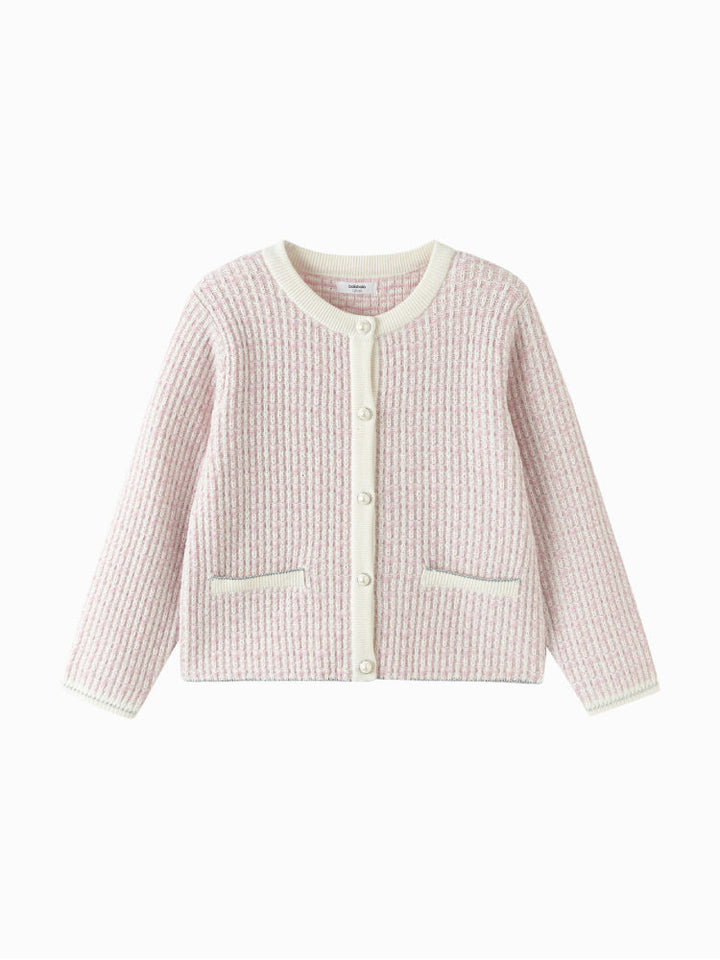 A soft knitted cardigan featuring a button-down front, long sleeves, and two front pockets, finished with ribbed trims for a neat look.