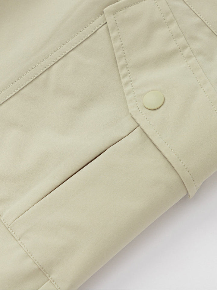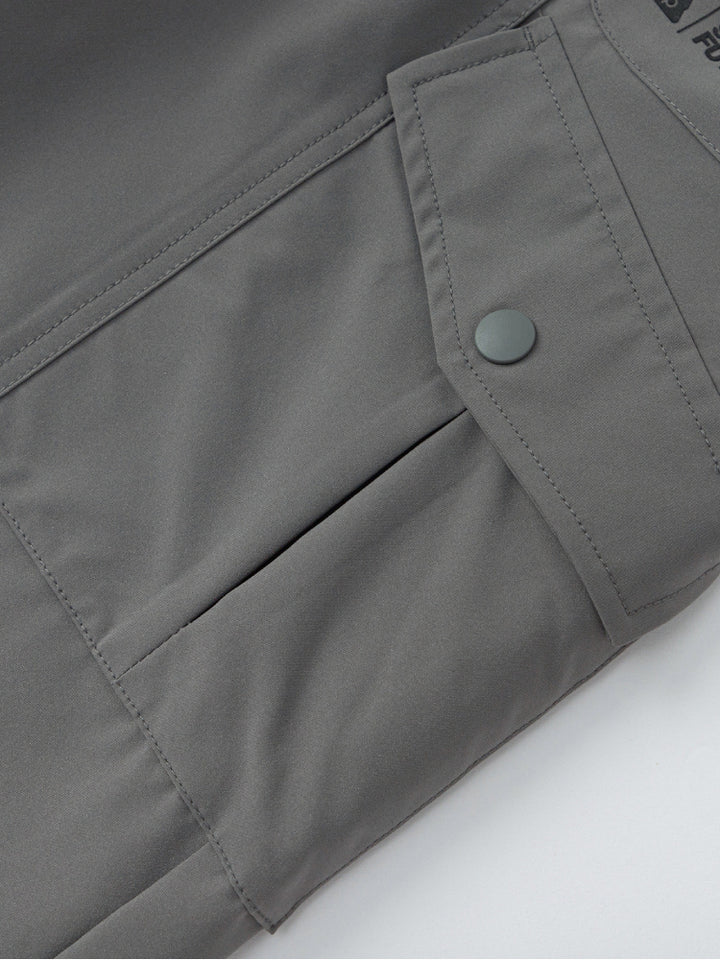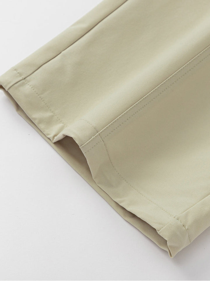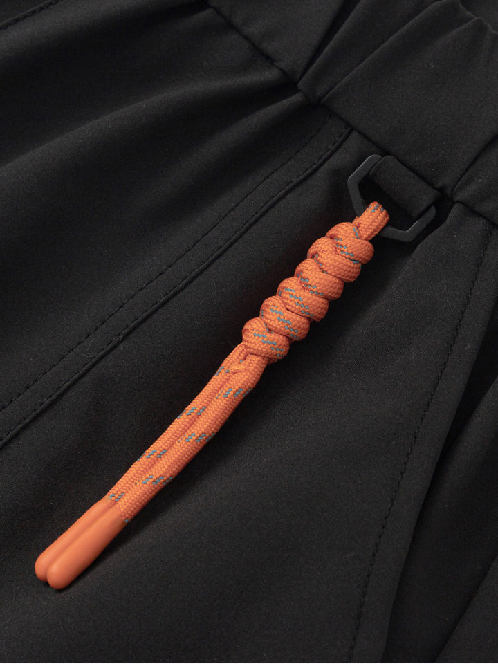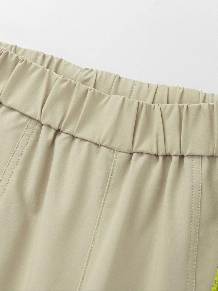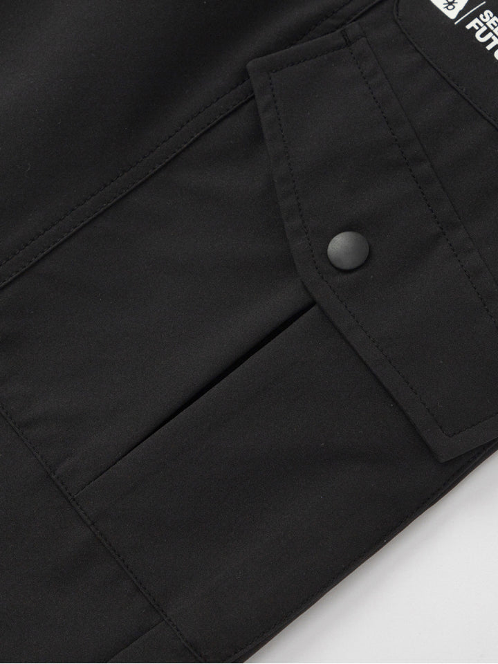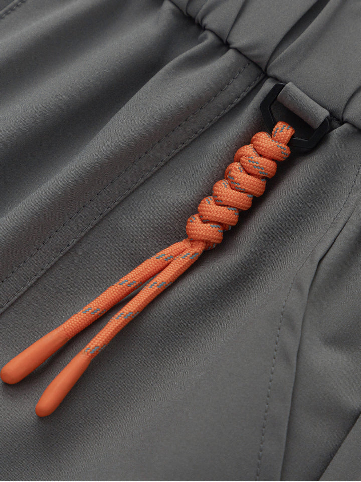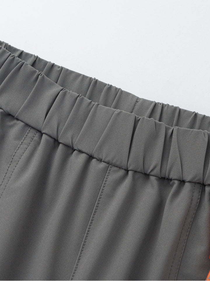 Relaxed-fit cargo pants with an elastic waistband, side pockets, and a large flap pocket on one leg for a functional, adventurous style.