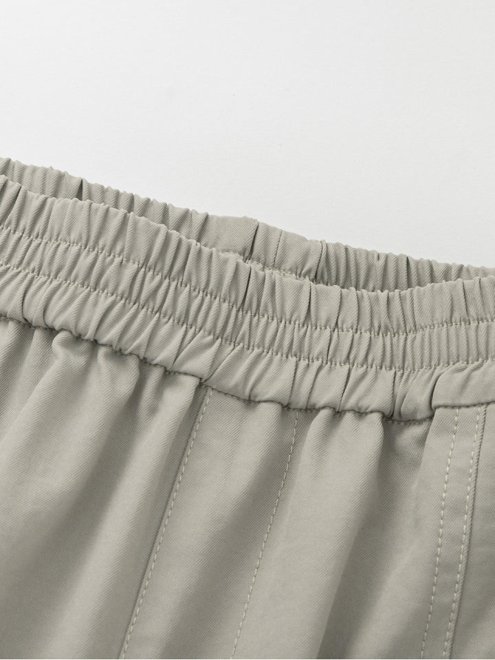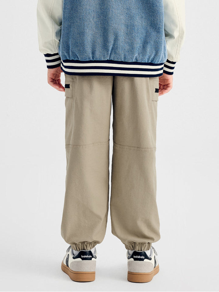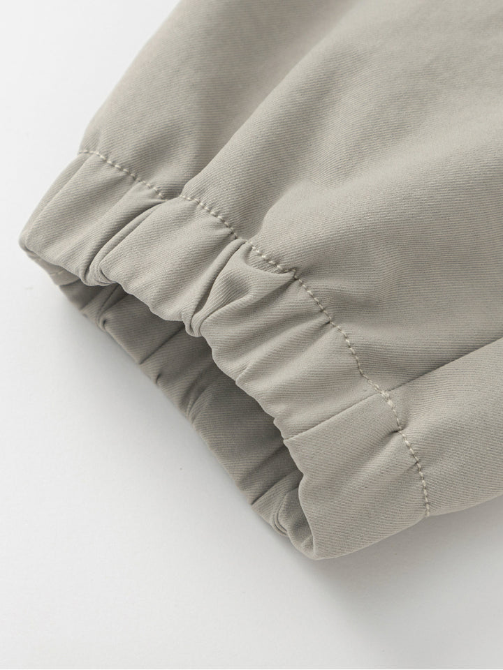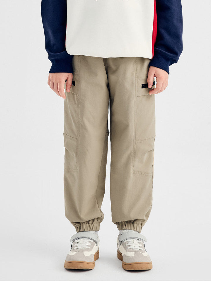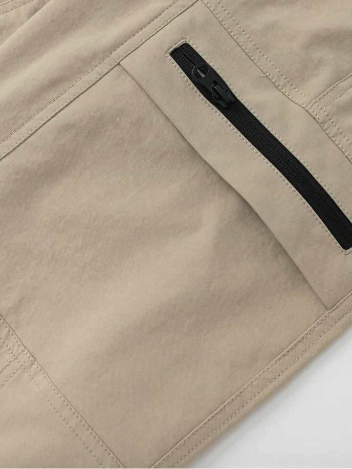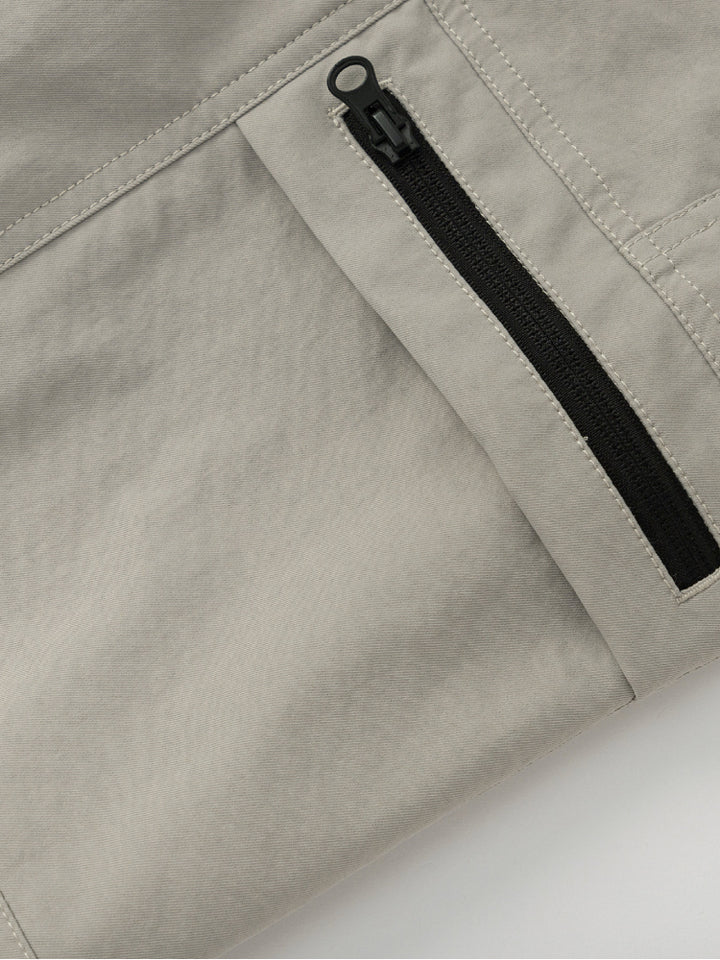 Functional jogger cargo pants with an elastic waist, side pockets, and zippered pockets on the legs for secure storage.