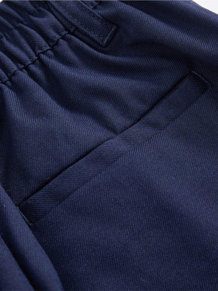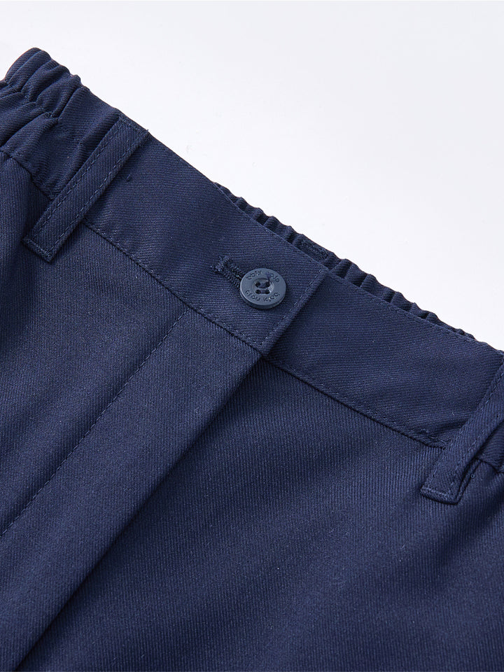 These casual pants feature a classic regular cut in a solid color, designed with practical front and back pockets. The waist is secured with a button and zipper closure, offering both style and functionality for everyday wear.