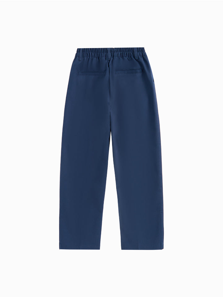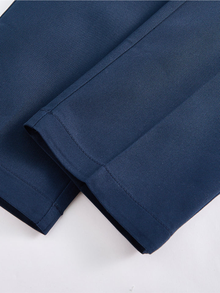 These casual pants feature a classic regular cut in a solid color, designed with practical front and back pockets. The waist is secured with a button and zipper closure, offering both style and functionality for everyday wear.
