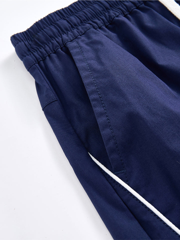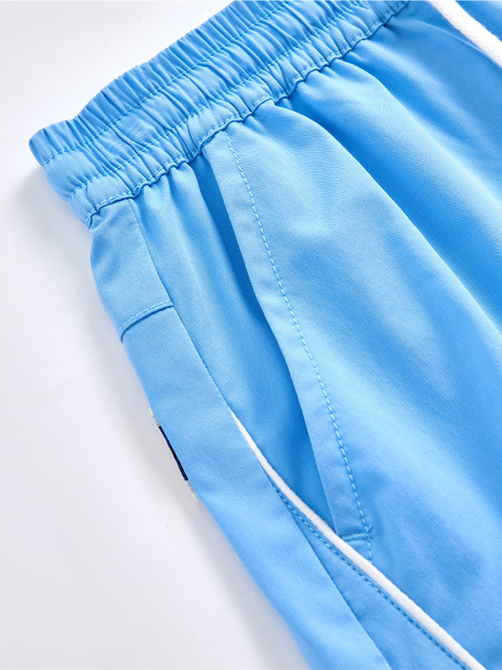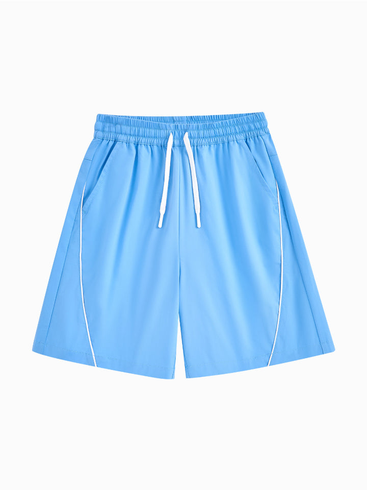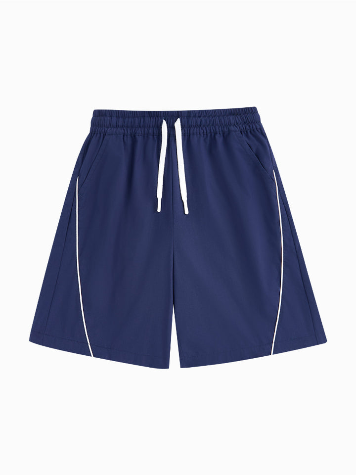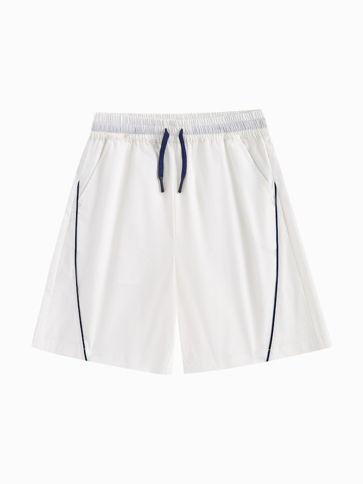These casual shorts feature subtle contrast color line details on the front, combined with practical pockets. The elastic waistband and adjustable drawstring ensure a comfortable, secure fit-perfect for everyday casual wear.