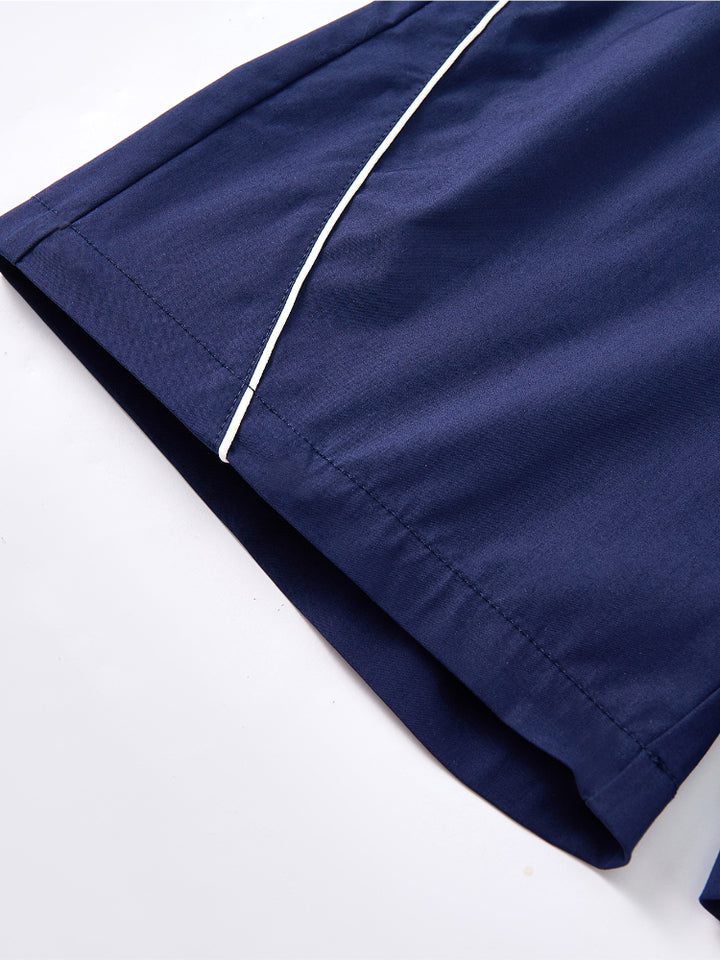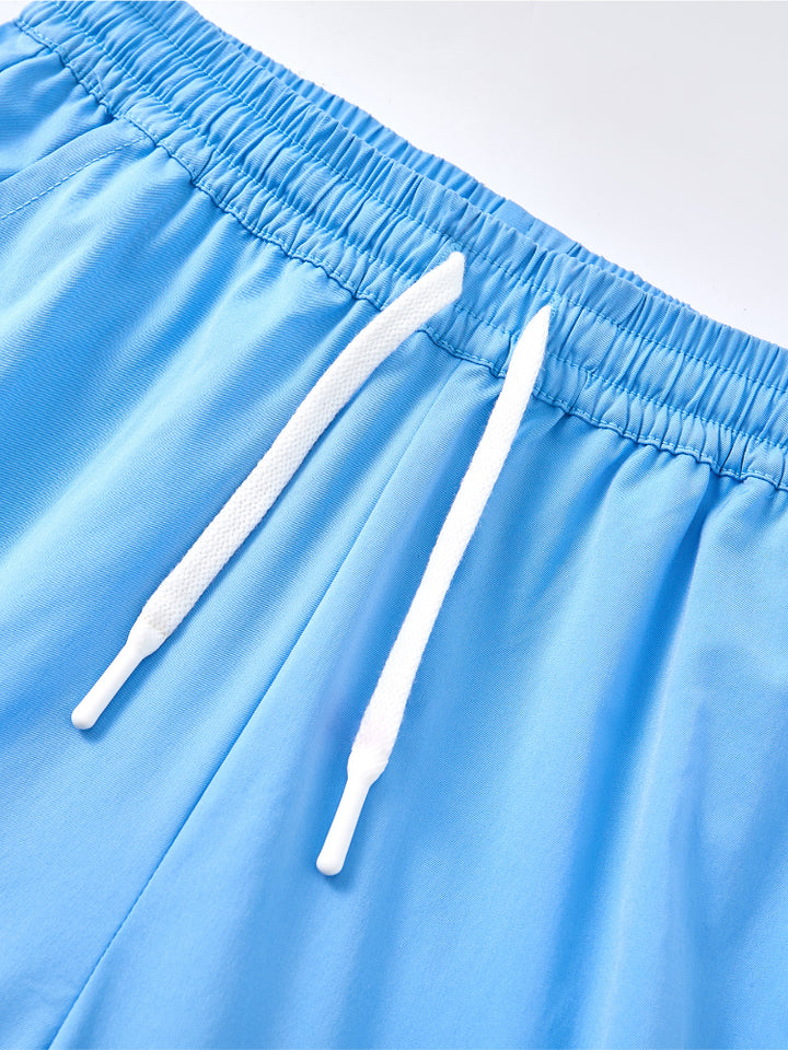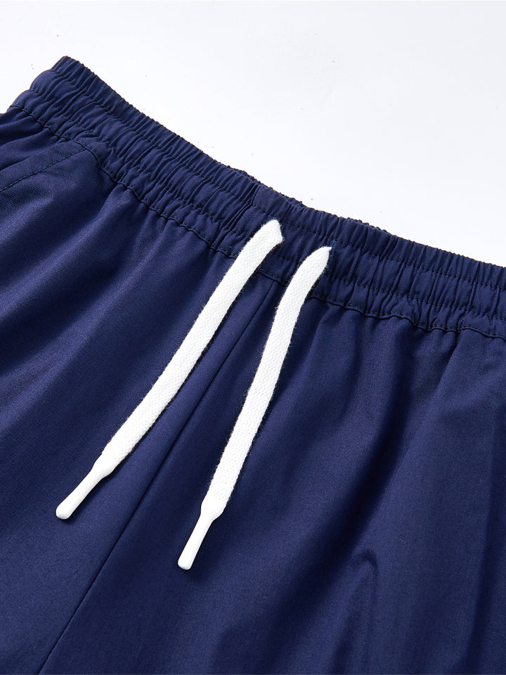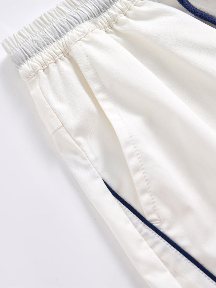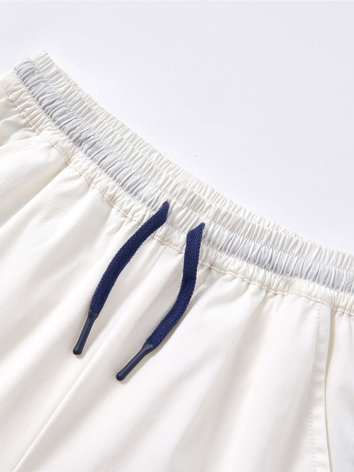 These casual shorts feature subtle contrast color line details on the front, combined with practical pockets. The elastic waistband and adjustable drawstring ensure a comfortable, secure fit-perfect for everyday casual wear.