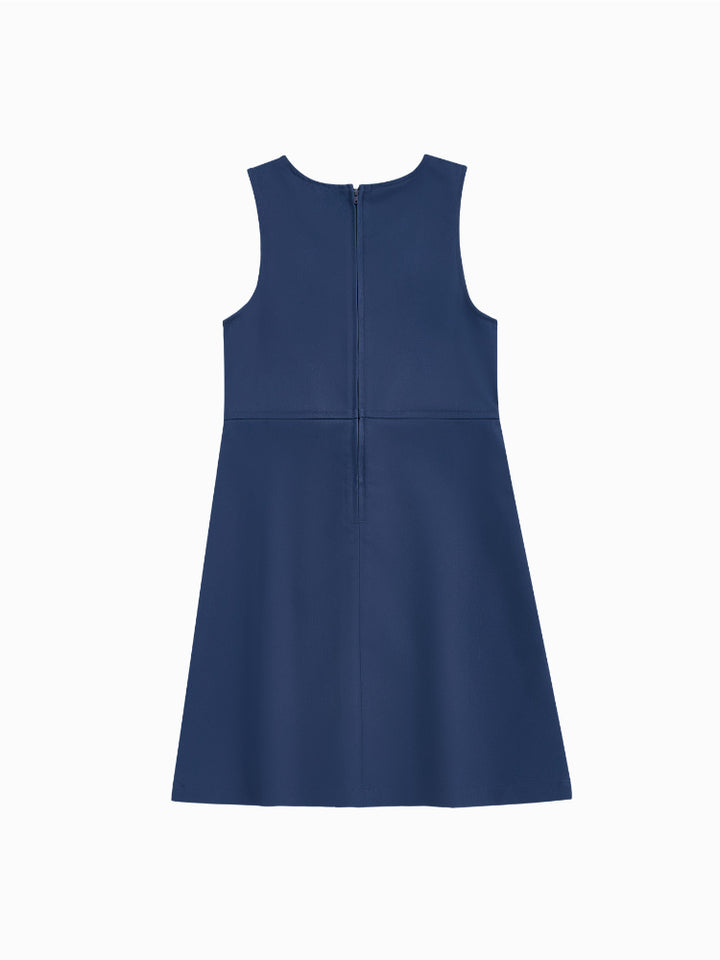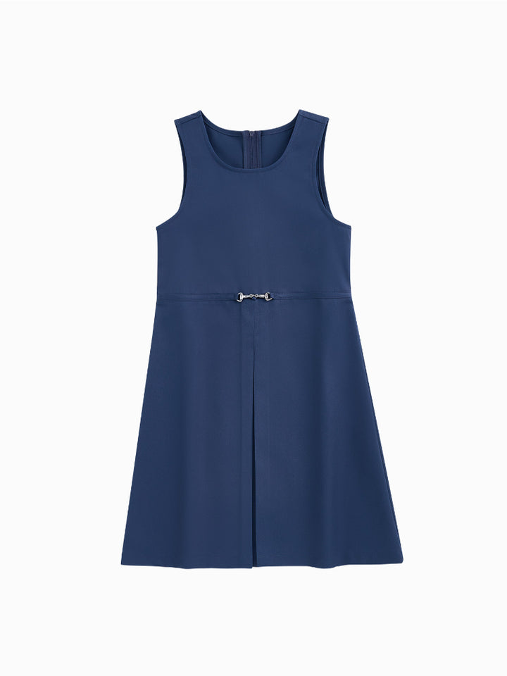 Girls' Sleeveless Dress - Solid Color With Metal Buckle Detail And Back Zipper