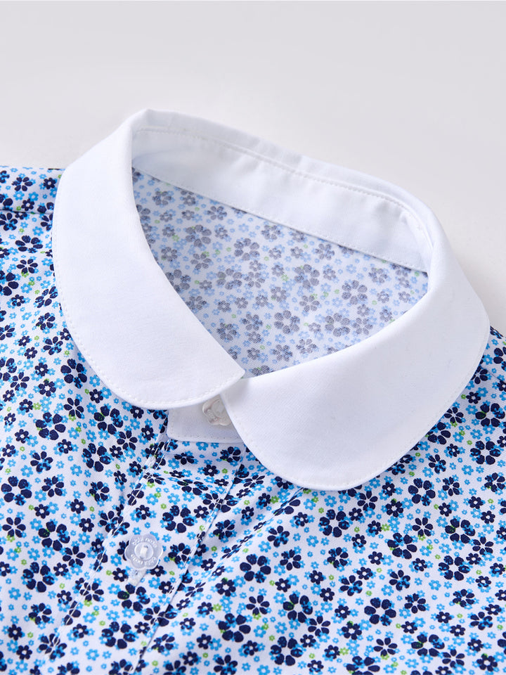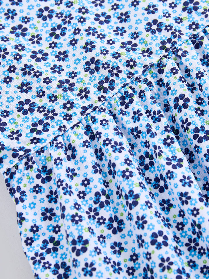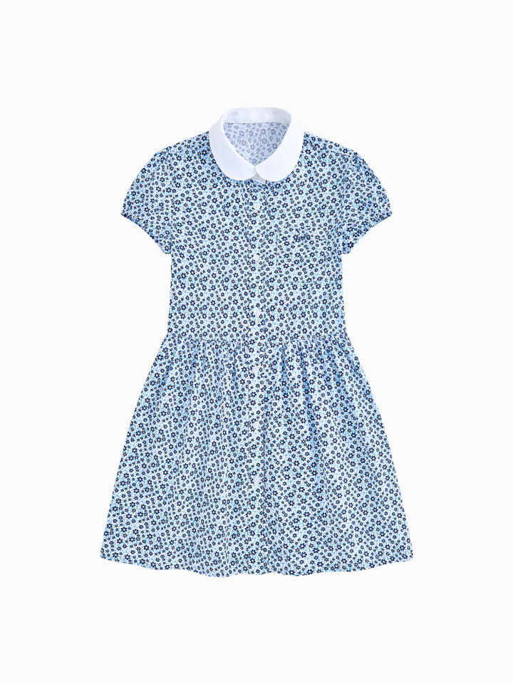 Girls' Short Sleeve Shirt Dress - Floral Print Pattern With Front Button Closure