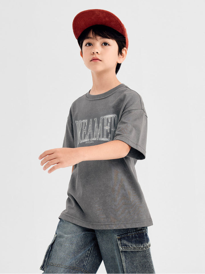 Boys' Graphic Cotton T-Shirt With Crew Neck