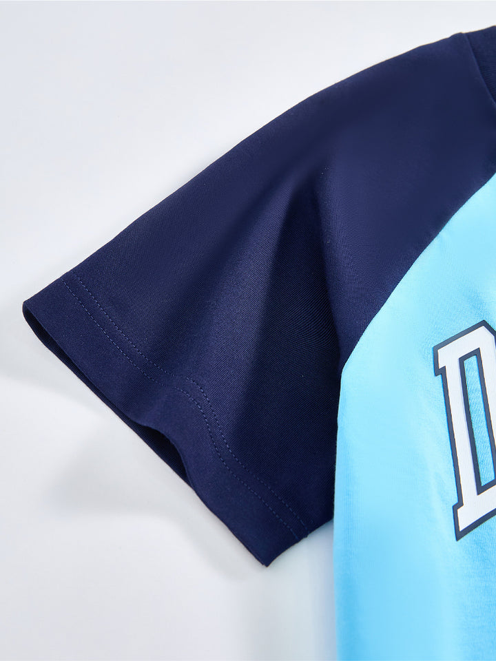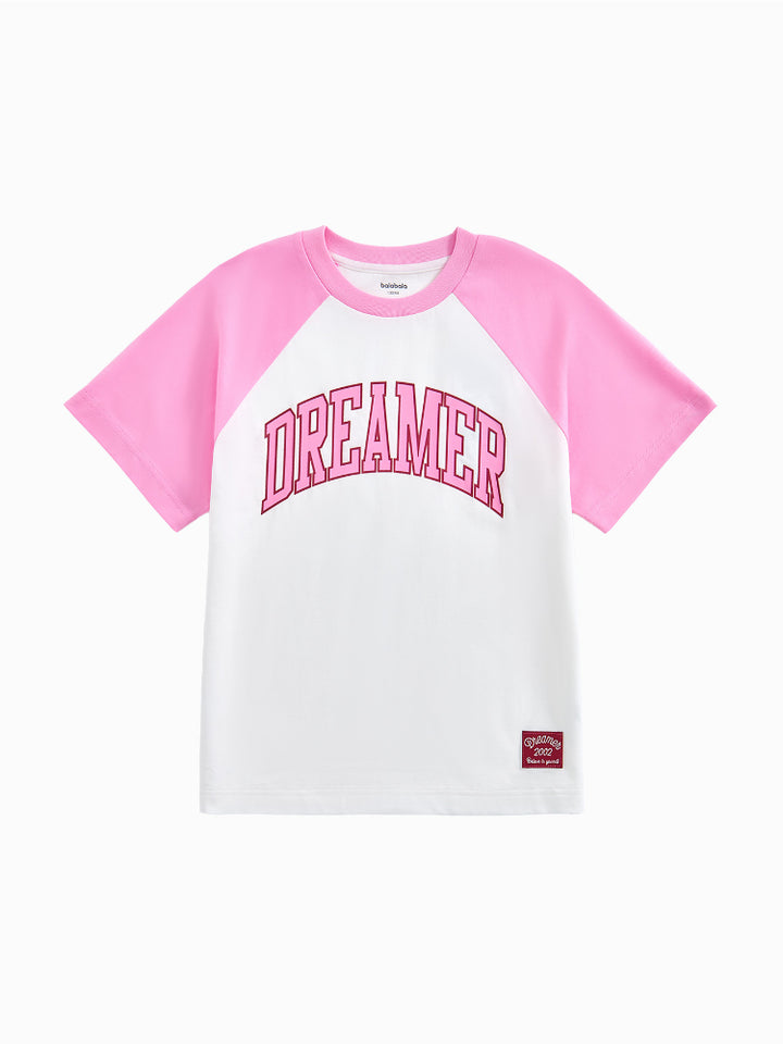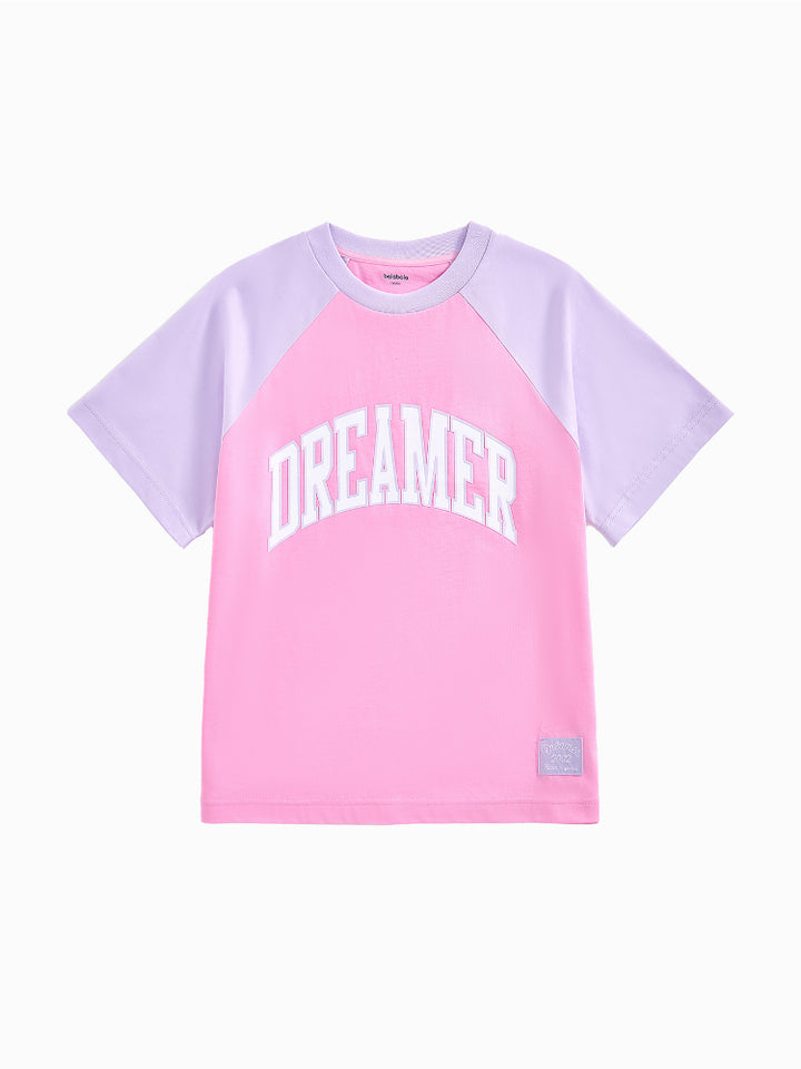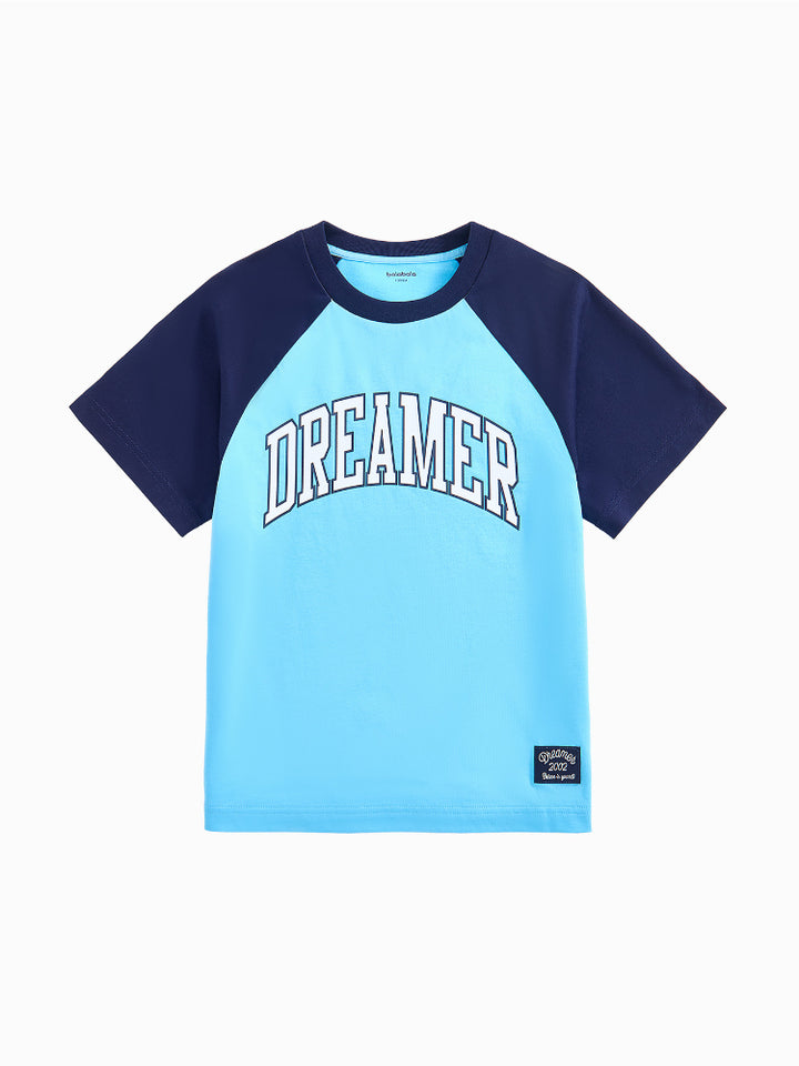 This casual short sleeve t-shirt features contrast colored sleeves and a bold front print, paired with a comfortable crew neck for everyday style.