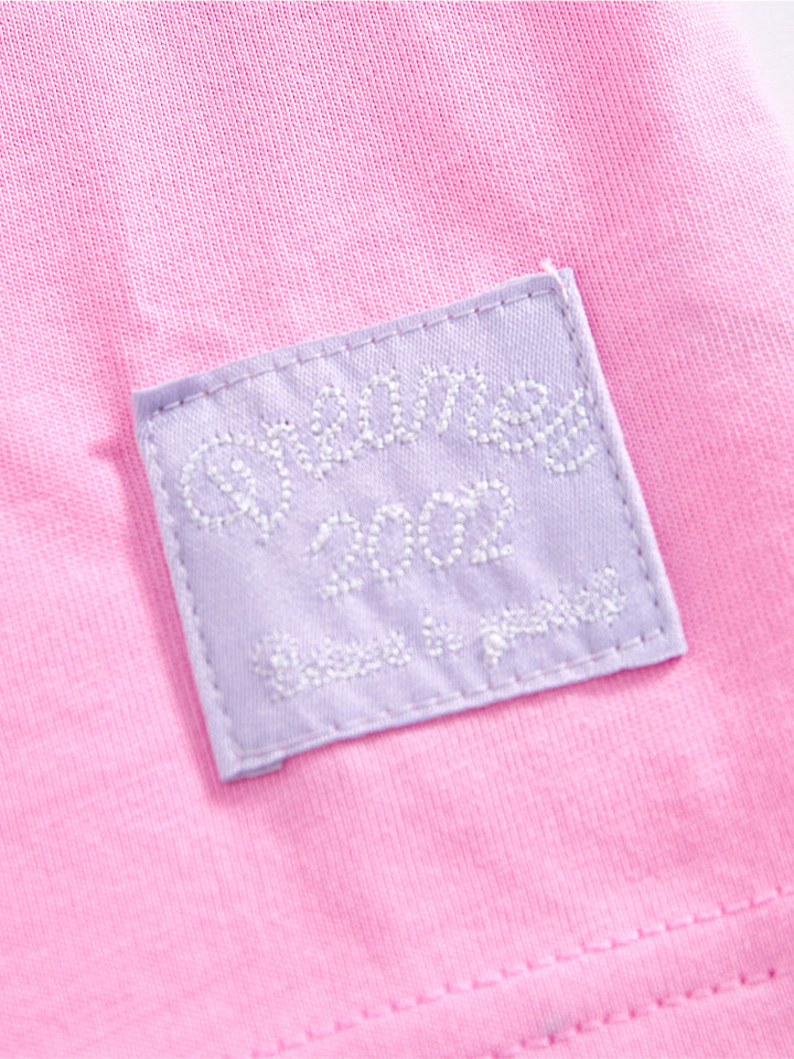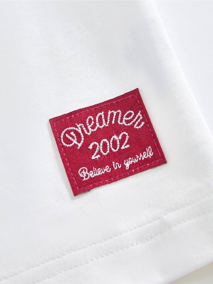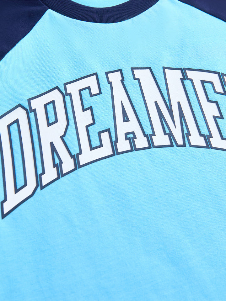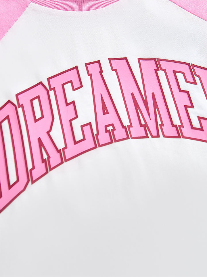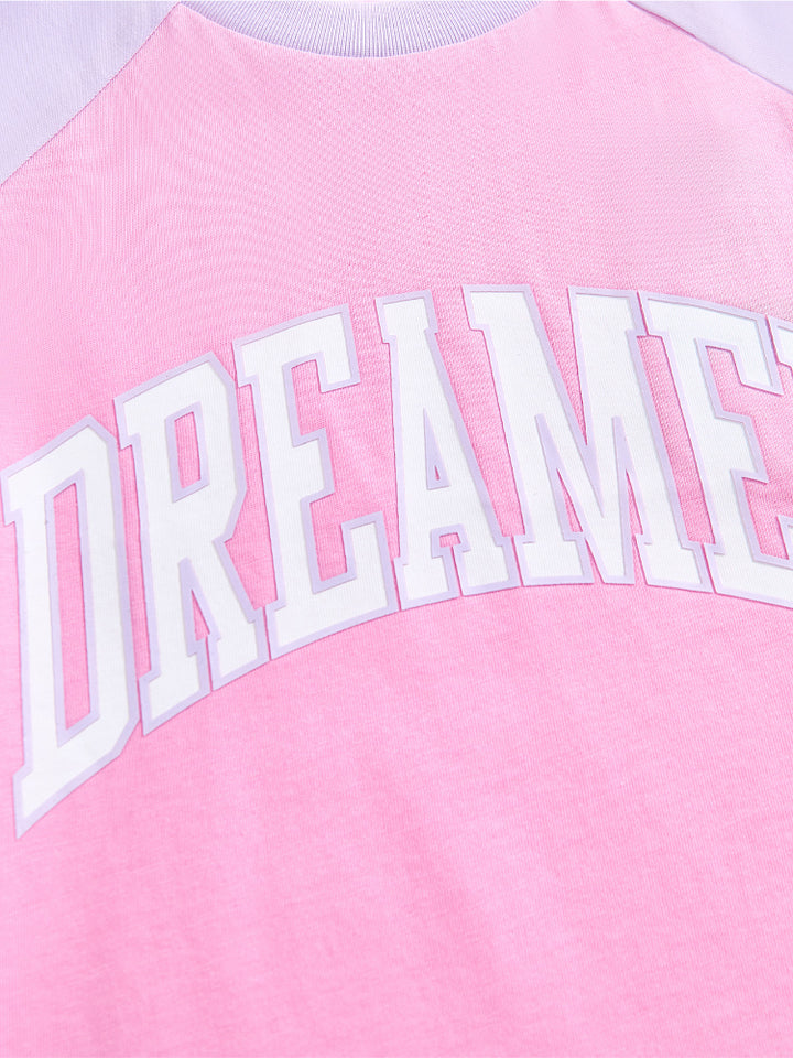 This casual short sleeve t-shirt features contrast colored sleeves and a bold front print, paired with a comfortable crew neck for everyday style.