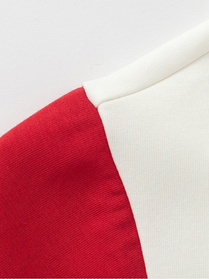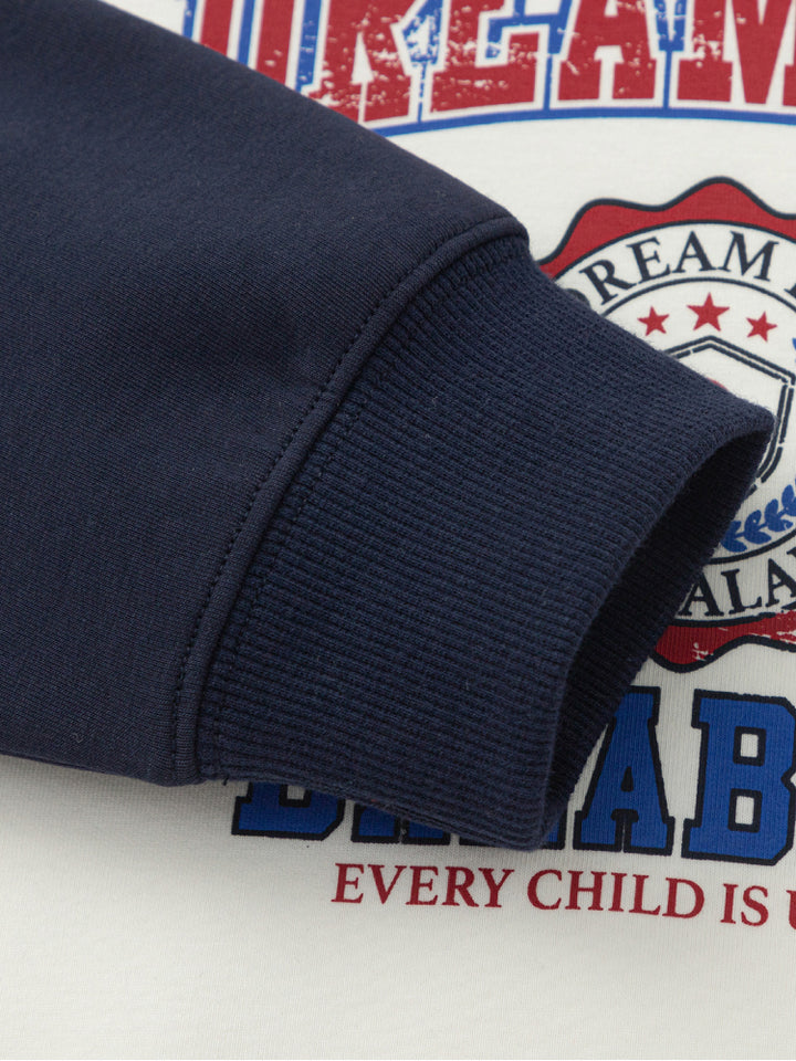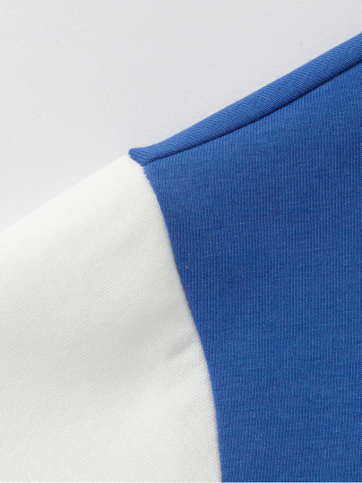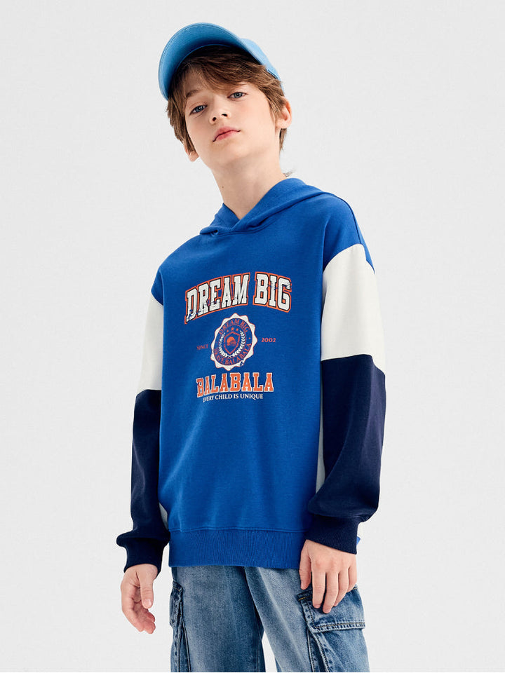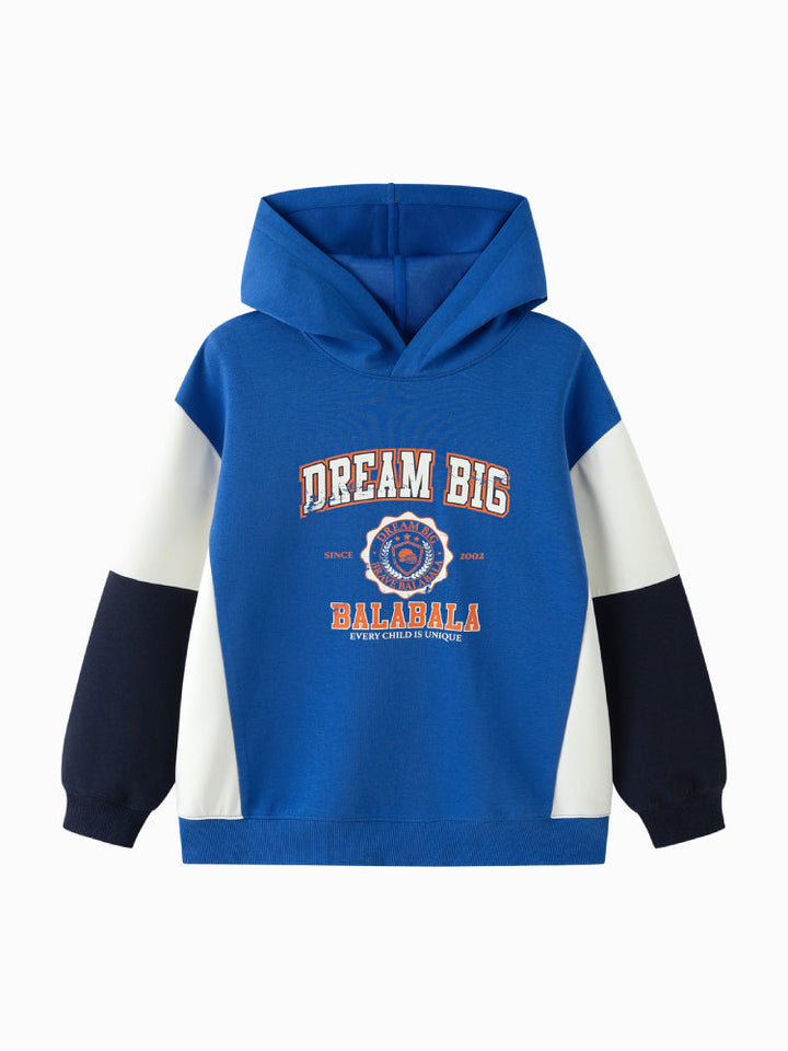 Hoodie with a modern colorblock design, front graphic, and ribbed cuffs and hem, offering a stylish blend of comfort and streetwear appeal.
