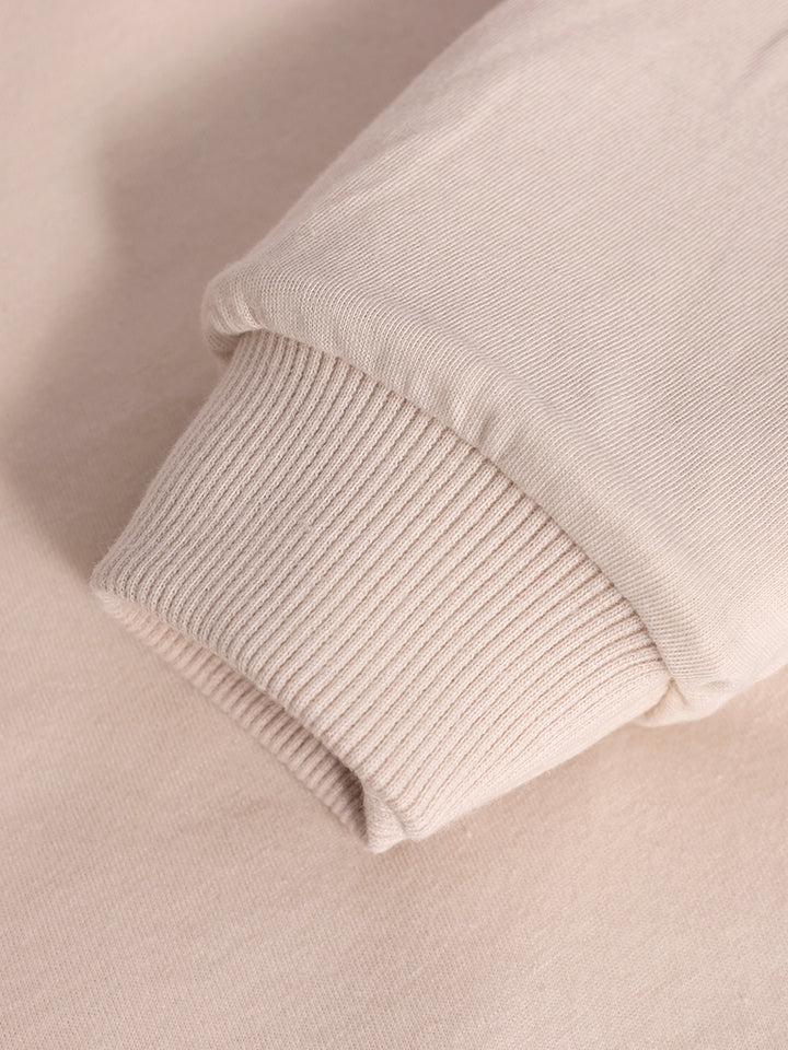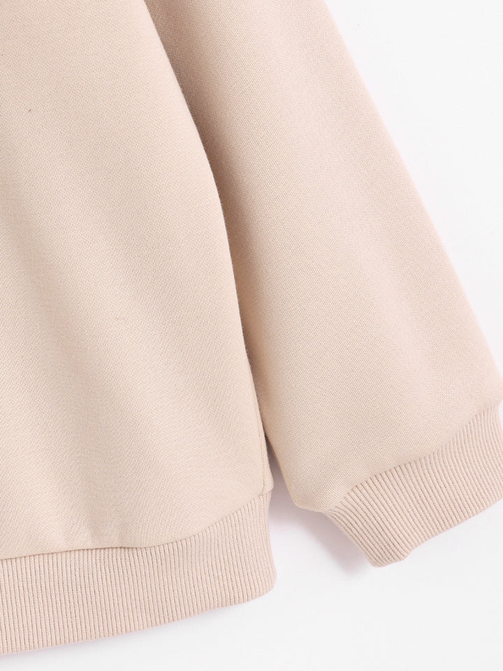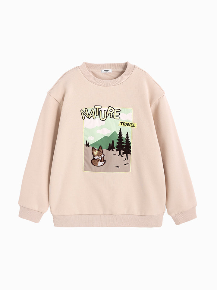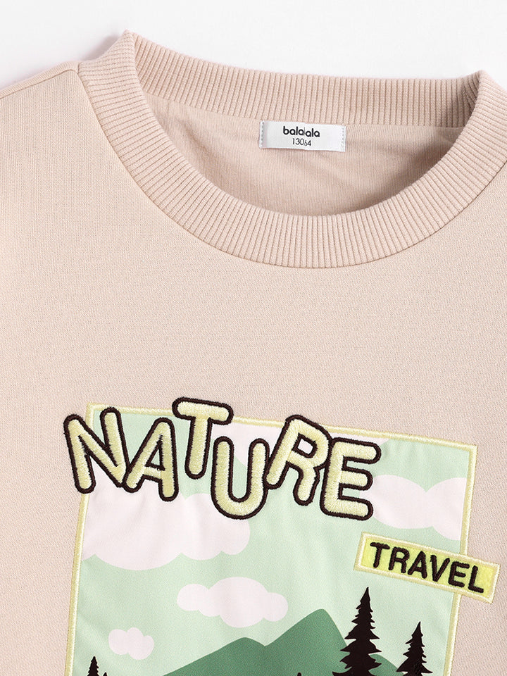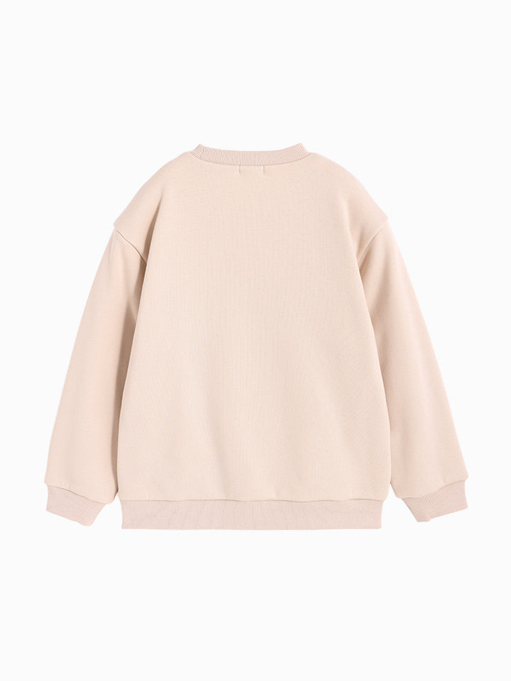 long sleeves girl sweatshirt, decorated with an embroidery print on the front side, comes with a rounded shape neckline