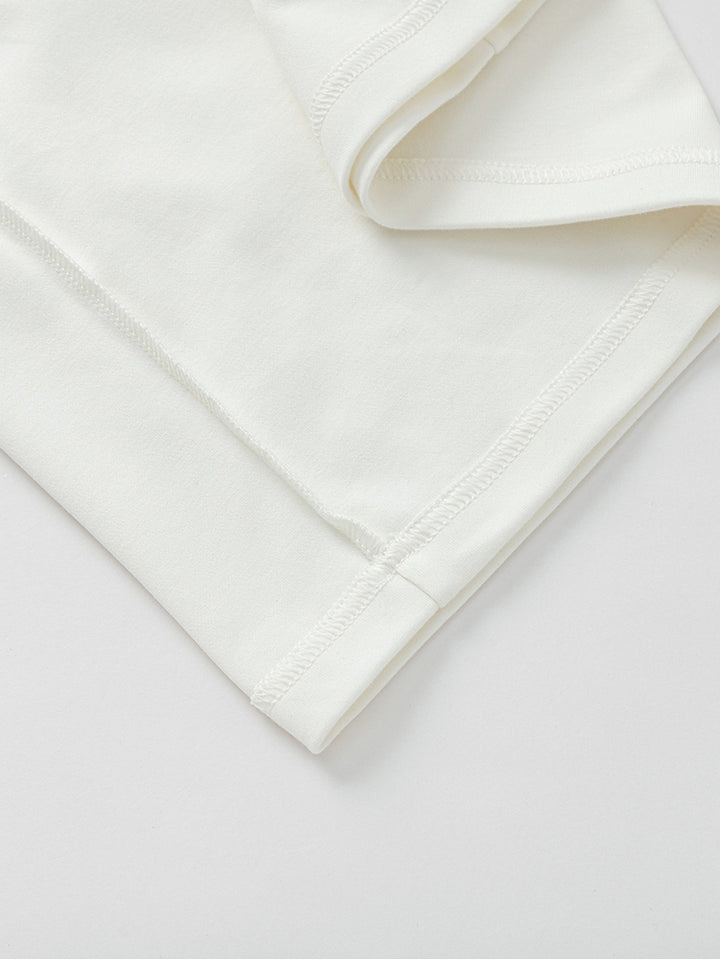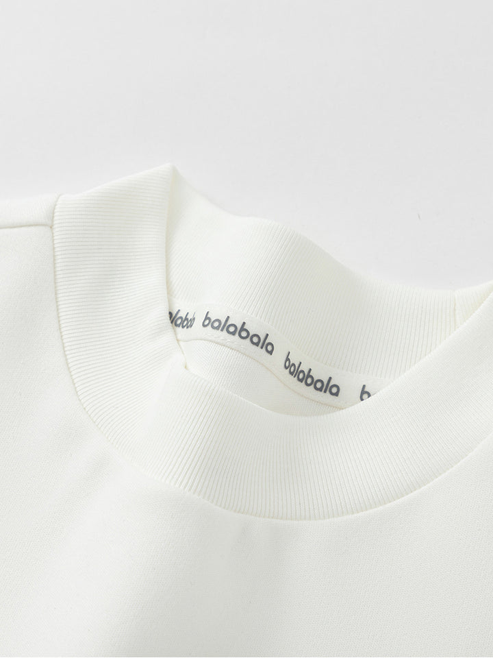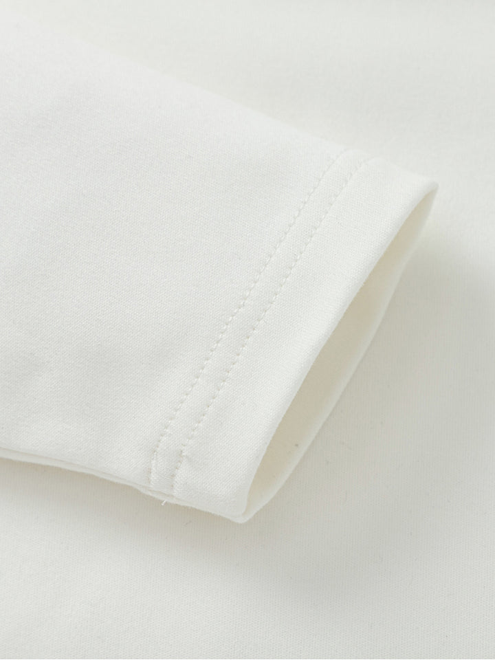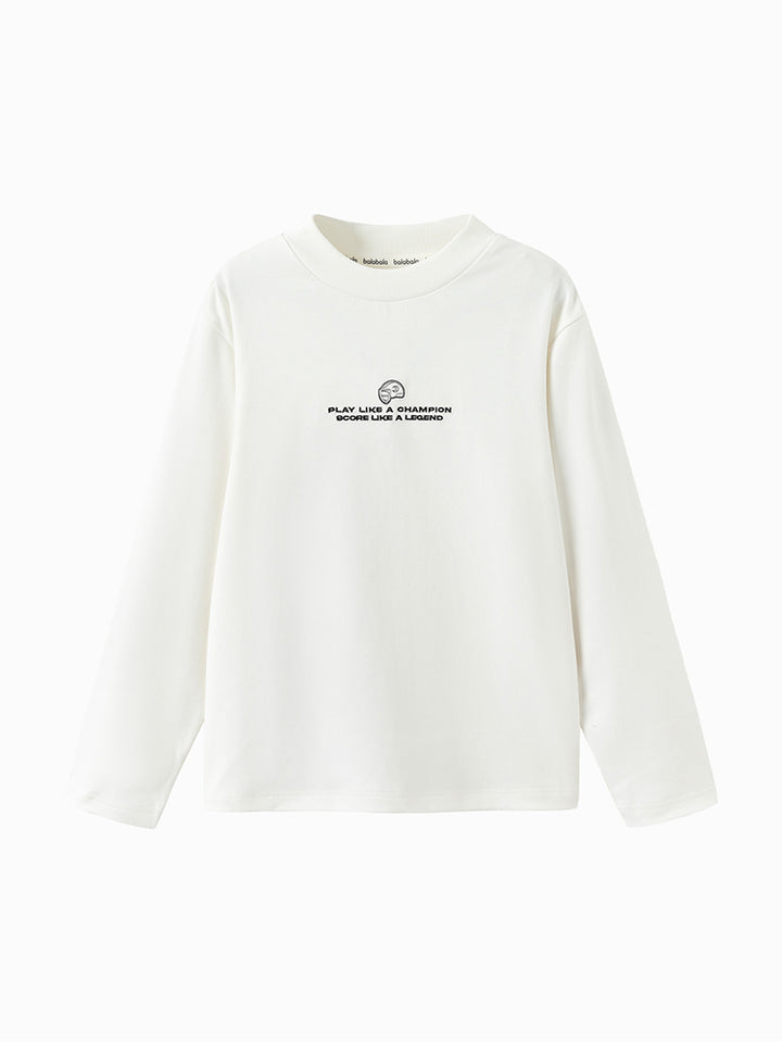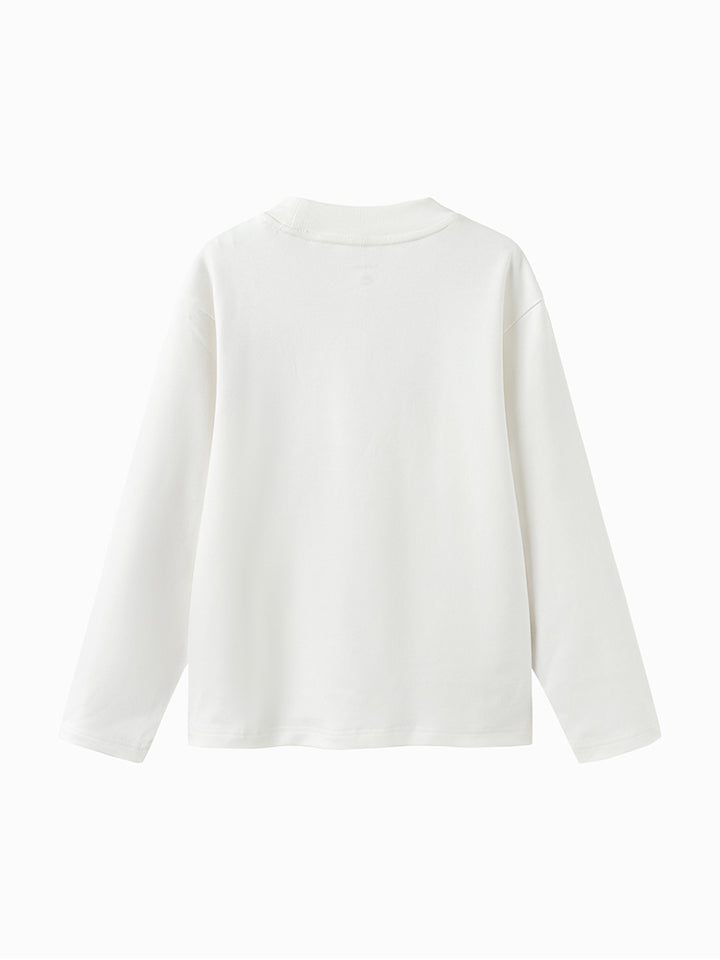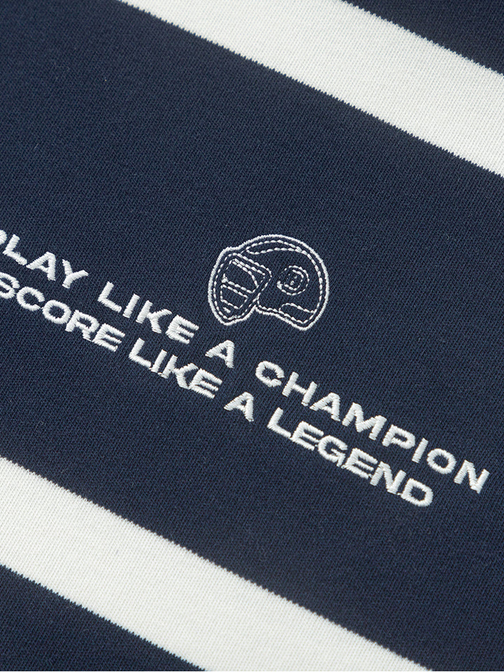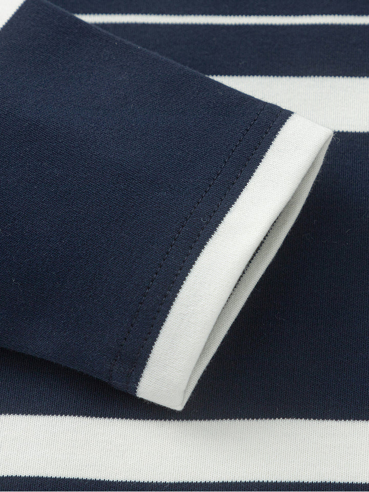 long sleeves casual t-shirt, decorated with a contrast colored striped pattern and embroidery on the front side, comes with a rounde shape neckline
