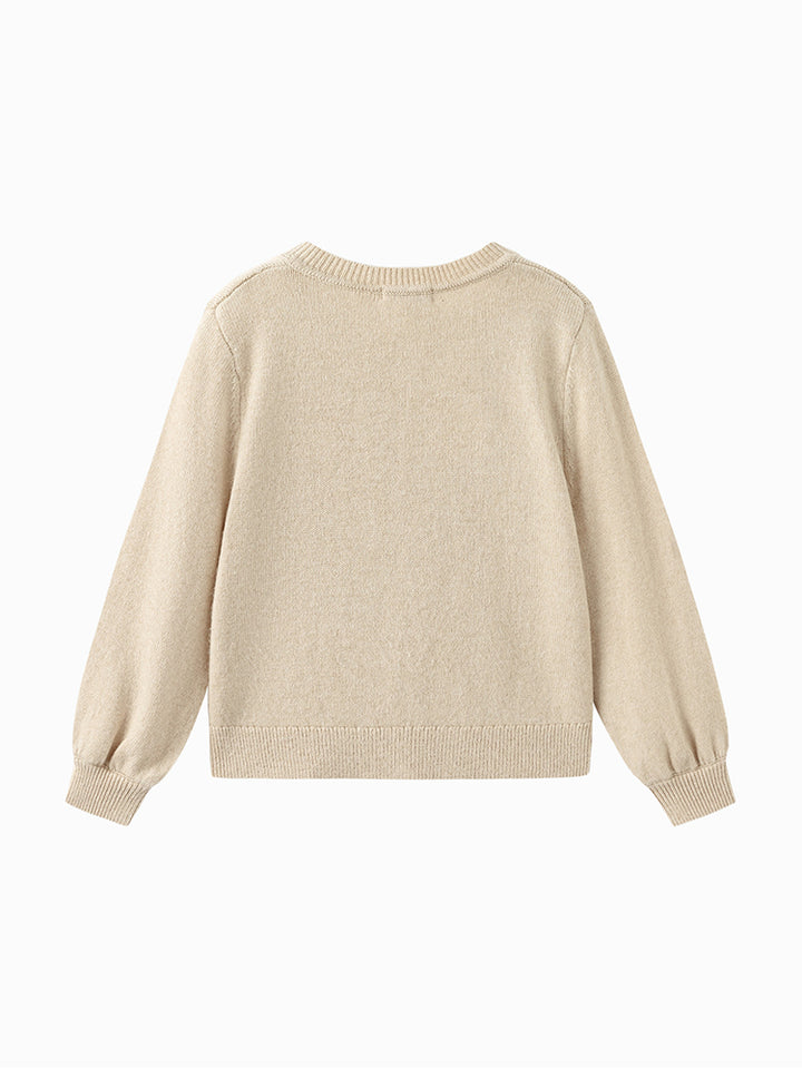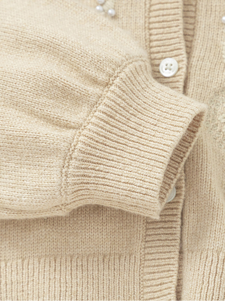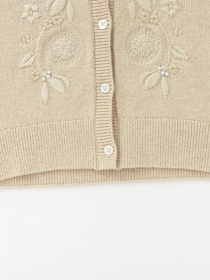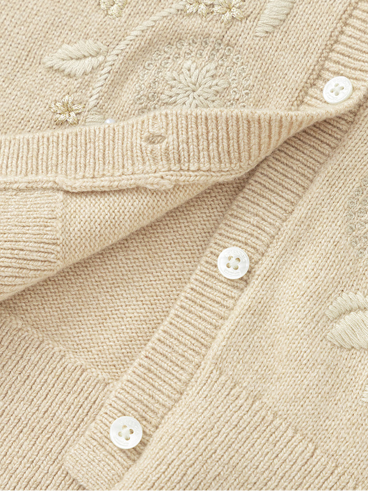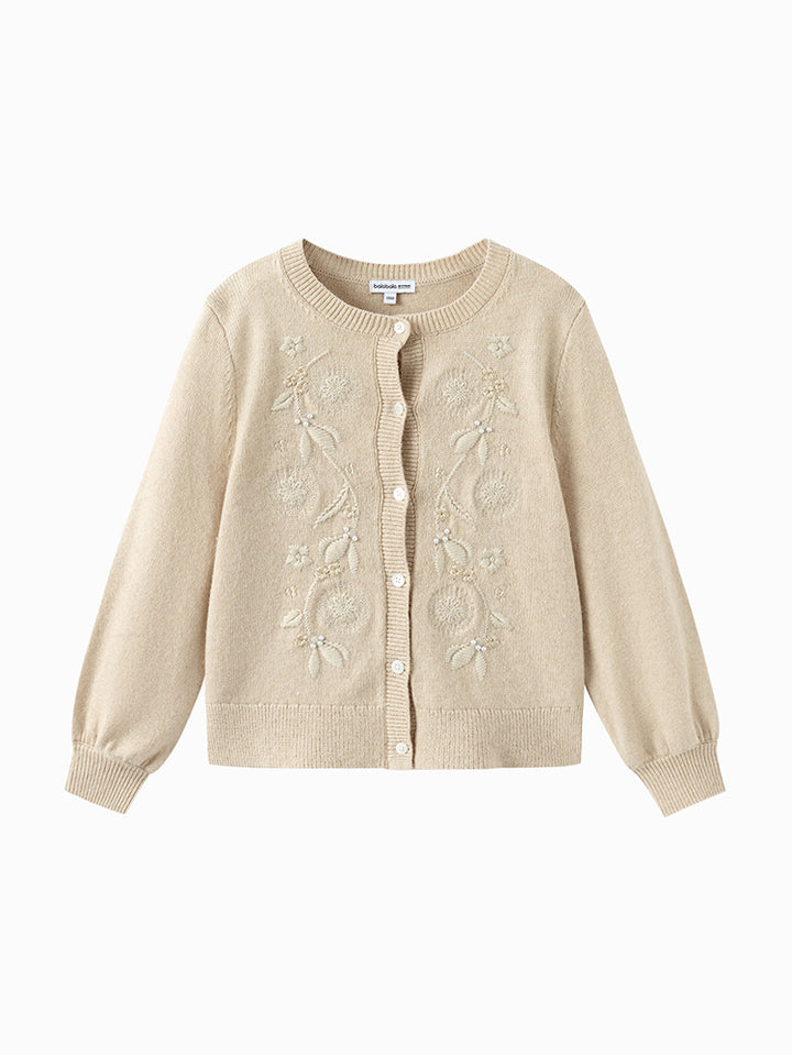 Girls' Knitted Cardigan With Tone On Tone Embroidery