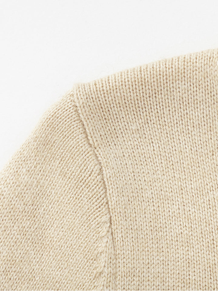 long sleeves knitted cardigan, decorated with a tone on tone embroidery on the front side. comes with front buttons and a rounded neckline