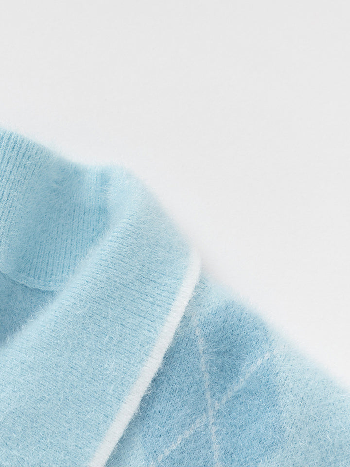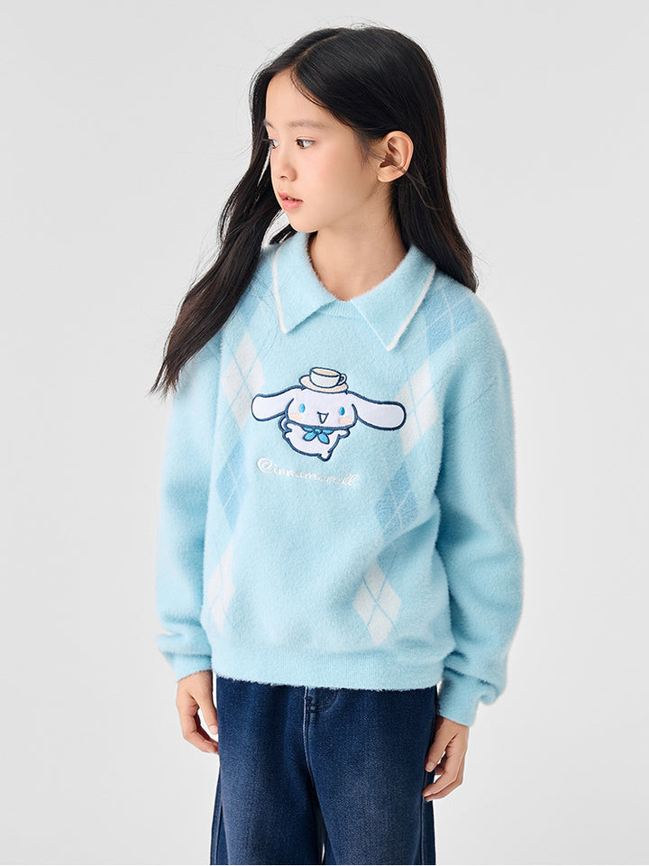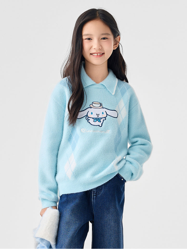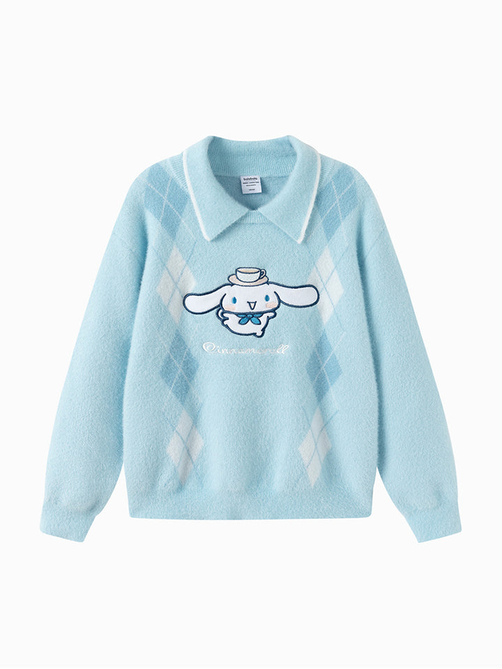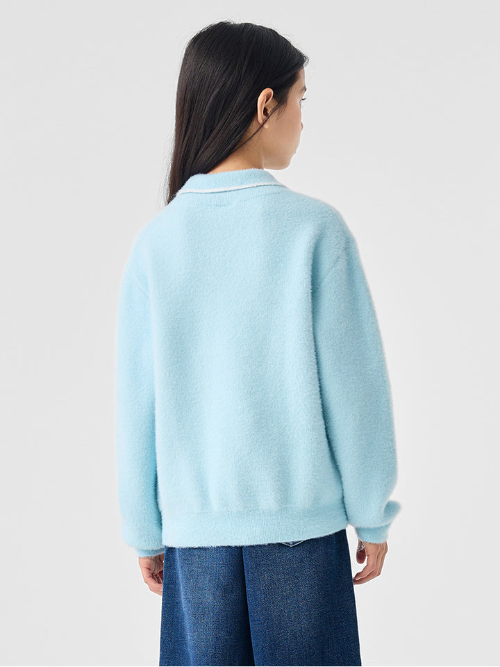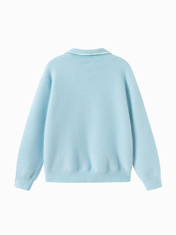 long sleeves knitted pullover, decorated with prints and embroidery on the front side, comes with a classic collar
