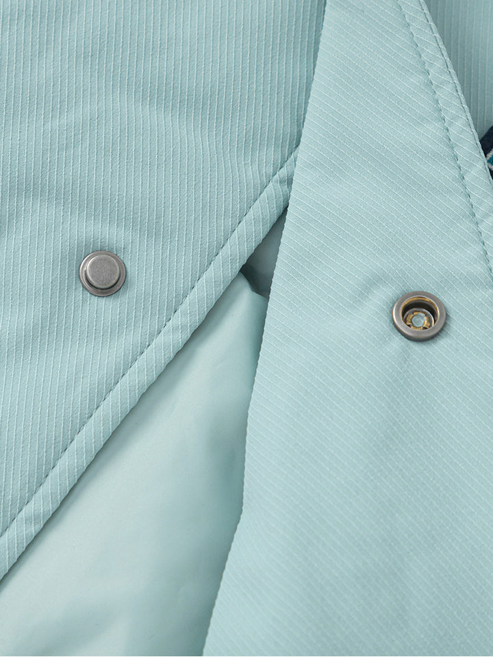 long sleeves winter coat, decorated with a contrast colored pattern and embroidery prints on the front and back sides, comes with a front buttons for closure and front pockets