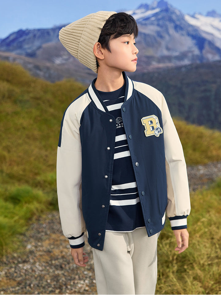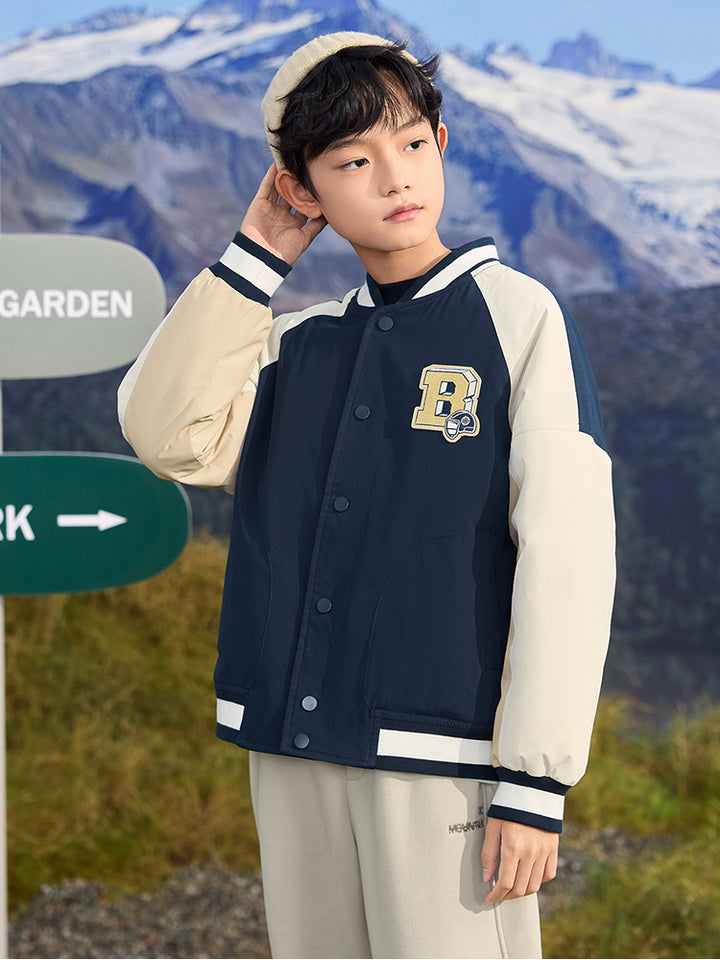 Boys' Contrast Winter Coat With Embroideries
