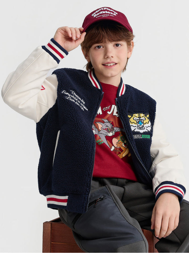 Boys' Varsity Bomber Jacket with Tiger Patch