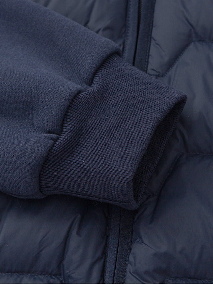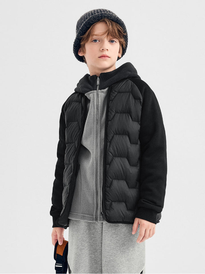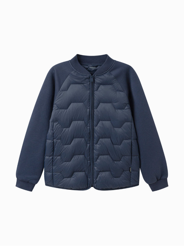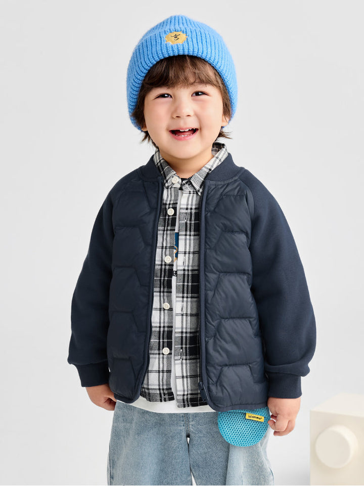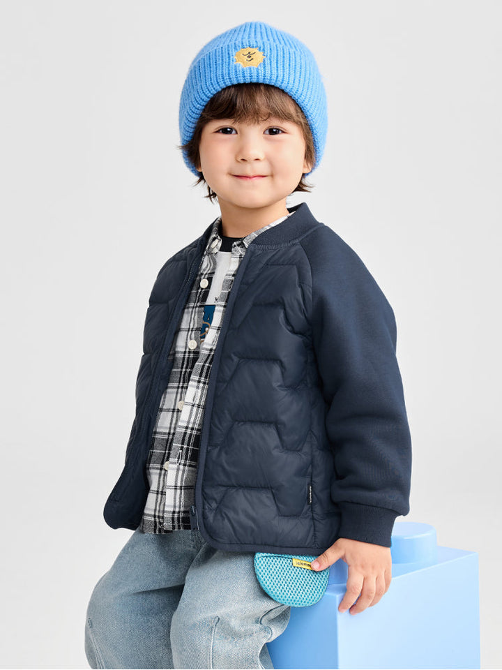 A stylish kids’ bomber jacket featuring quilted front panels and smooth sleeves for a modern look. Designed with a full front zipper closure, it provides lightweight warmth and comfort, making it perfect for everyday casual wear.