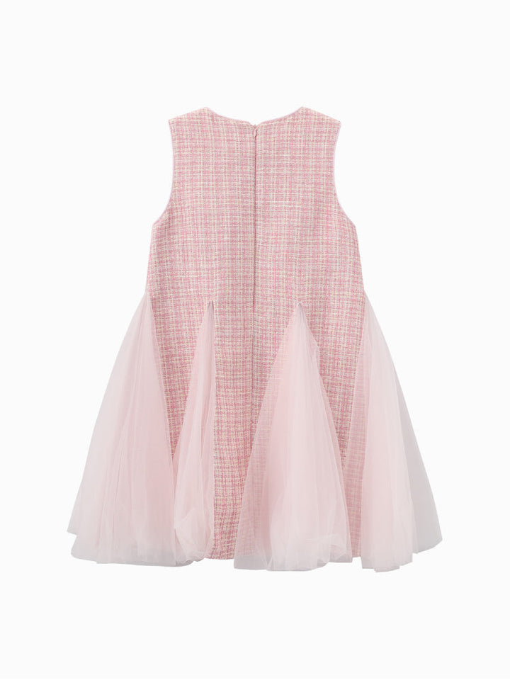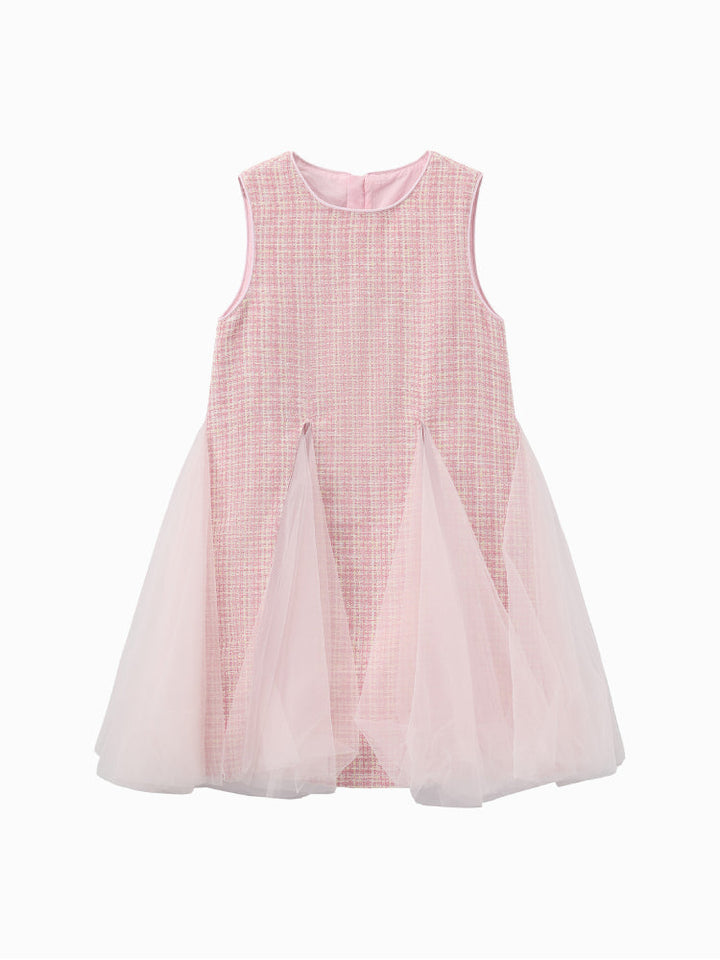 Girls' Sleeveless Dress with Tulle Panels
