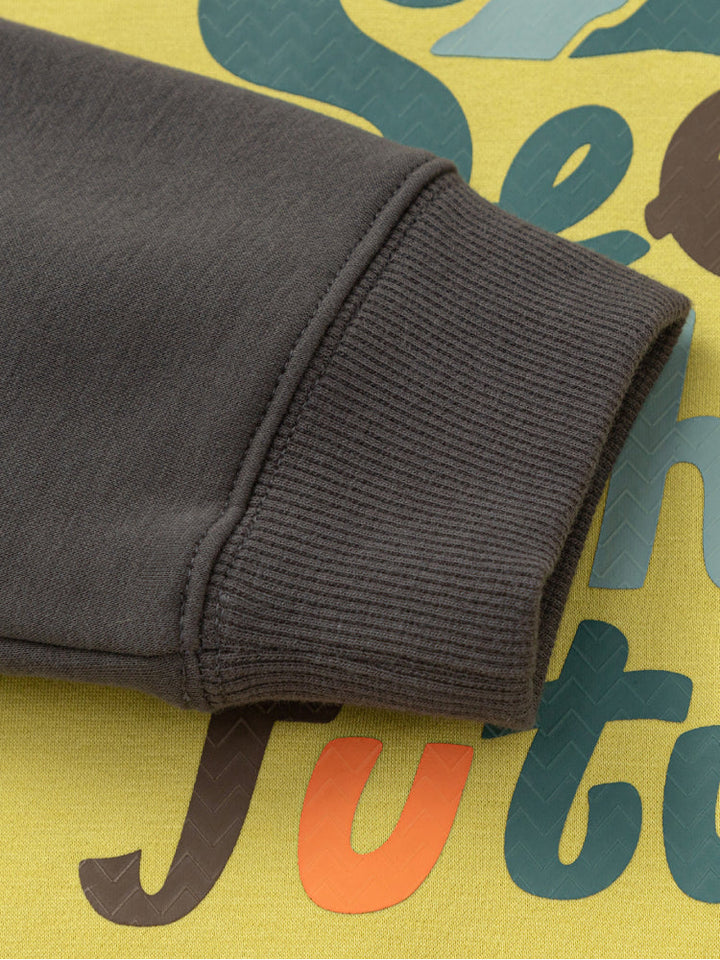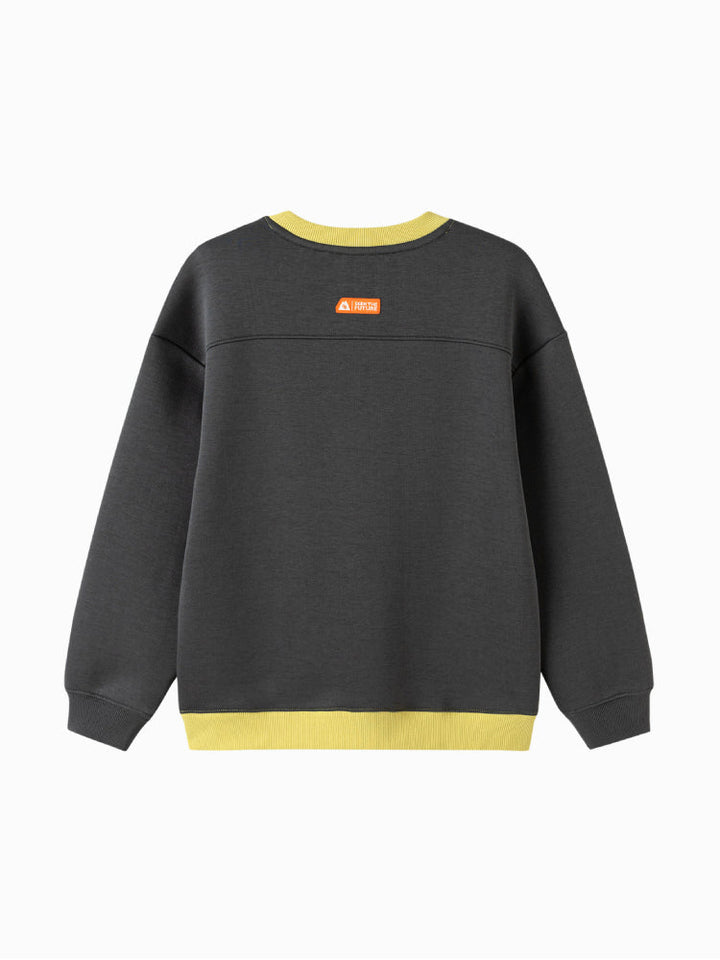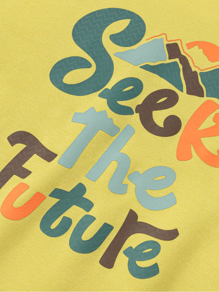 Trendy kids’ sweatshirt featuring a colorful “Seek the Future” print on the front with mountain graphics. Designed for comfort and casual everyday wear.